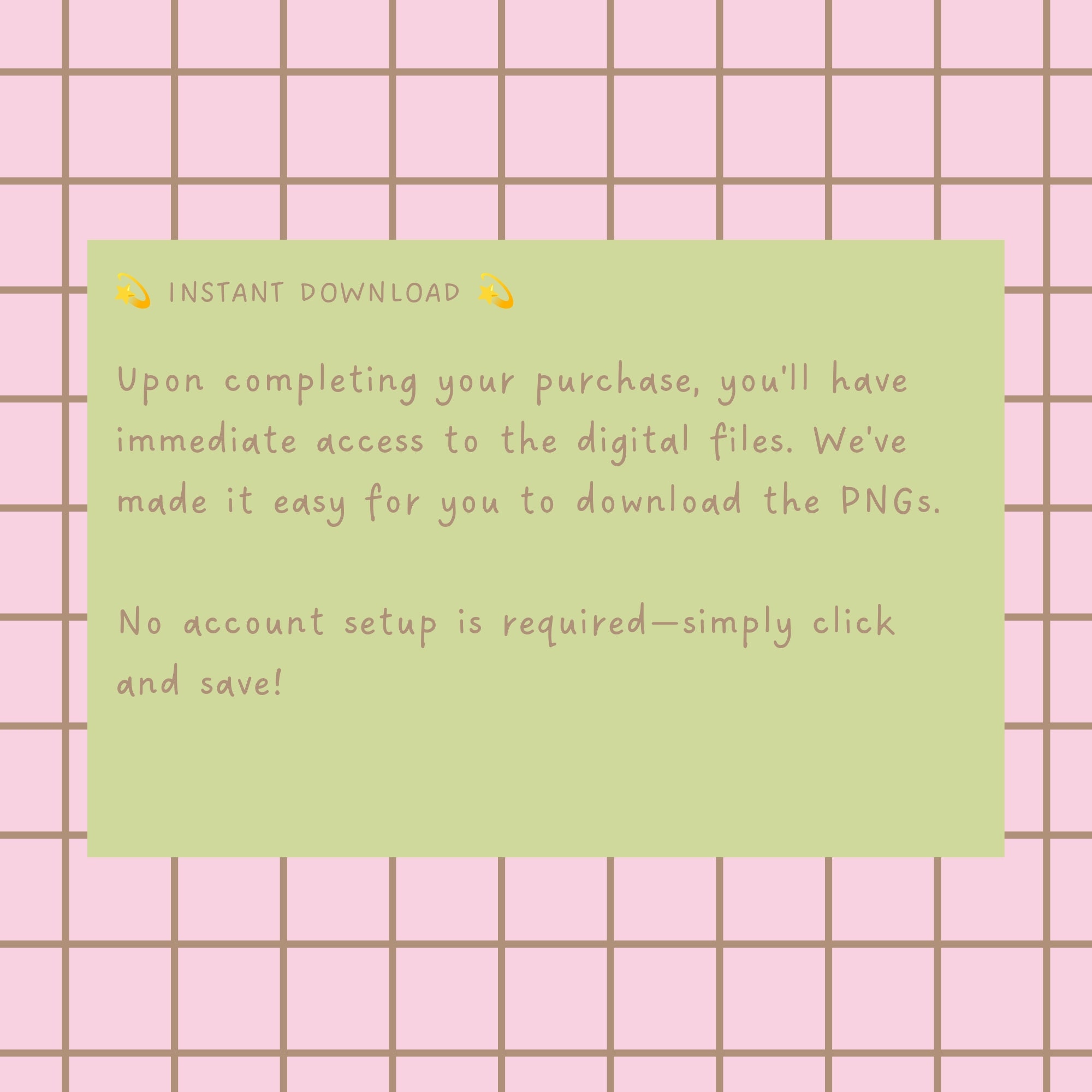 Upon completing your purchase, you'll have immediate access to the digital files. We've made it easy for you to download the PNG and SVG formats. No account setup is required—simply click and save!