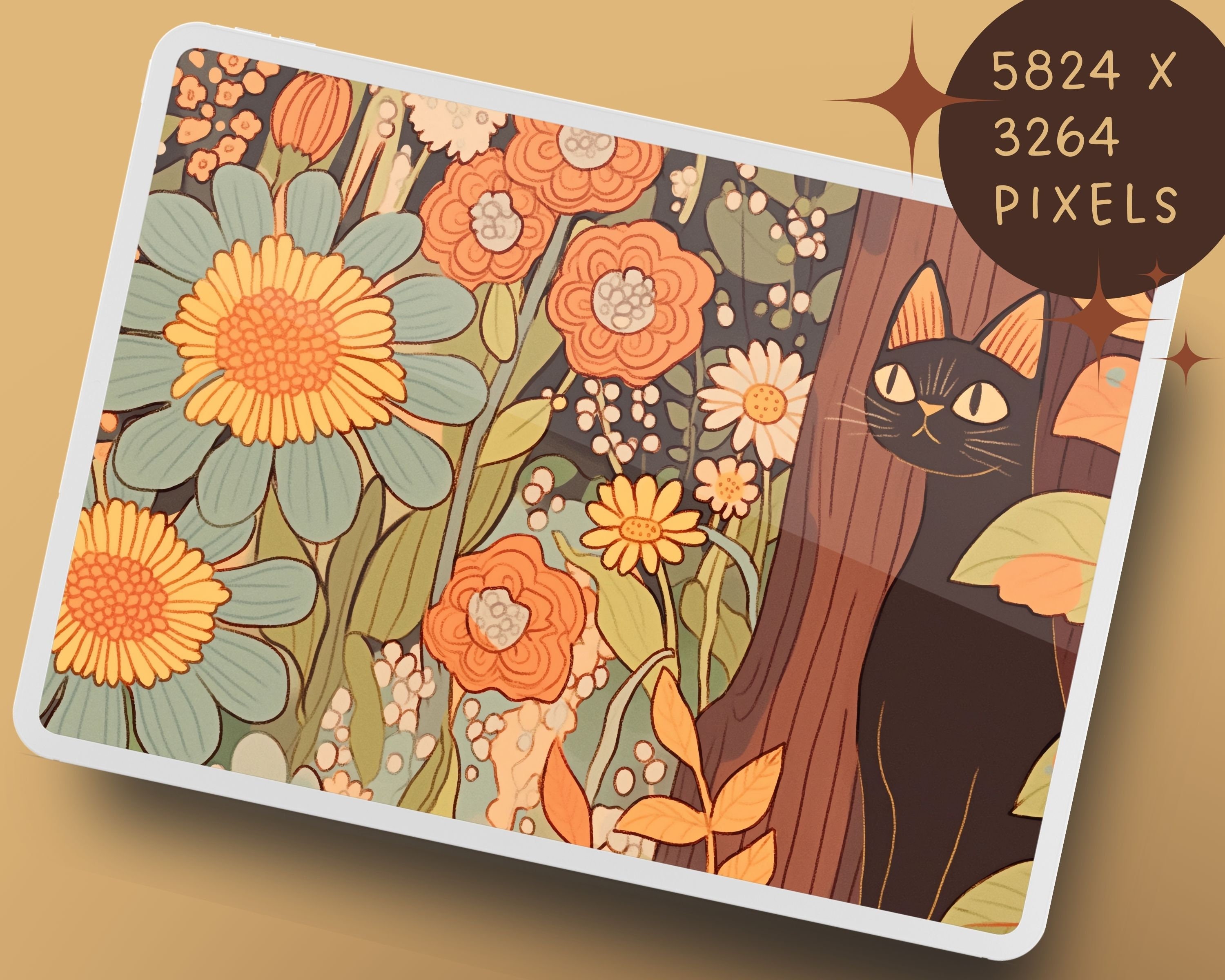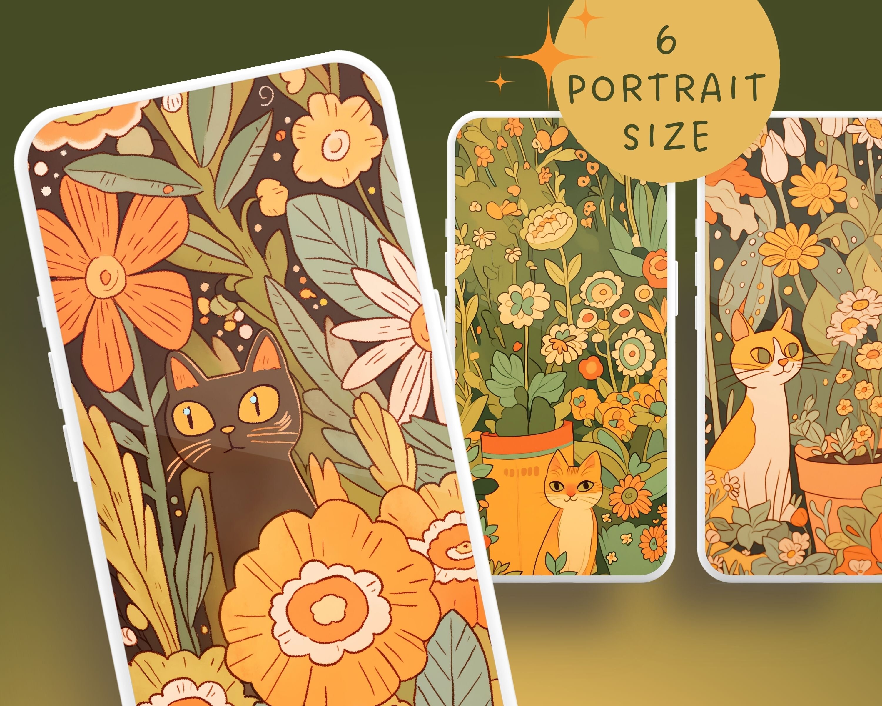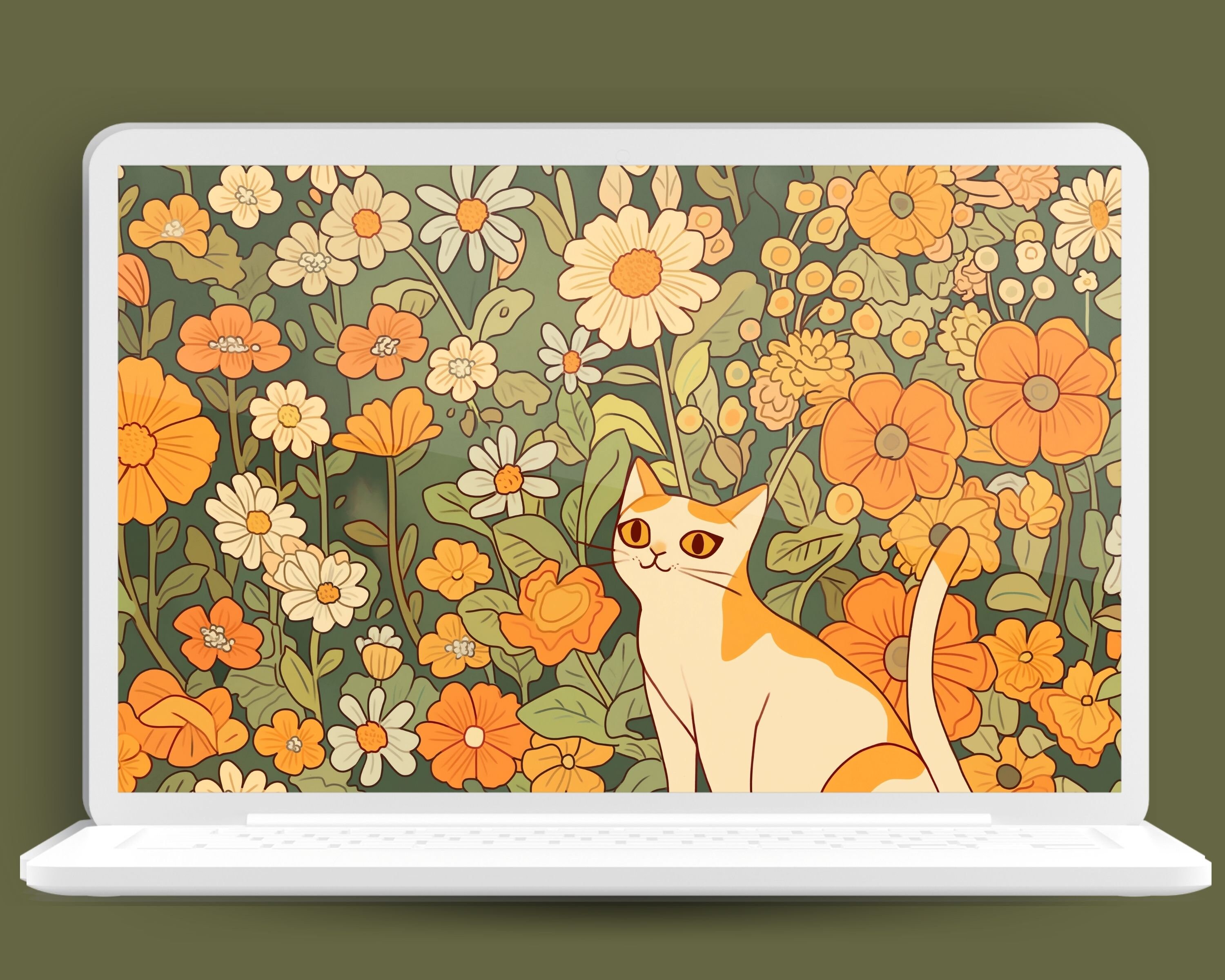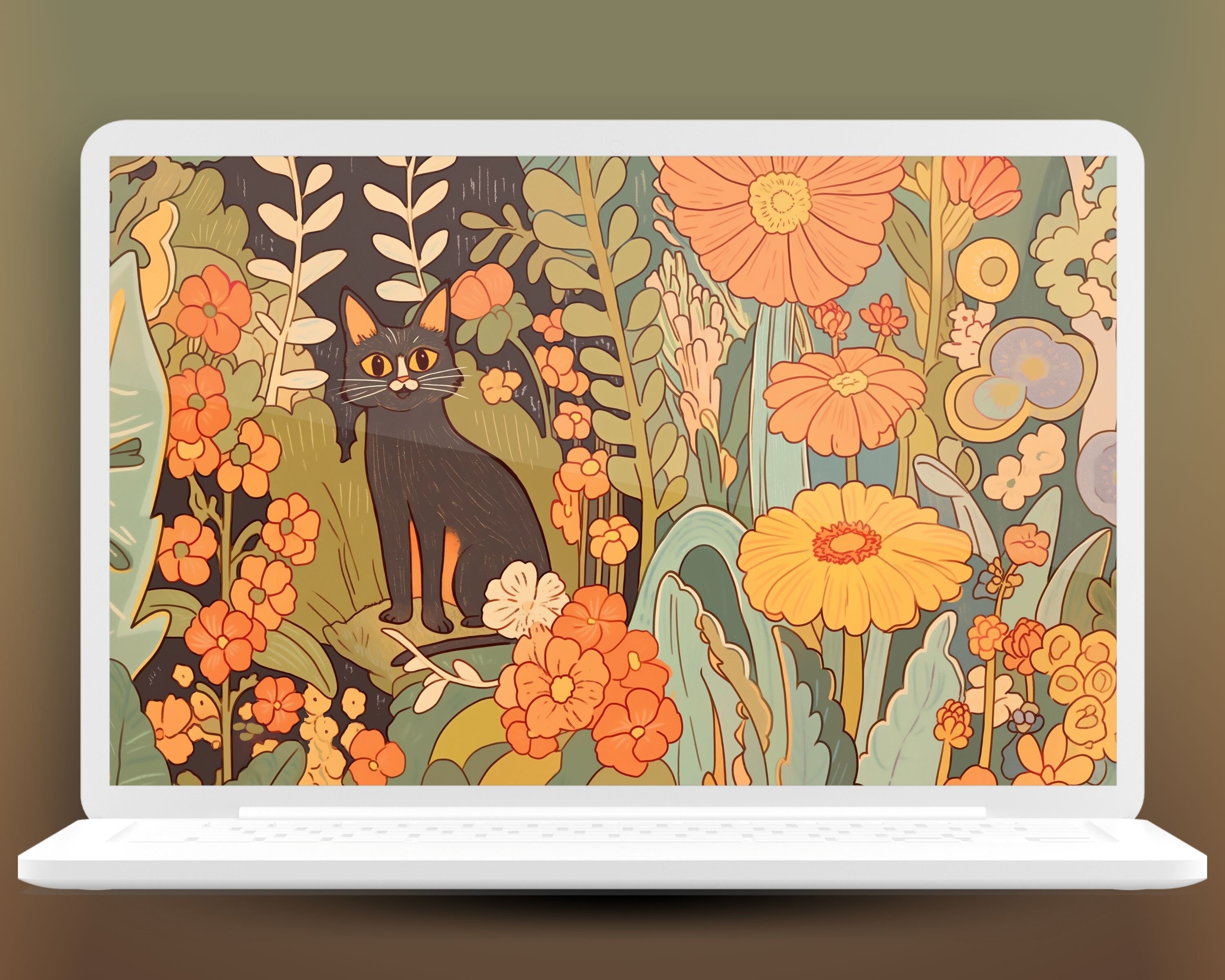 Cottagecore Cats Wallpaper Bundle: Cozy Floral Backgrounds (Digital Download)
