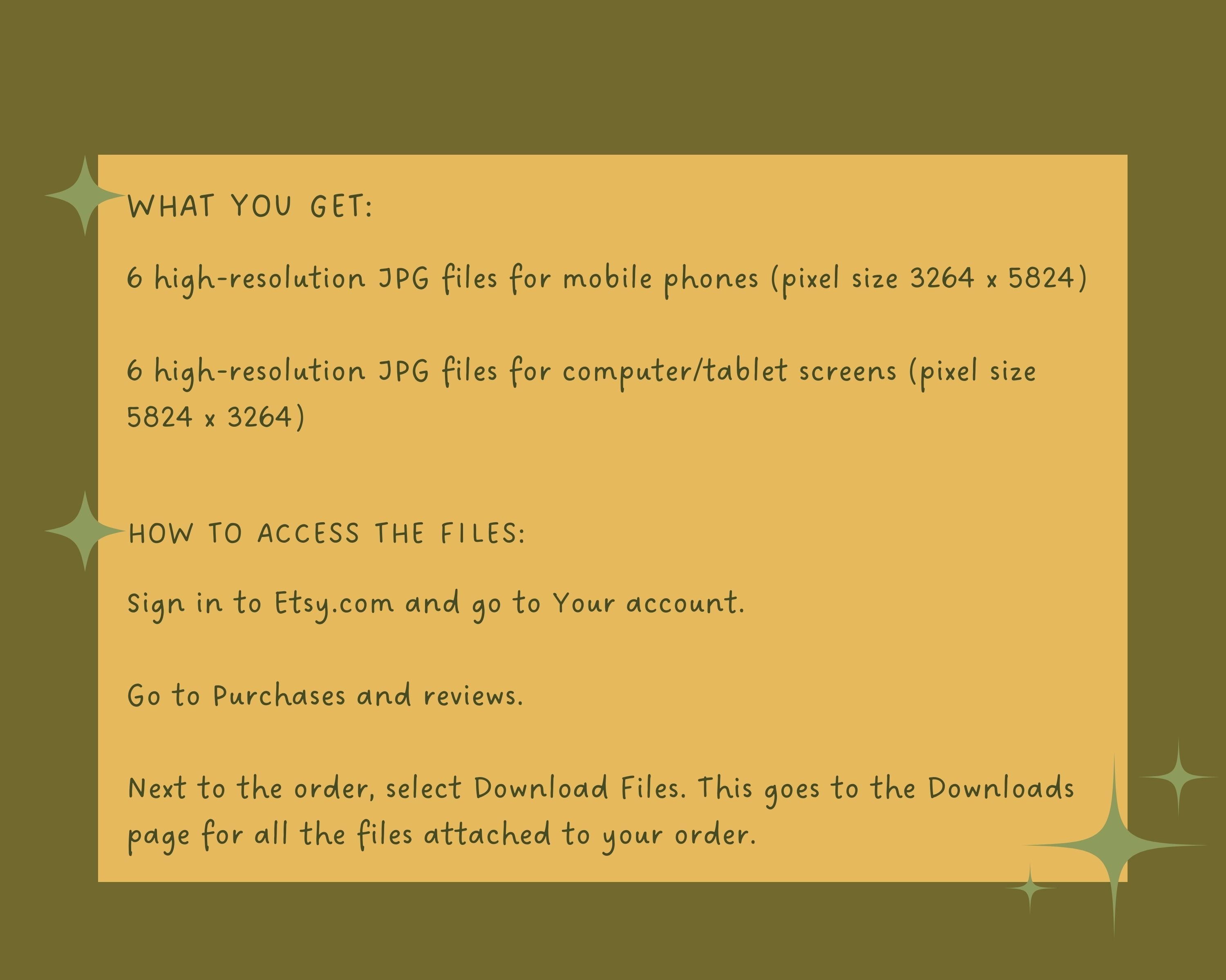 After purchase, you'll receive a PDF file with a link to download your wallpapers.