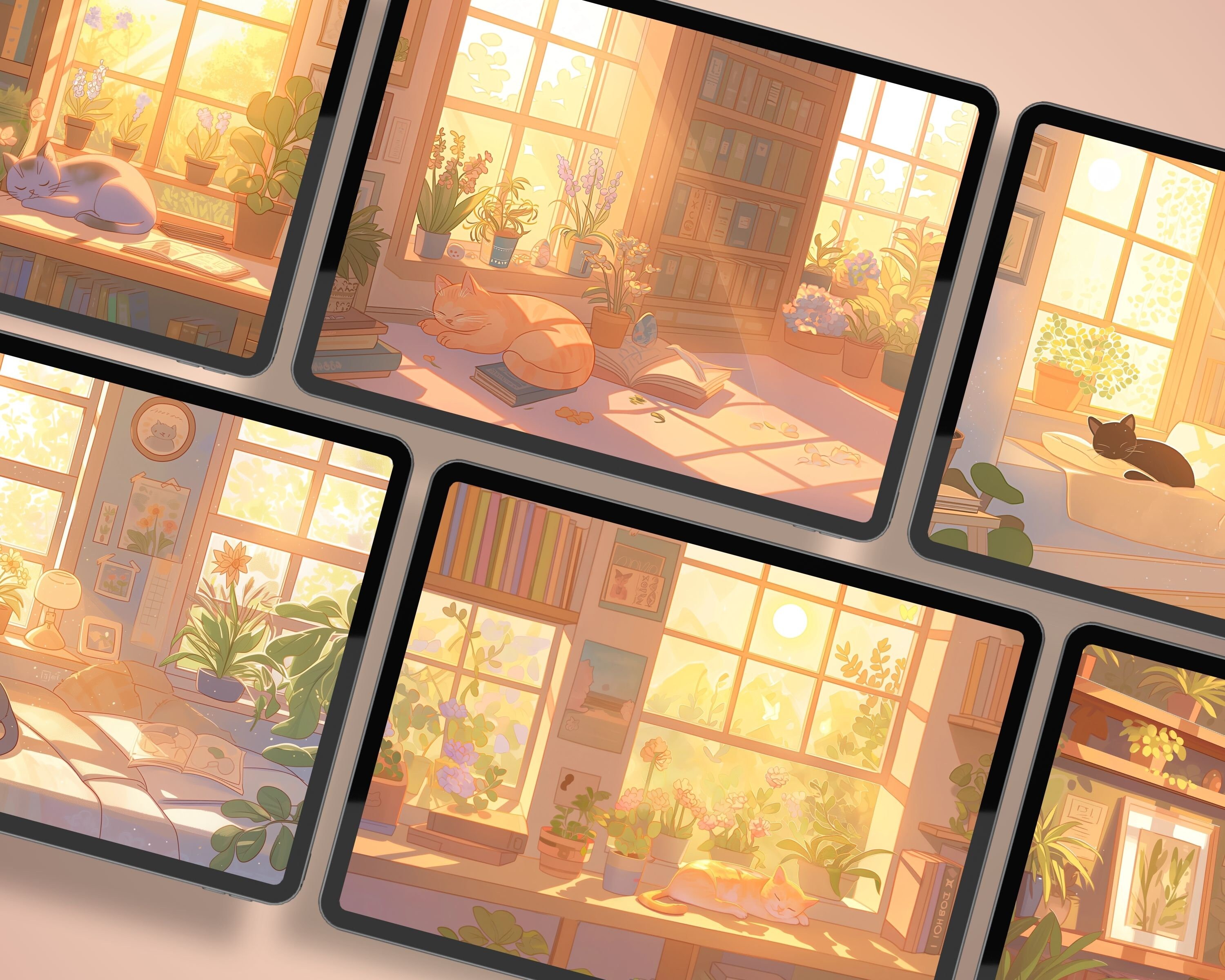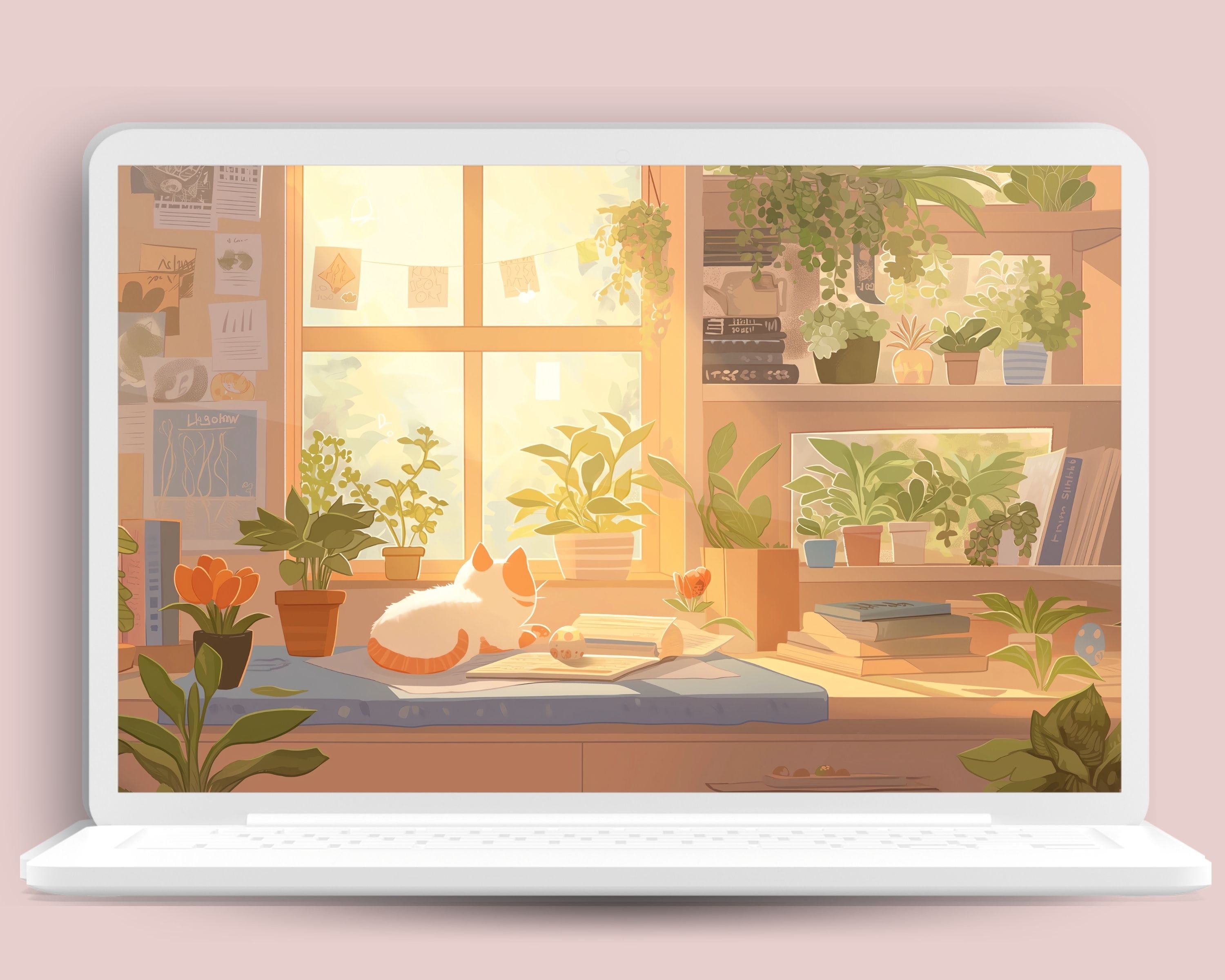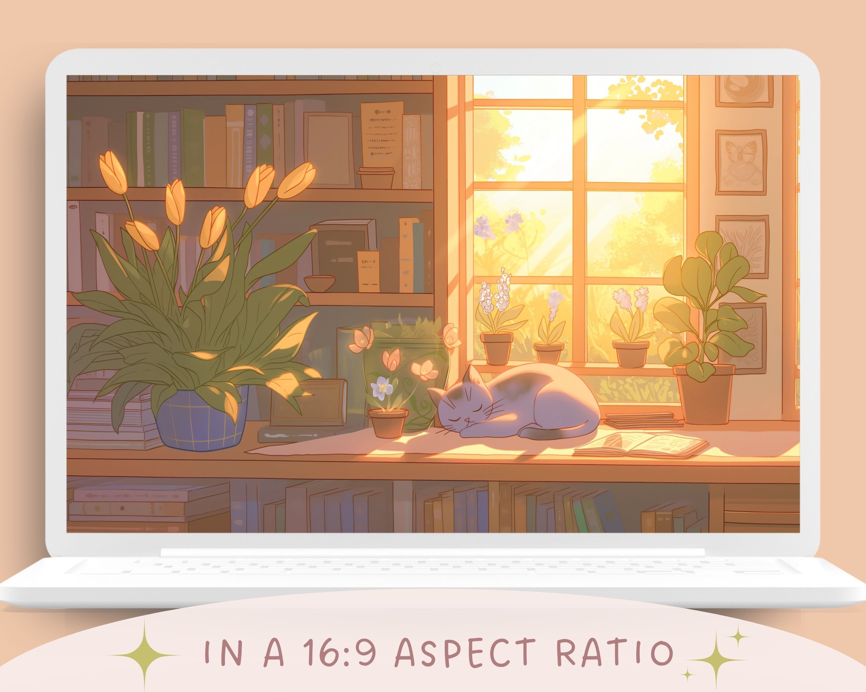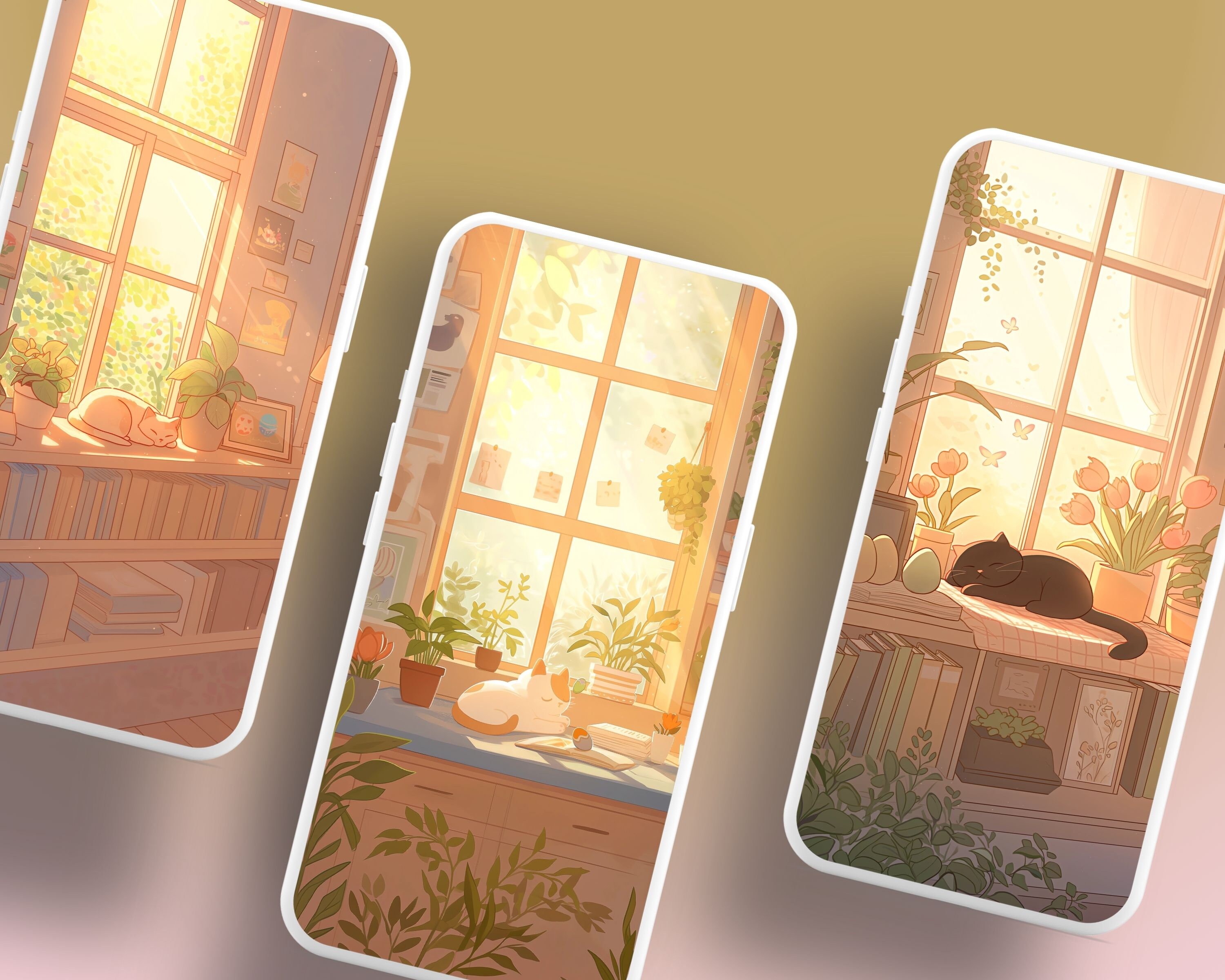 Bring a touch of magic to your devices with this set of 12 Spring cats, plants and books cozy wallpapers! Featuring cute cats in cozy settings, these high-res JPG files will fit perfectly on your phone or computer/tablet screens.