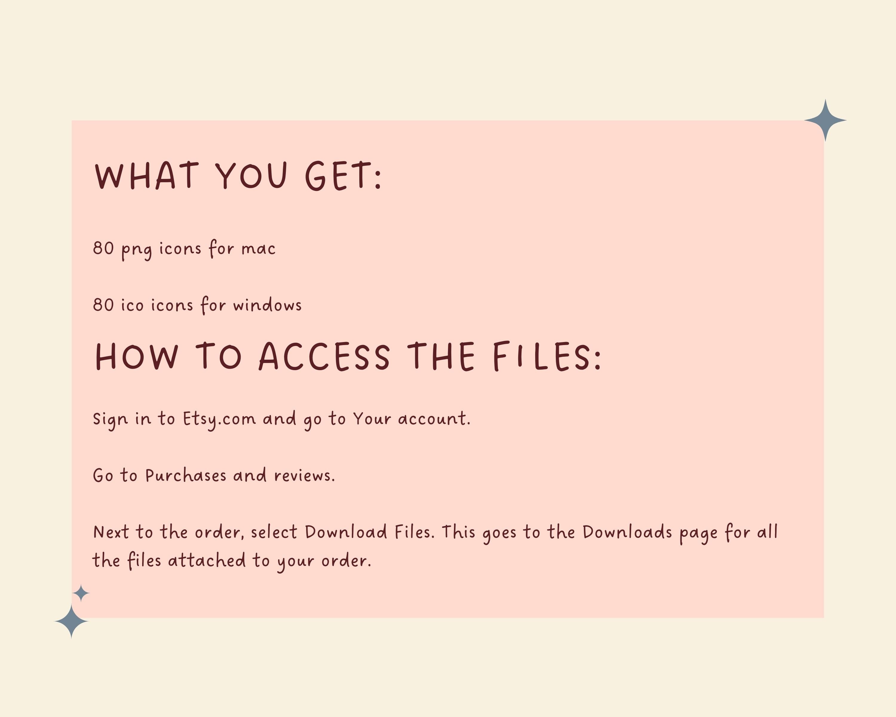Personalize your icons, folders, and shortcuts with a cohesive theme and declutter your desktop using our cute icons. ๐ŸŒˆ๐Ÿ–Œ๏ธ
