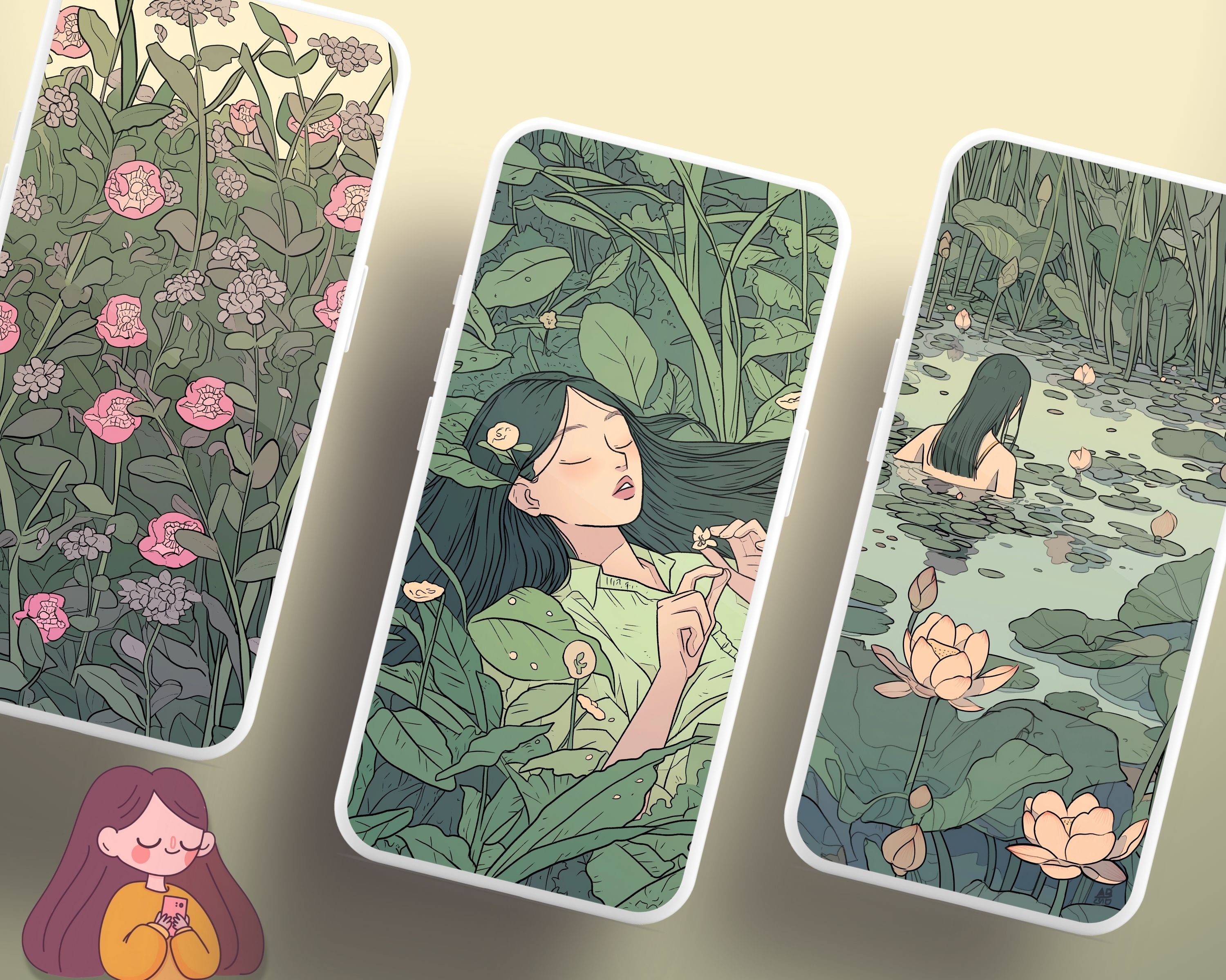 Bring a touch of coziness to your devices with this set of 12 green vibes wallpapers! Featuring beautiful aesthetic scenes these high-res JPG files will fit perfectly on your phone or computer/tablet screens.