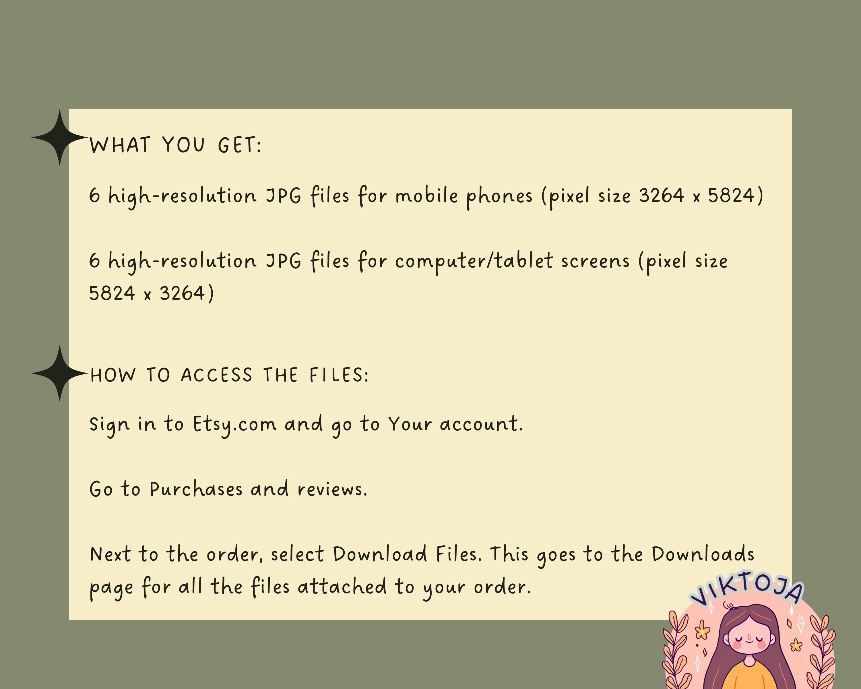 After purchase, you'll receive a PDF file with a link to download your wallpapers.
