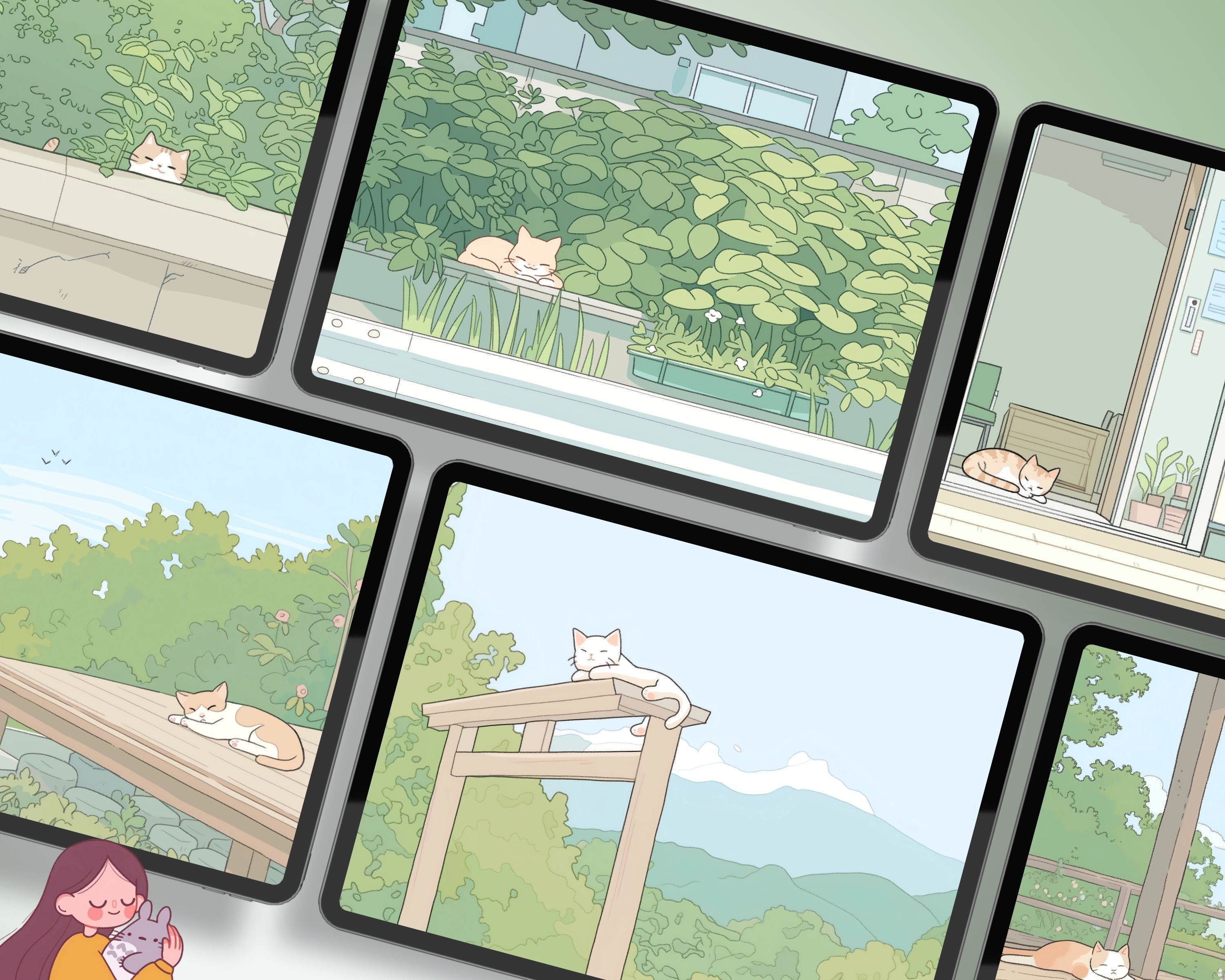 Bring a touch of magic to your devices with this set of 12 cozy wallpapers! Featuring cute cats in cozy settings, these high-res JPG files will fit perfectly on your phone or computer/tablet screens.