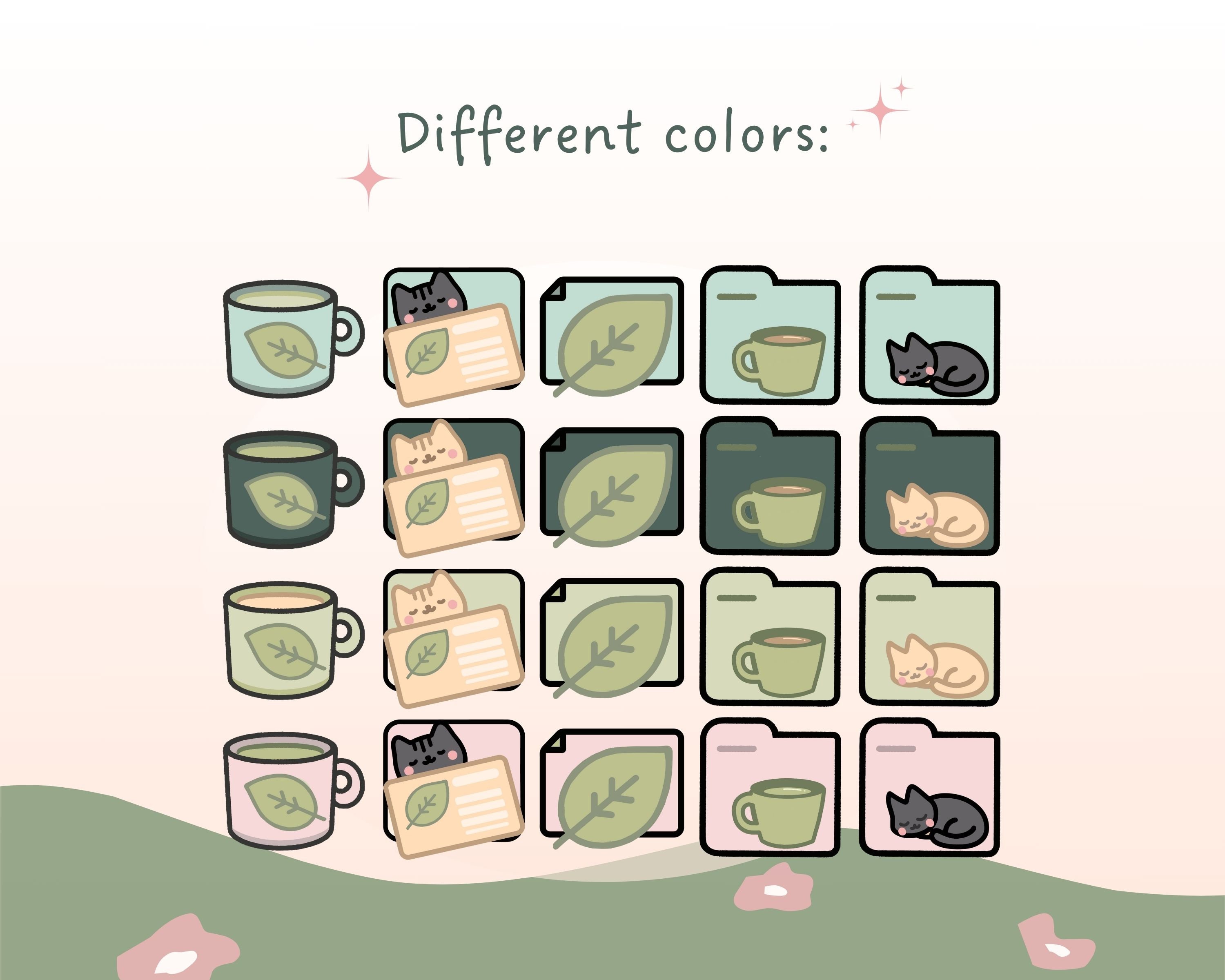 Matcha Cat Desktop Icons: 80+ Green Boho Folder Icons (PNG & ICO)