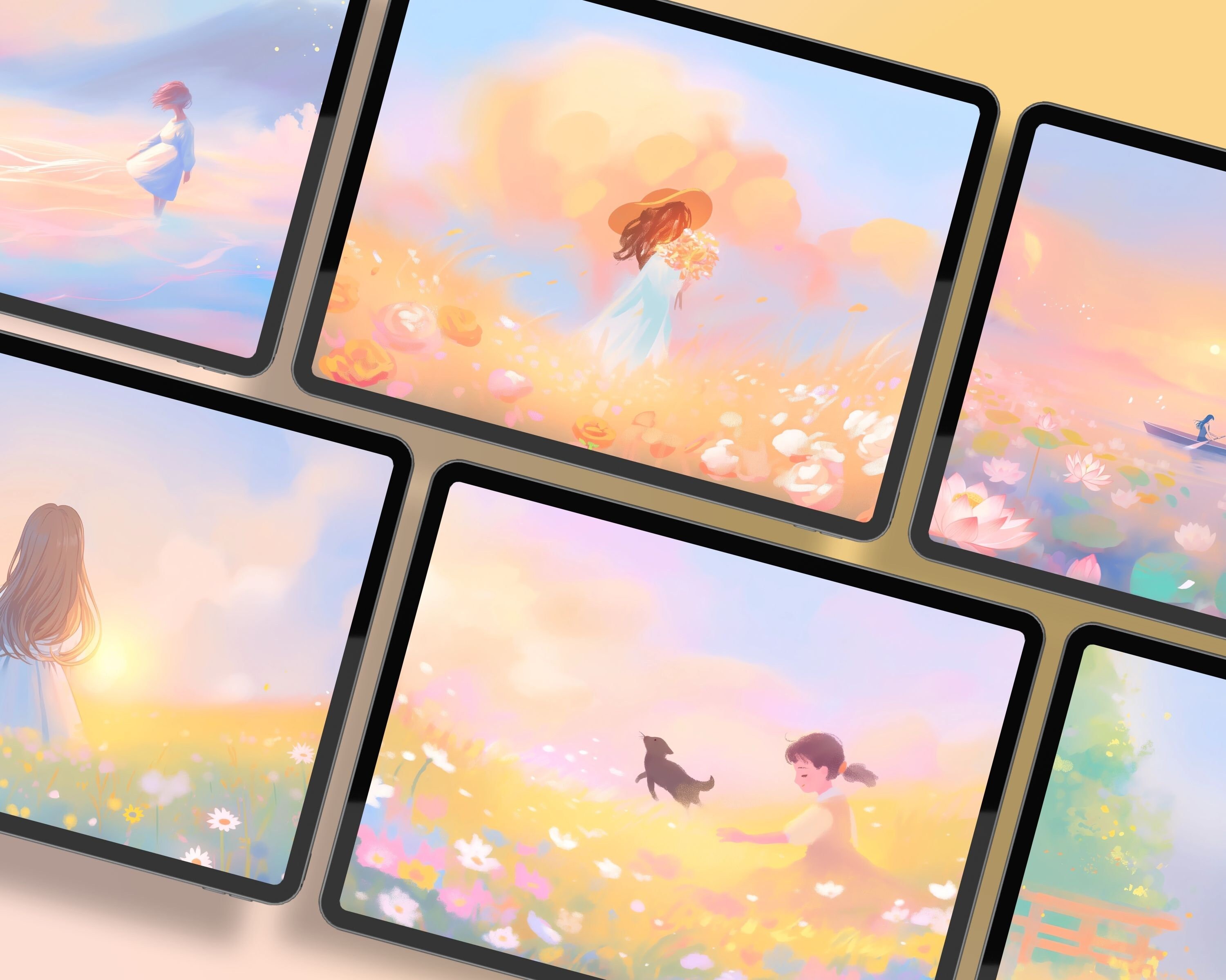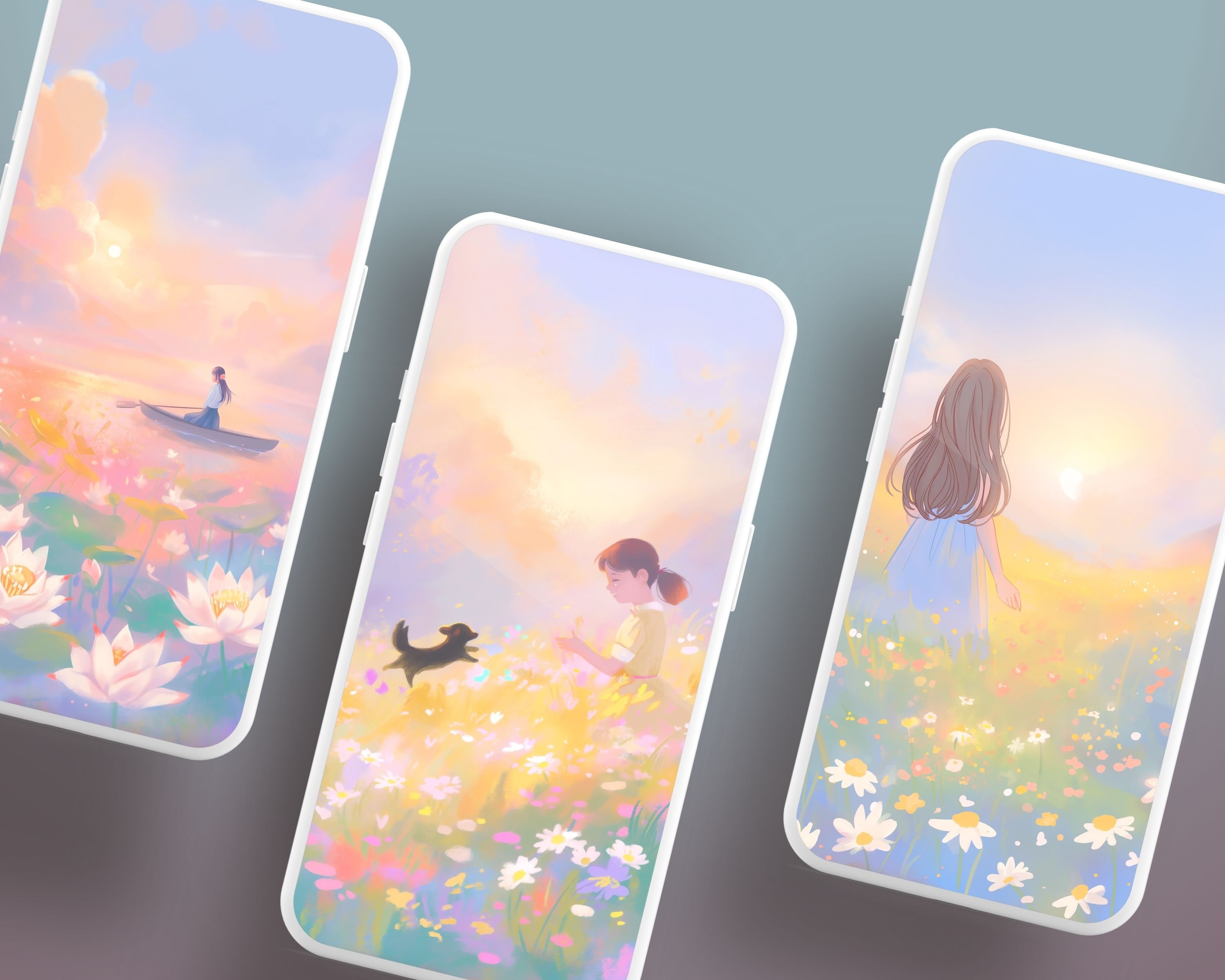 Dreamy Pastel Meadow Wallpaper Set for Phone & Desktop (Digital Download)