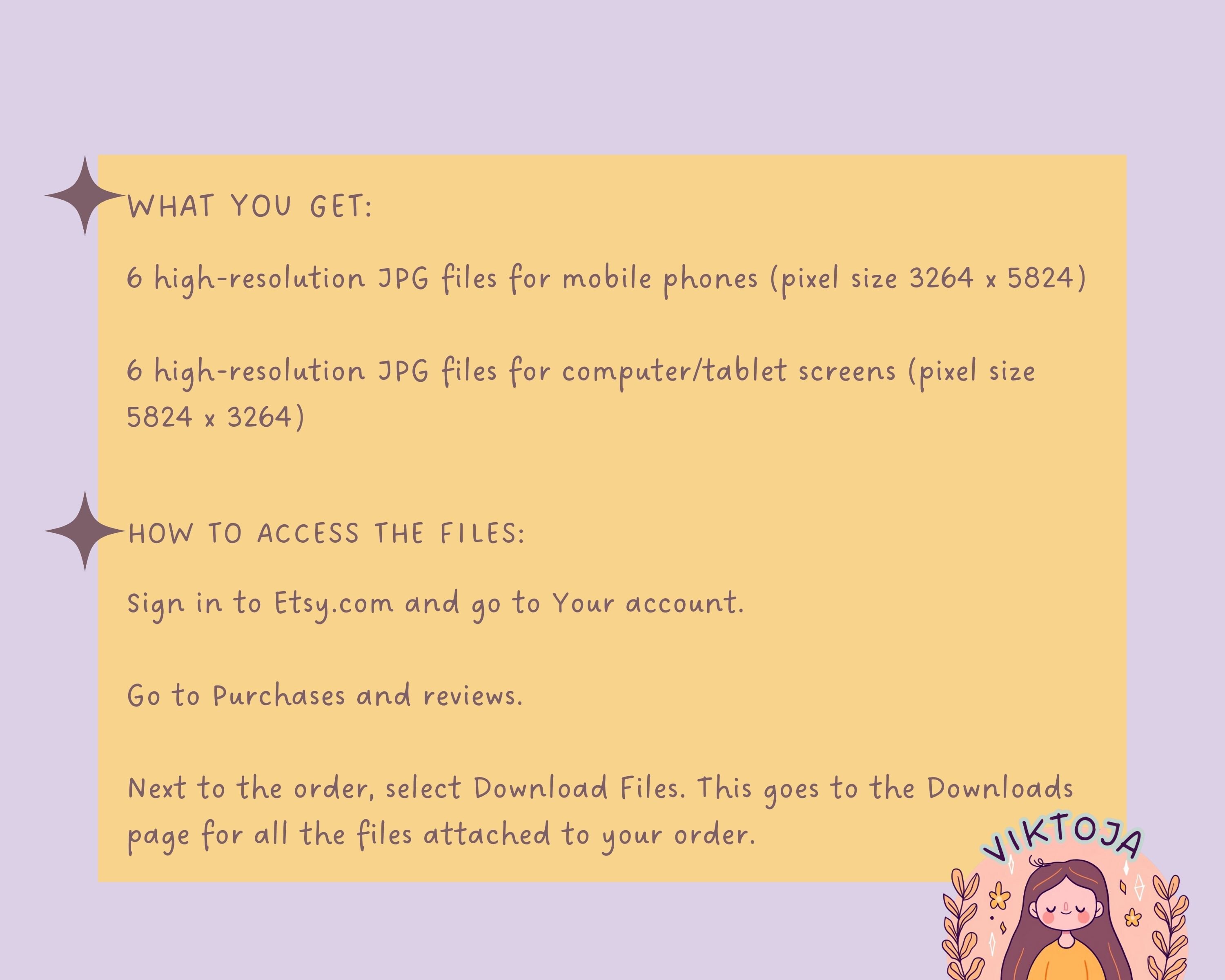 After purchase, you'll receive a PDF file with a link to download your wallpapers.