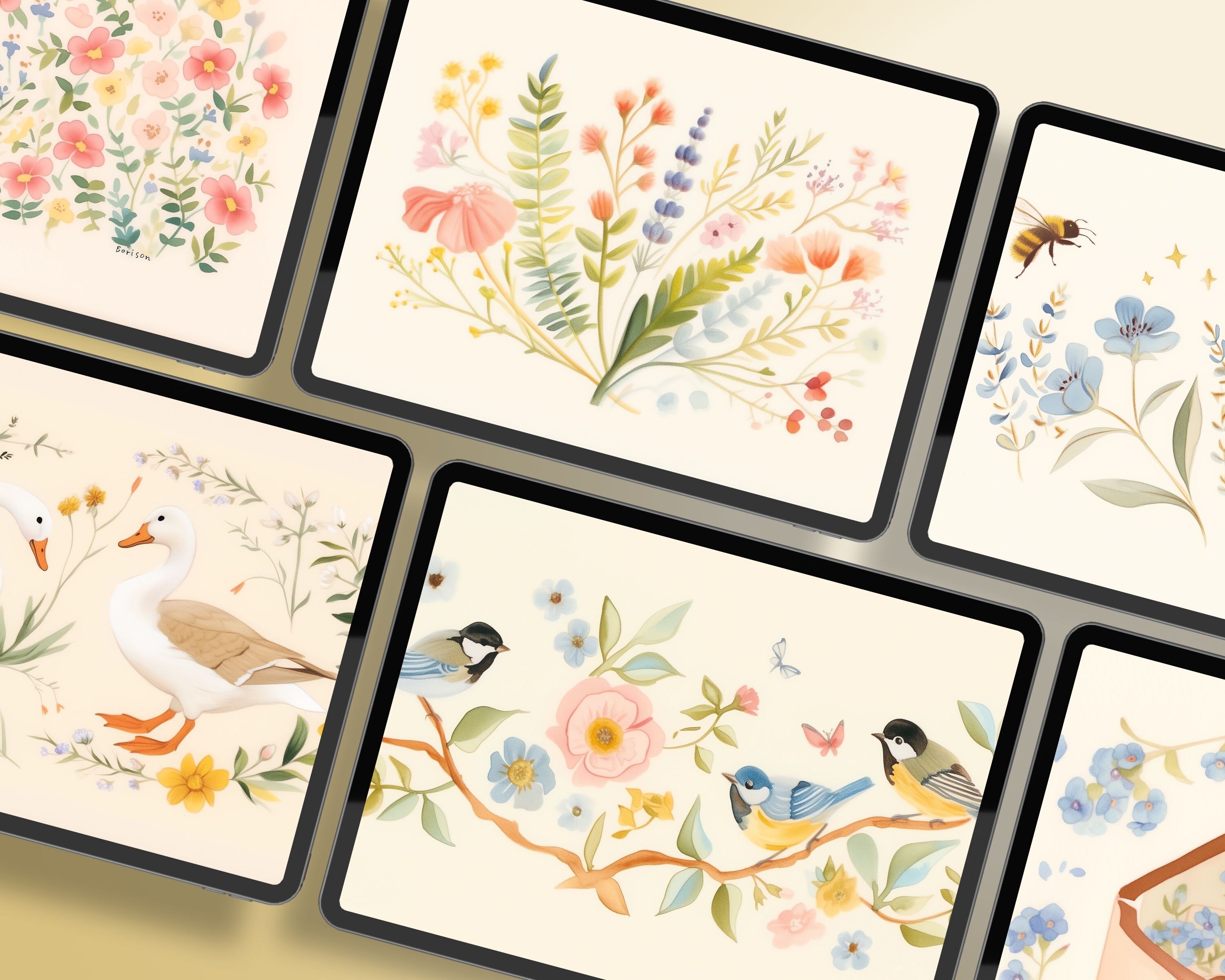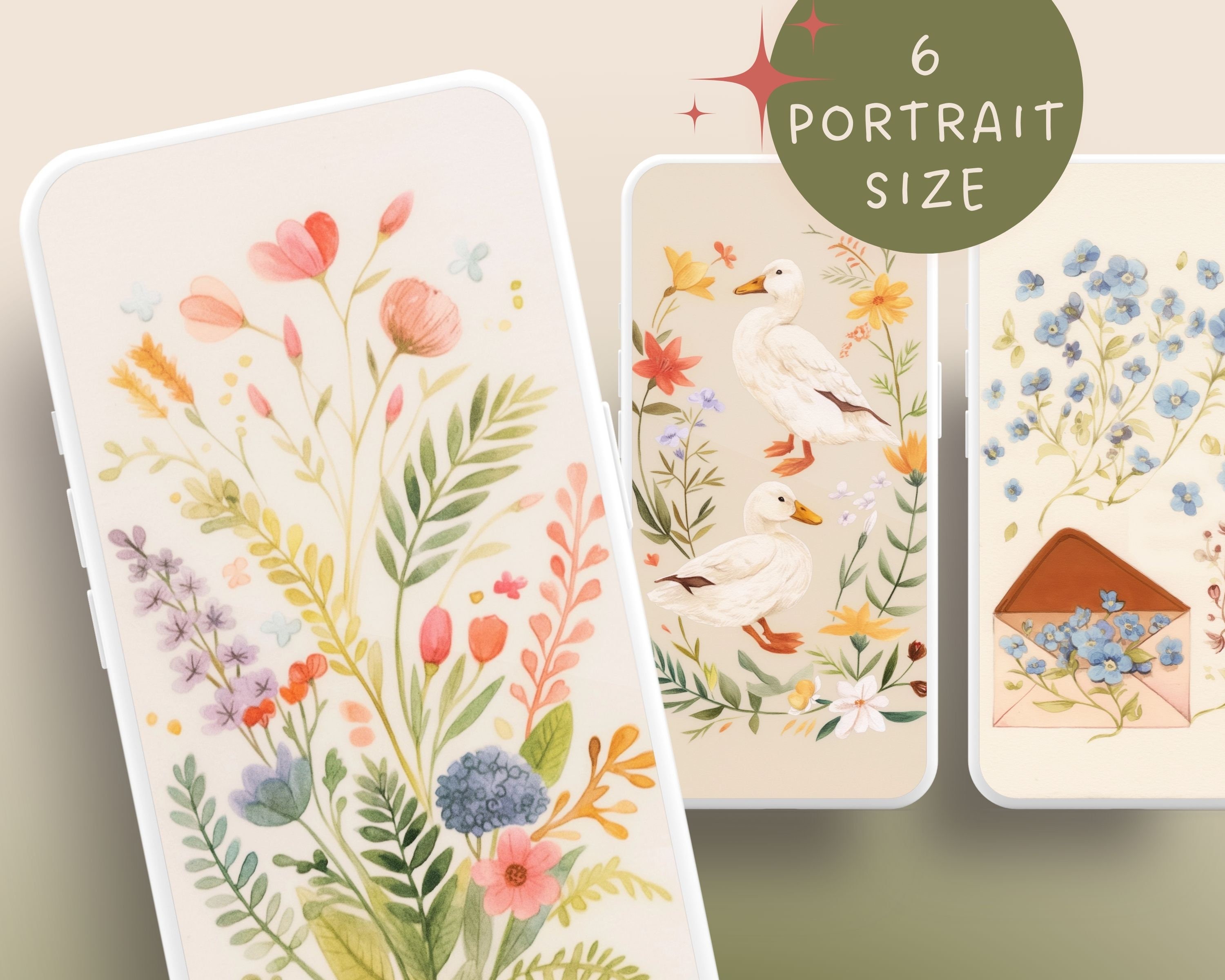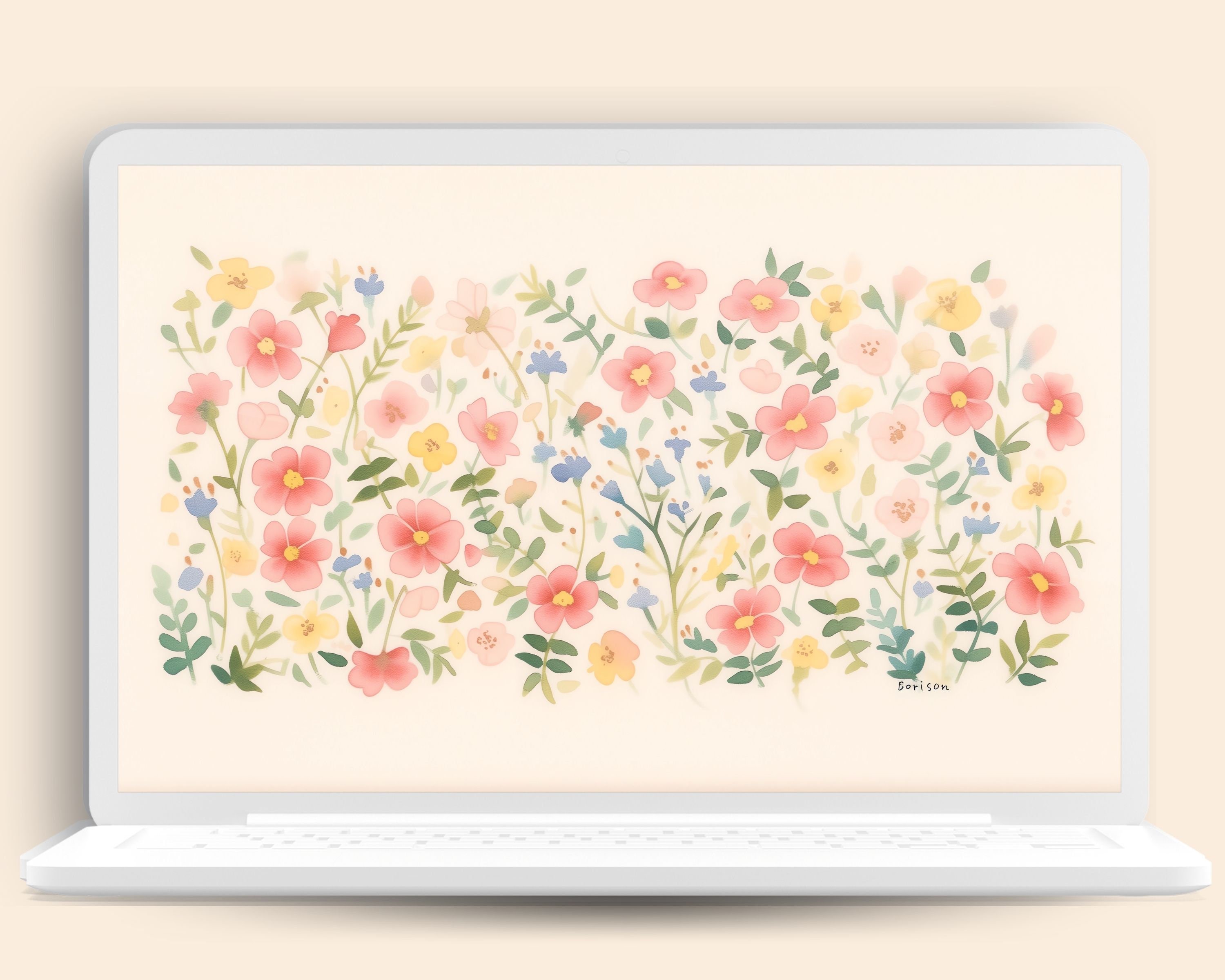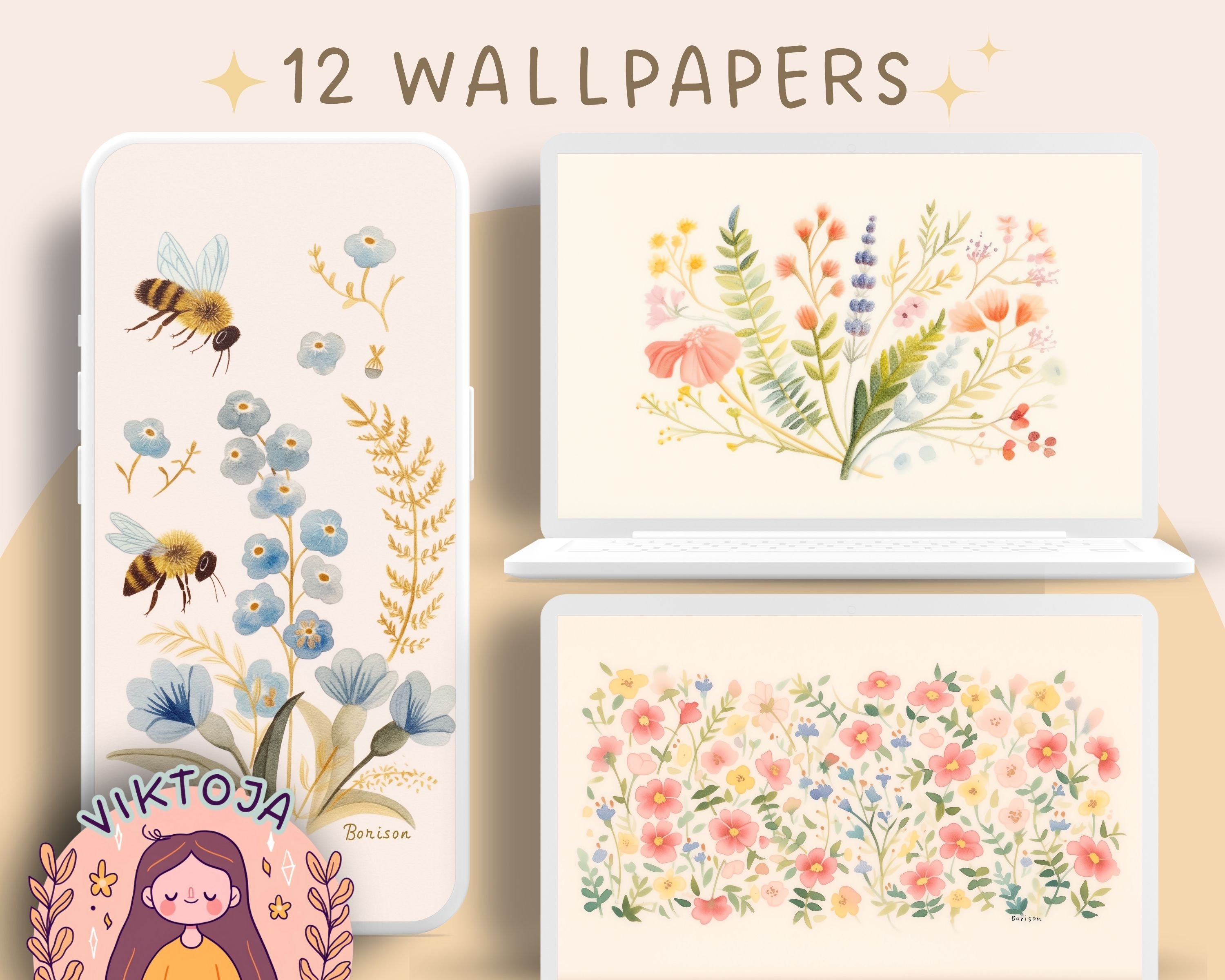 Watercolor Flower Wallpaper Bundle: Cozy Desktop Backgrounds (Digital Download)