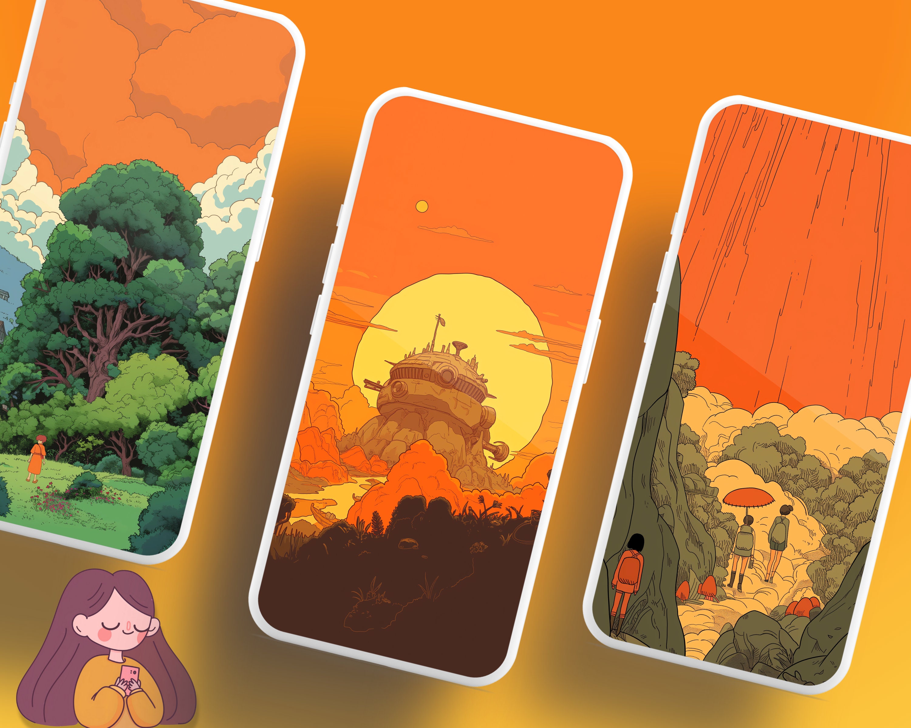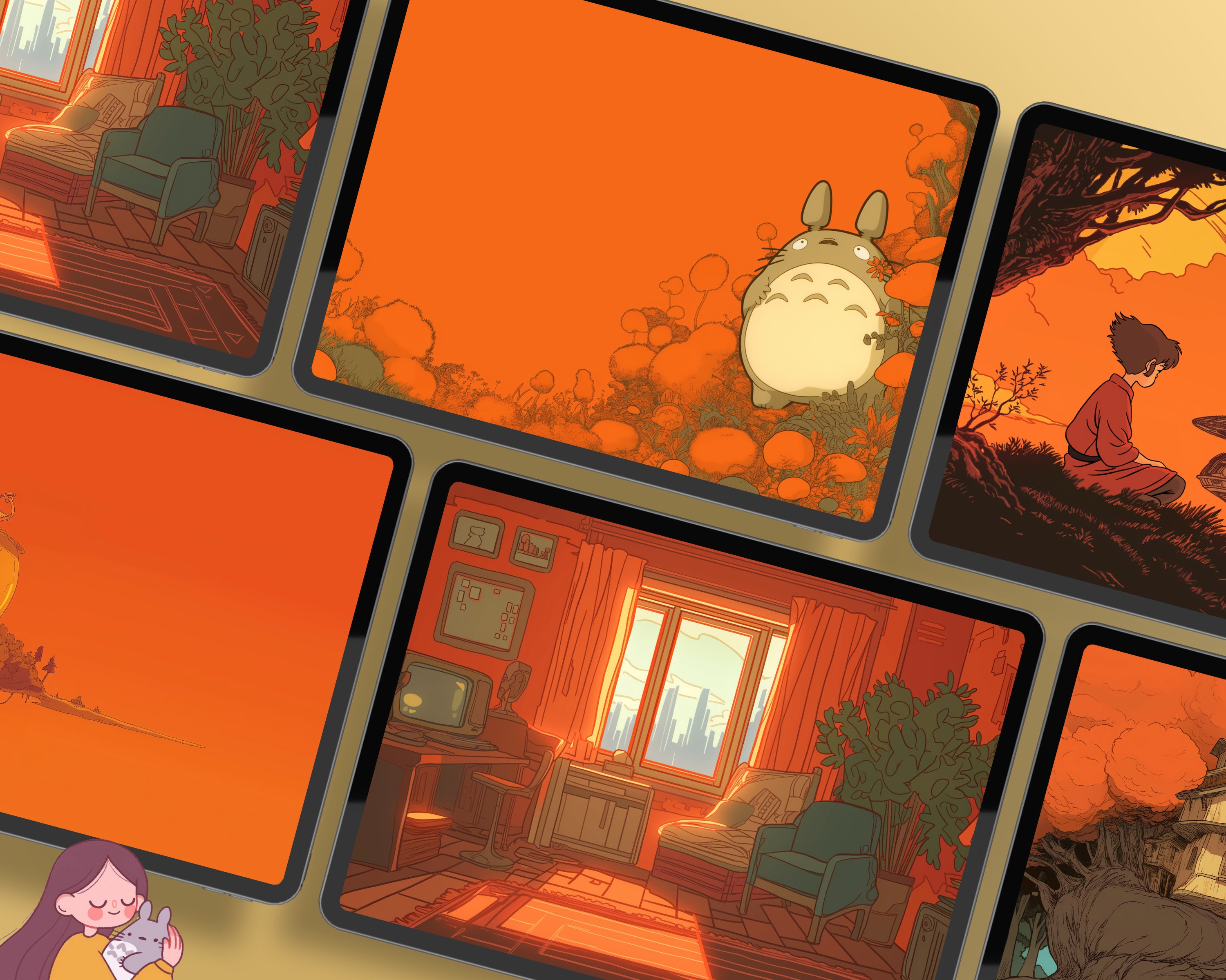 Bring a touch of coziness to your devices with this set of 12 Studio Ghibli-inspired wallpapers! Featuring beautiful landscapes and cute characters these high-res JPG files will fit perfectly on your phone or computer/tablet screens.