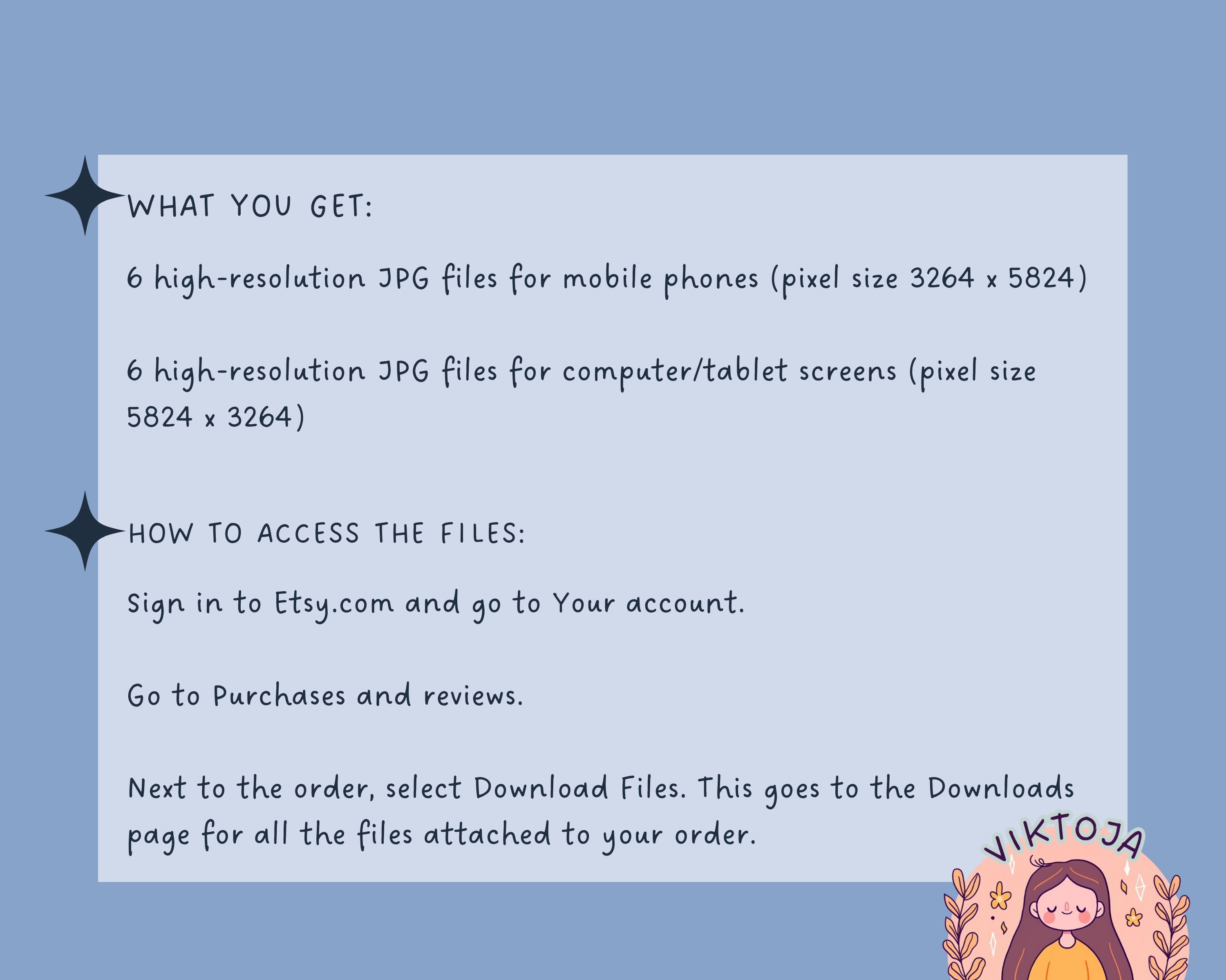 After purchase, you'll receive a PDF file with a link to download your wallpapers.