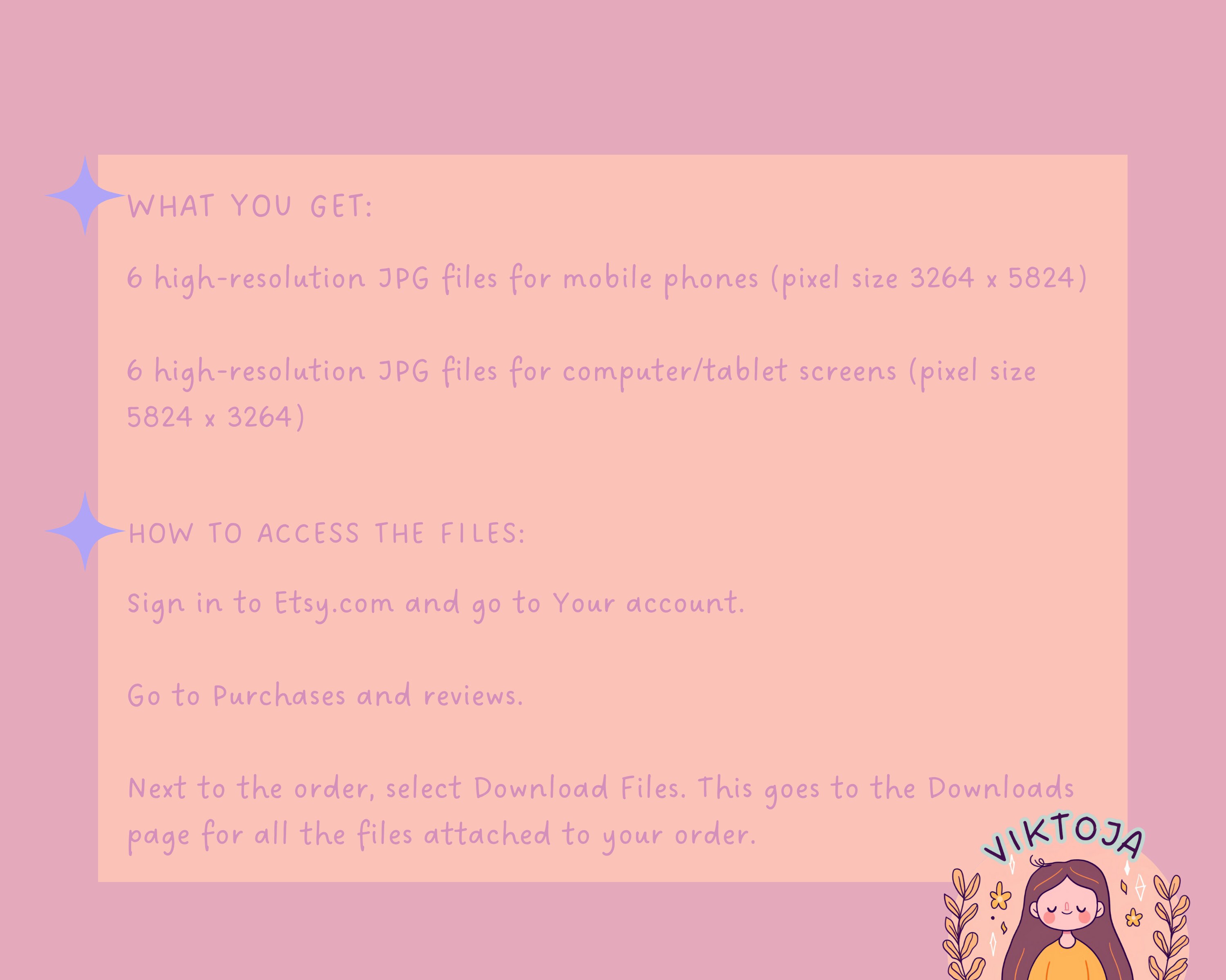 After purchase, you'll receive a PDF file with a link to download your wallpapers.