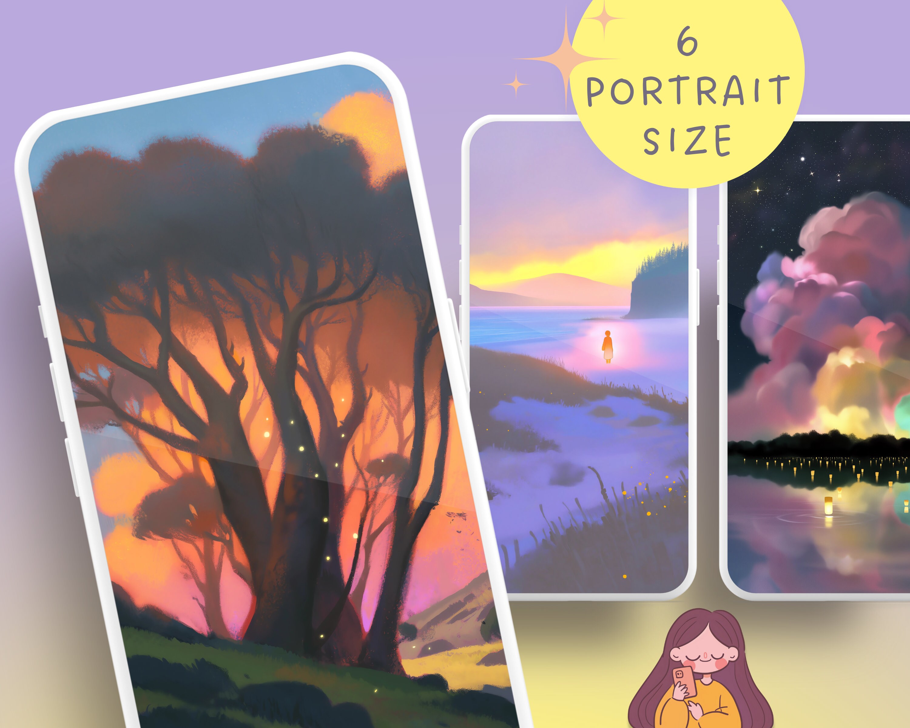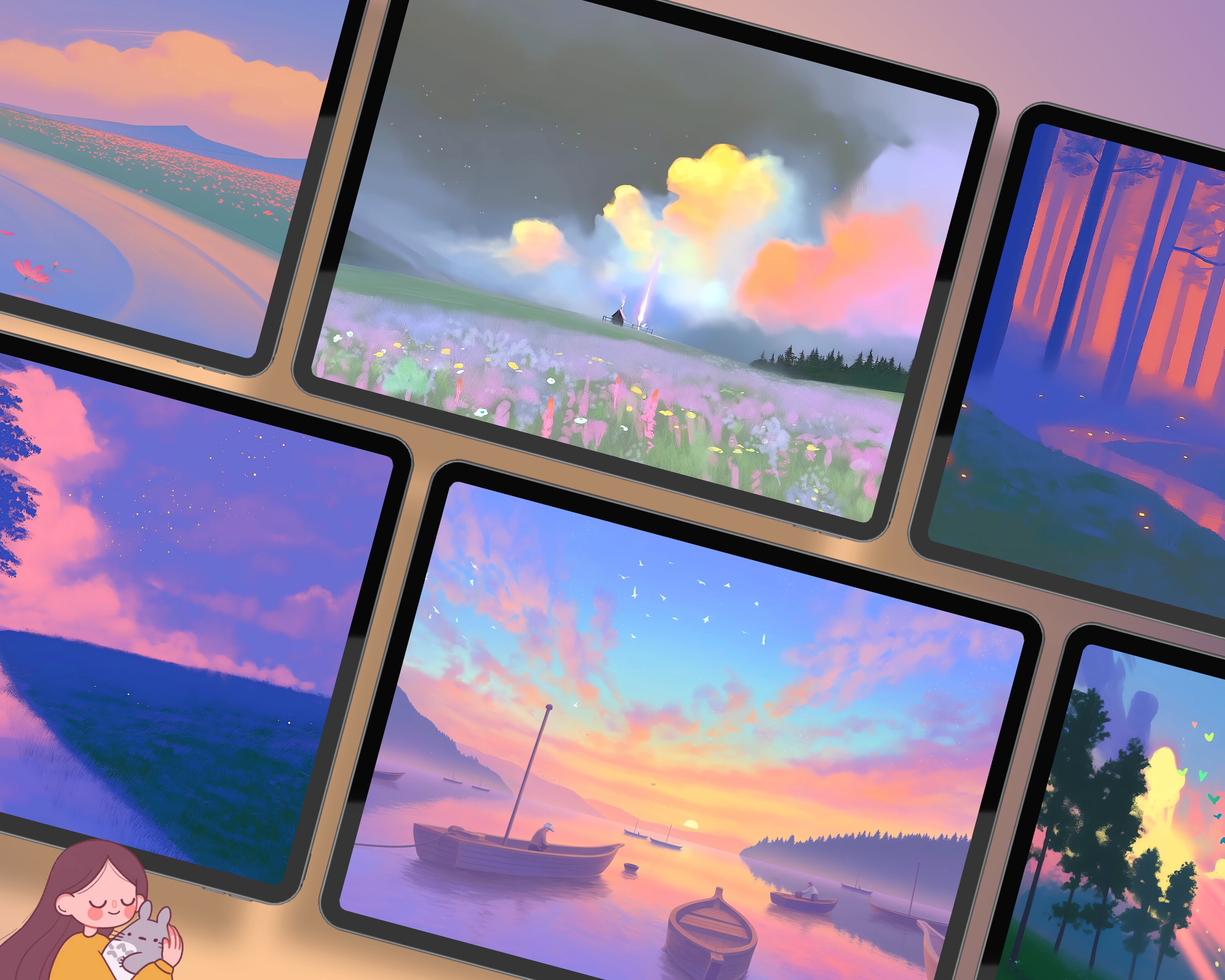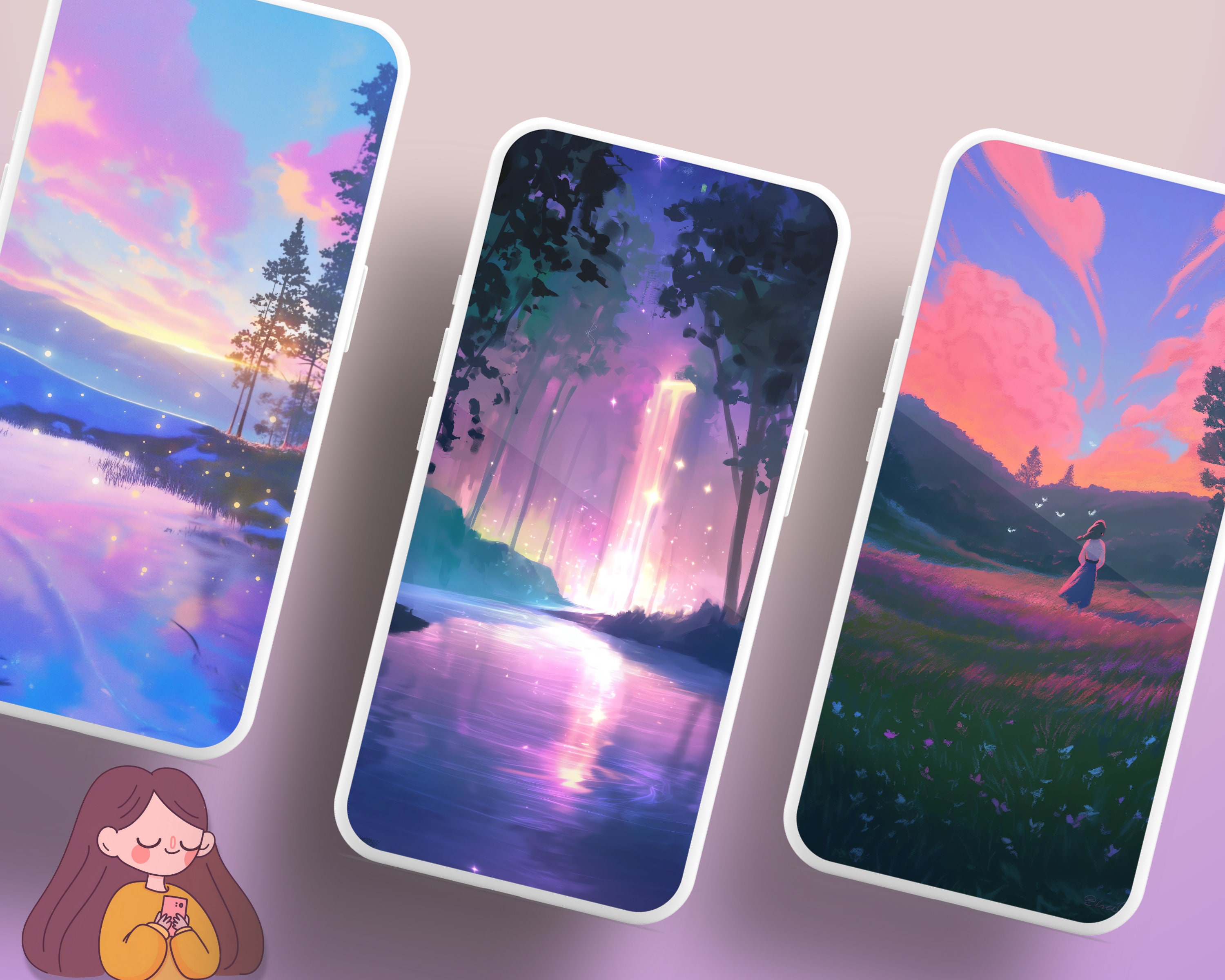 Bring a touch of coziness to your devices with this set of 12 dreamy pastel wallpapers! Featuring beautiful aesthetic scenes these high-res JPG files will fit perfectly on your phone or computer/tablet screens.