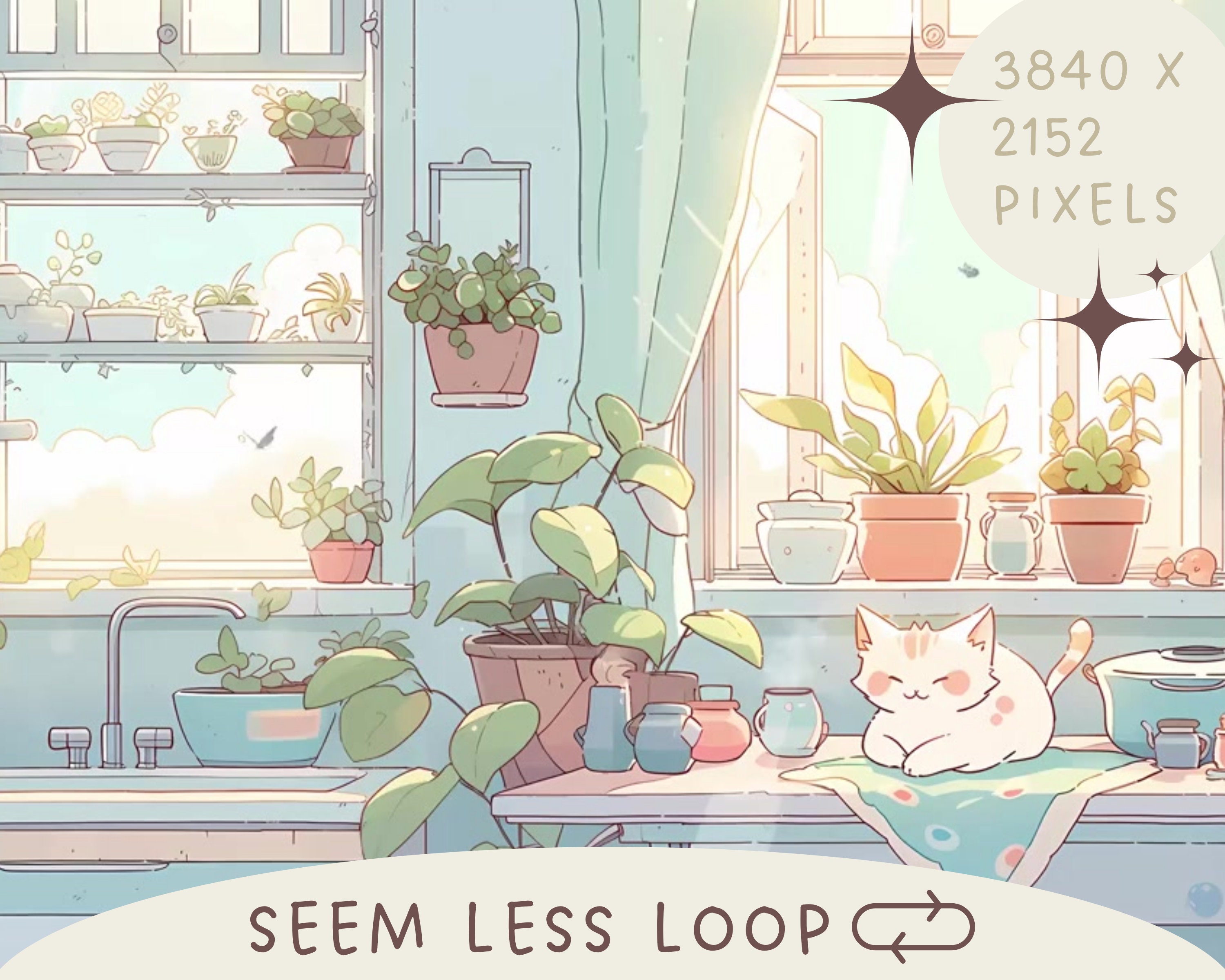 Cozy Lofi Cat Vtuber Animated Background: Twitch Stream Overlay (MP4)