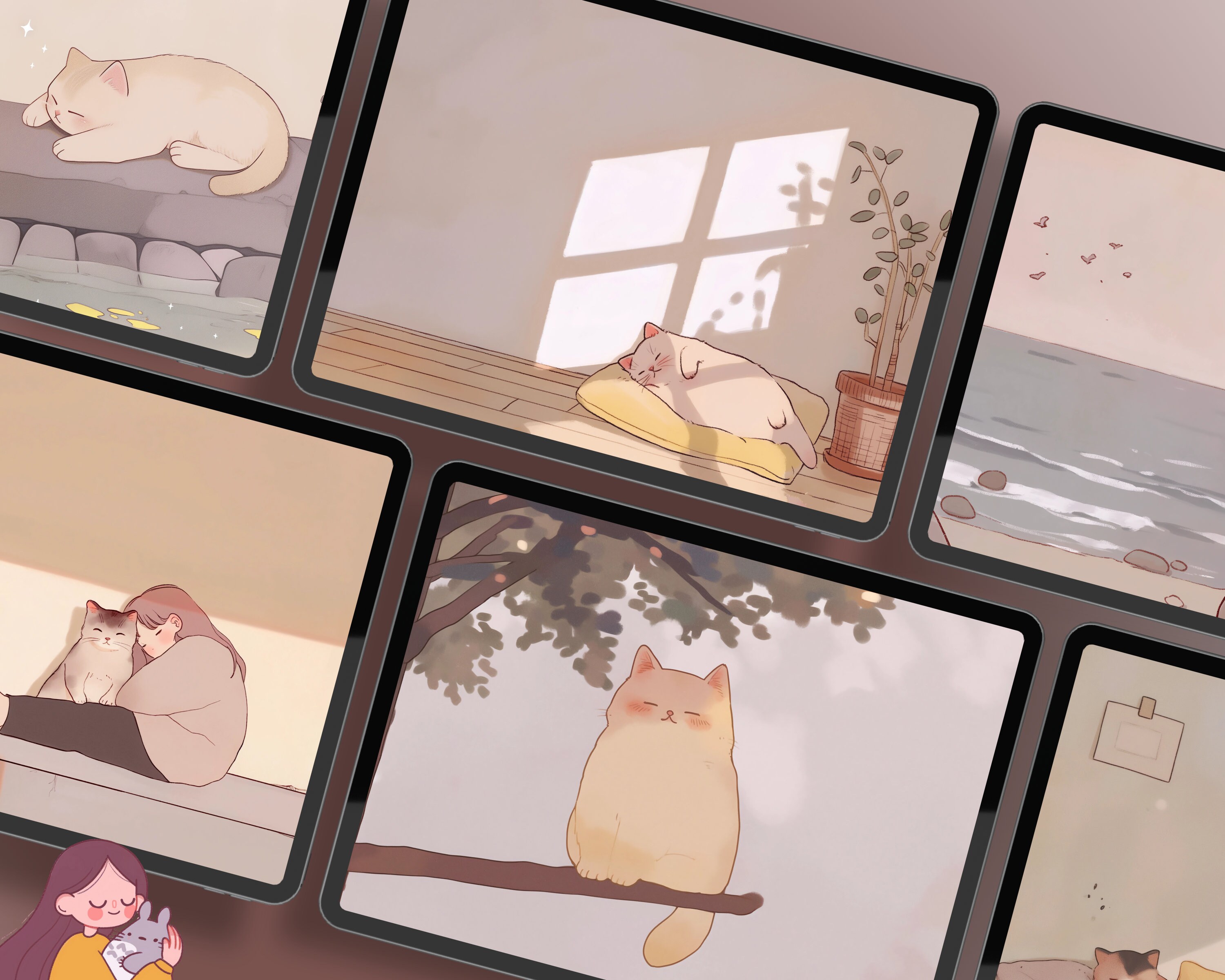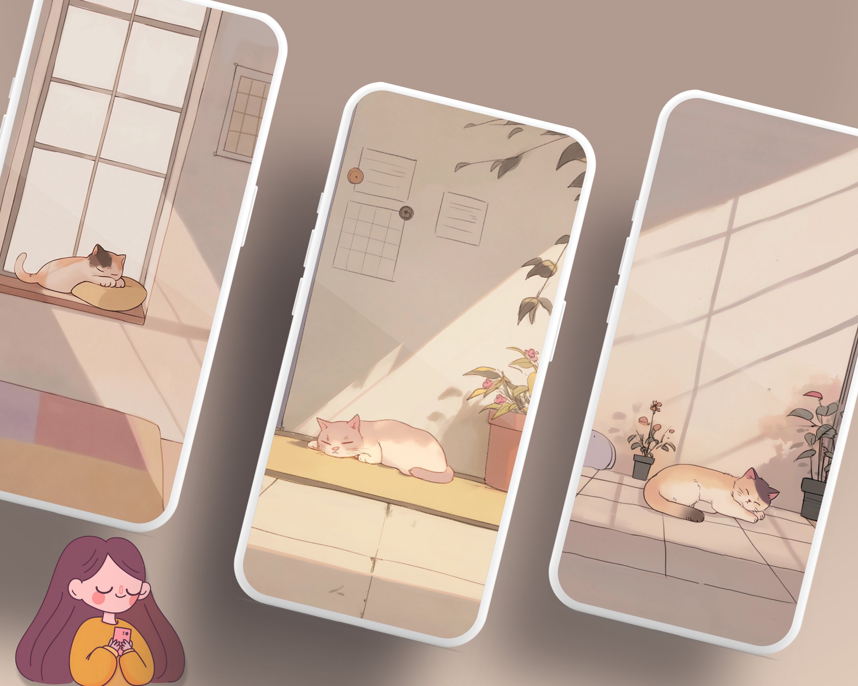 Cozy Cats Wallpaper Bundle: Desktop & Mobile (Digital Download)