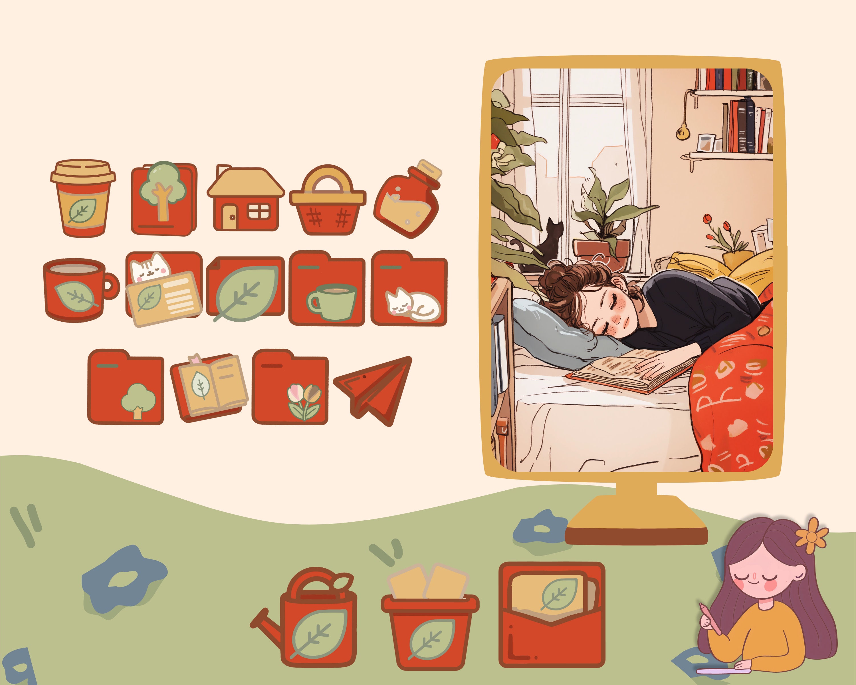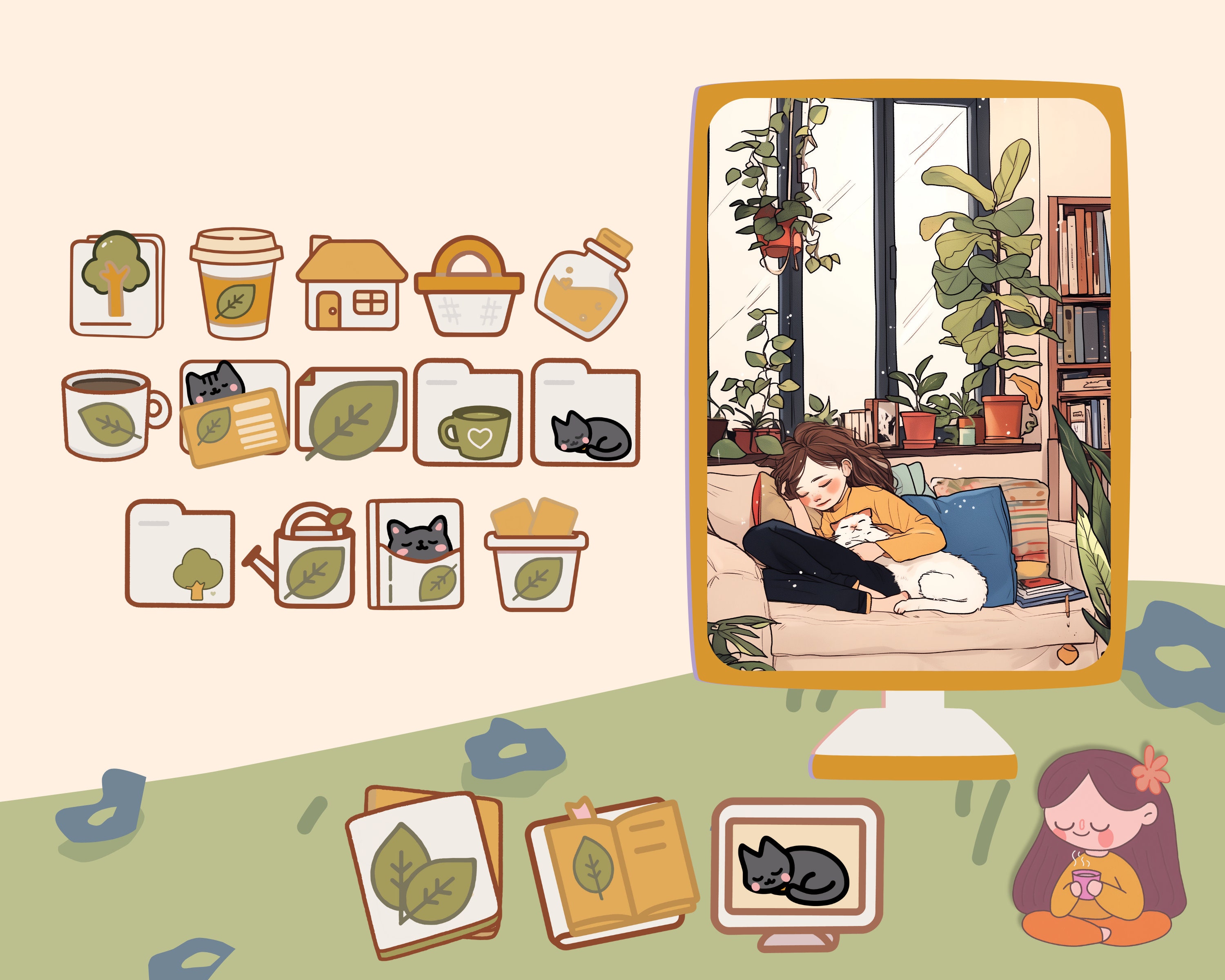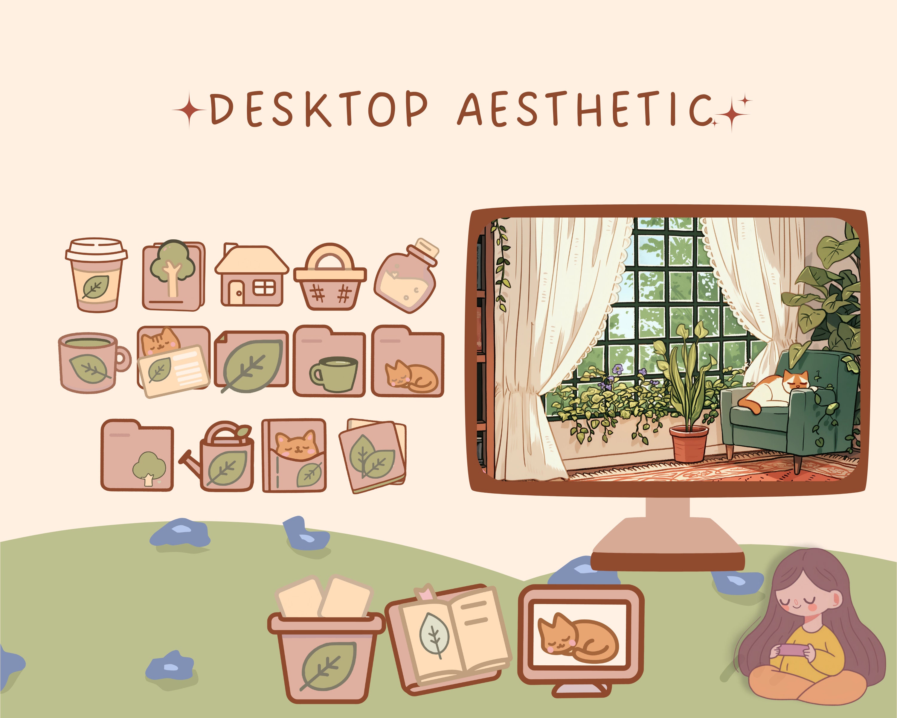 Personalize your icons, folders, and shortcuts with a cohesive theme and declutter your desktop using our desktop aesthetic. ๐๐๏ธ