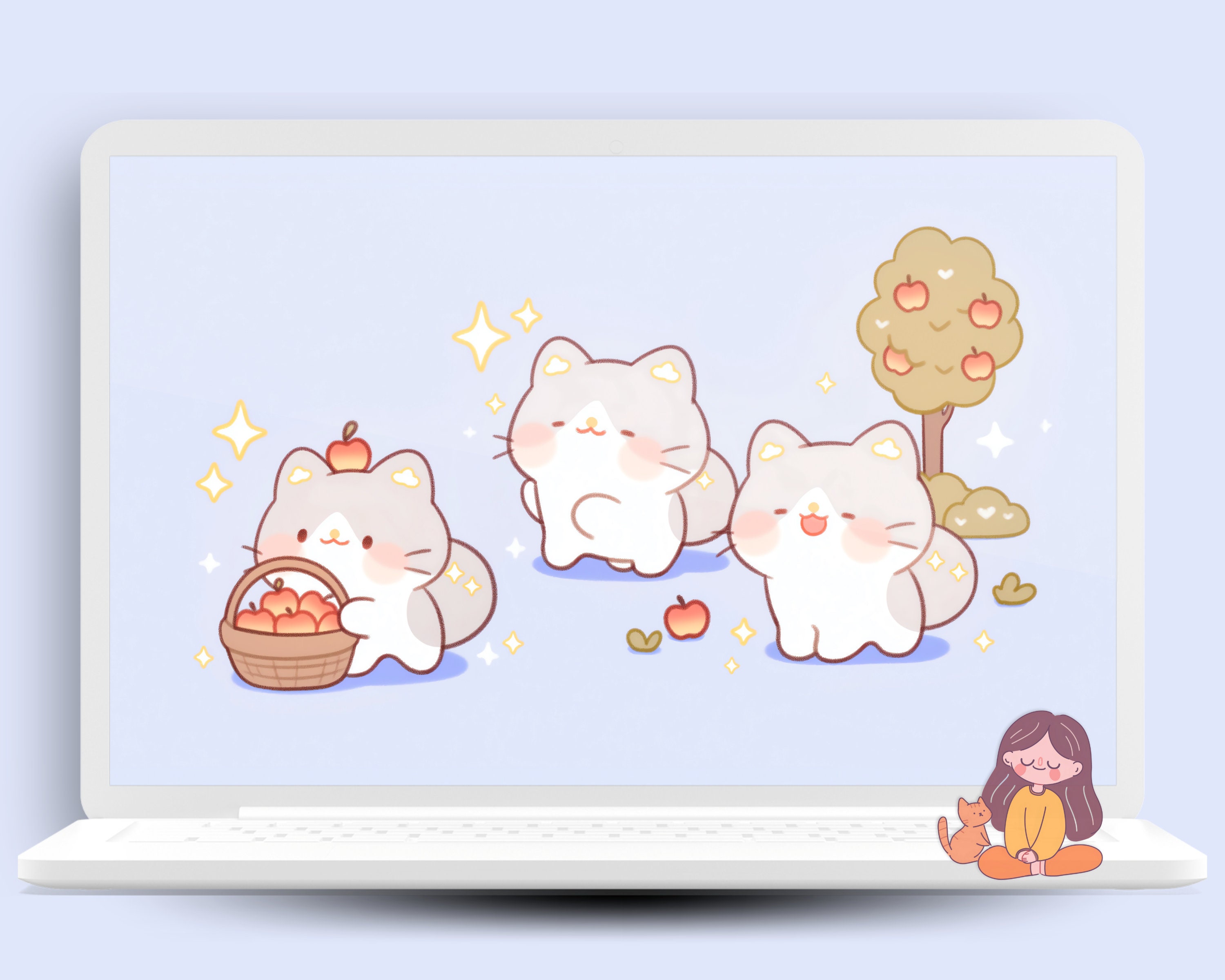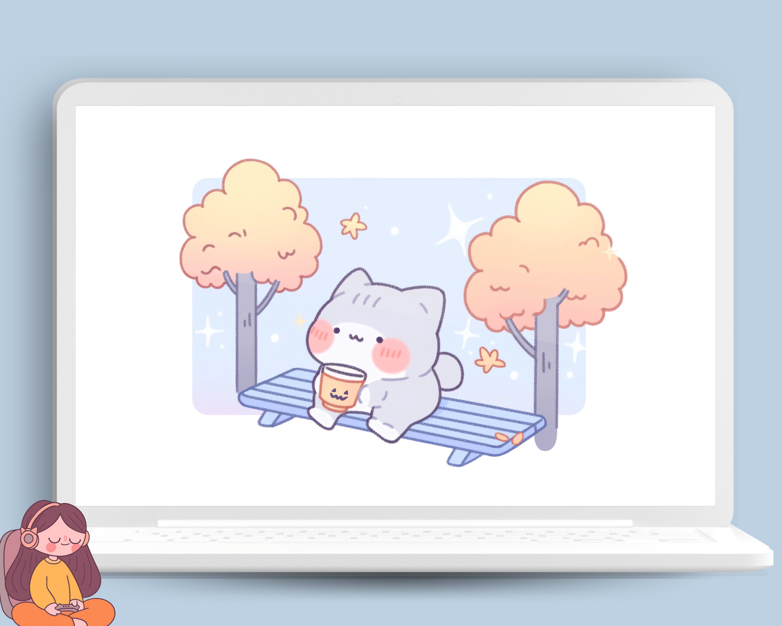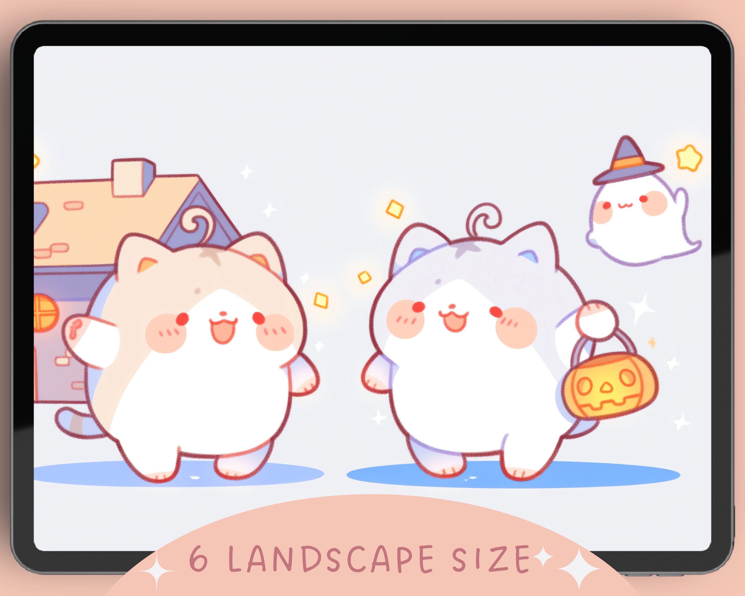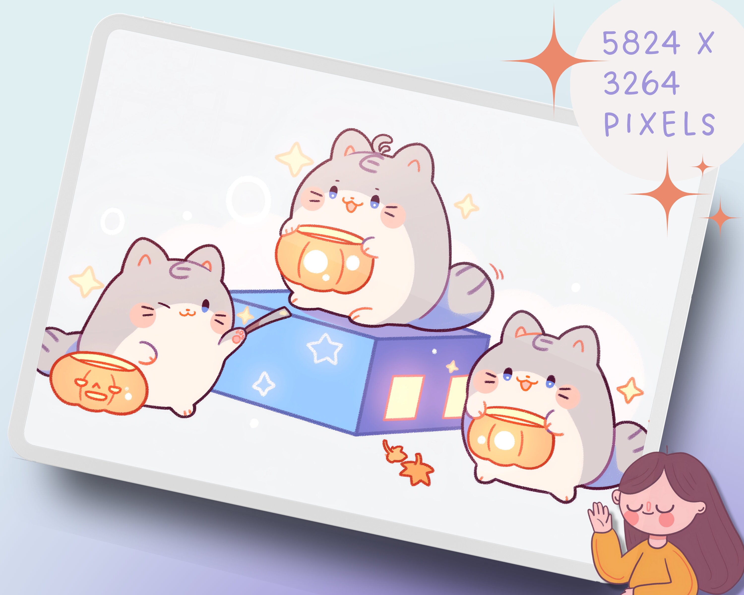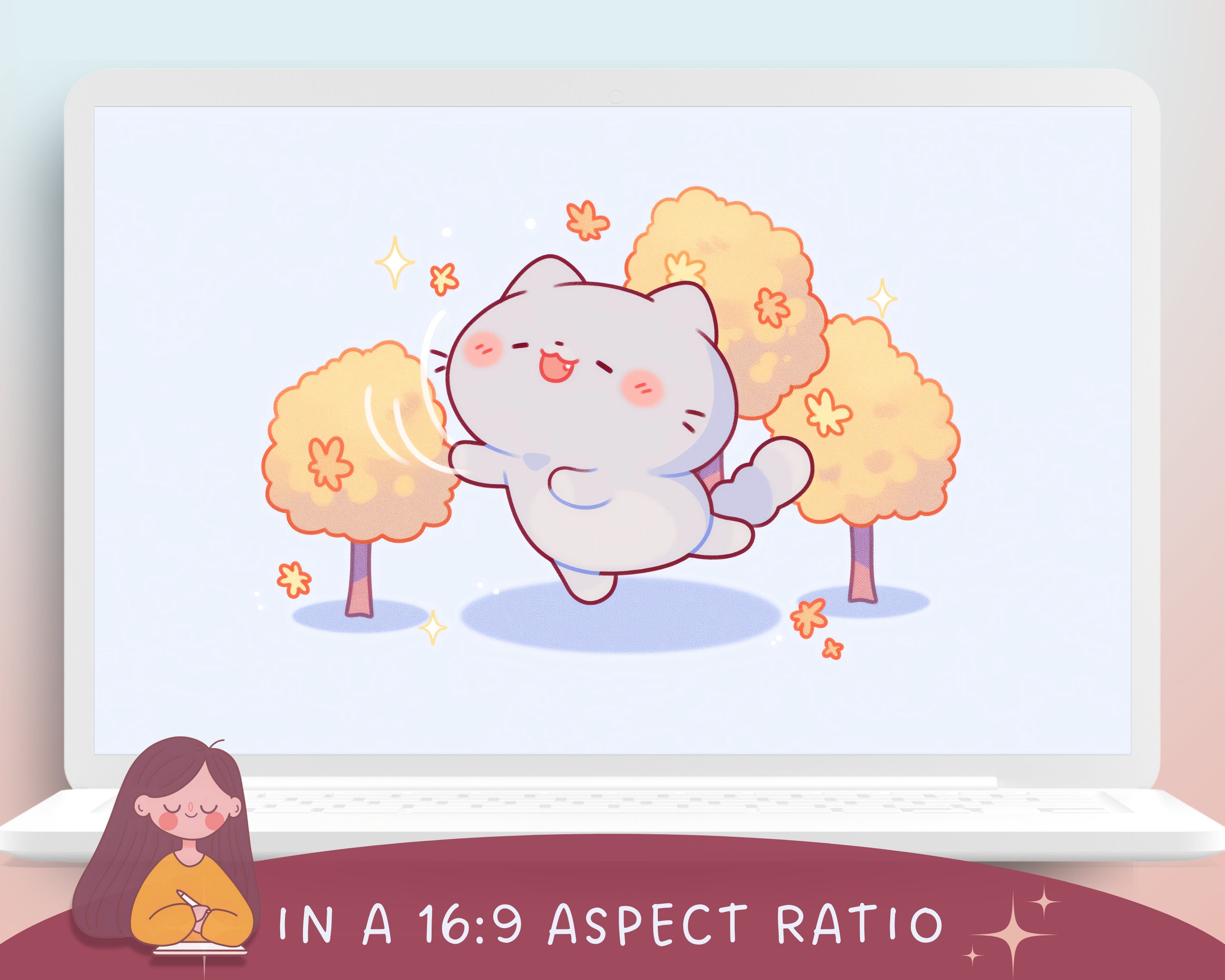 Kawaii Cat Autumn Wallpaper: Pumpkin Halloween Screensaver (Digital Download)