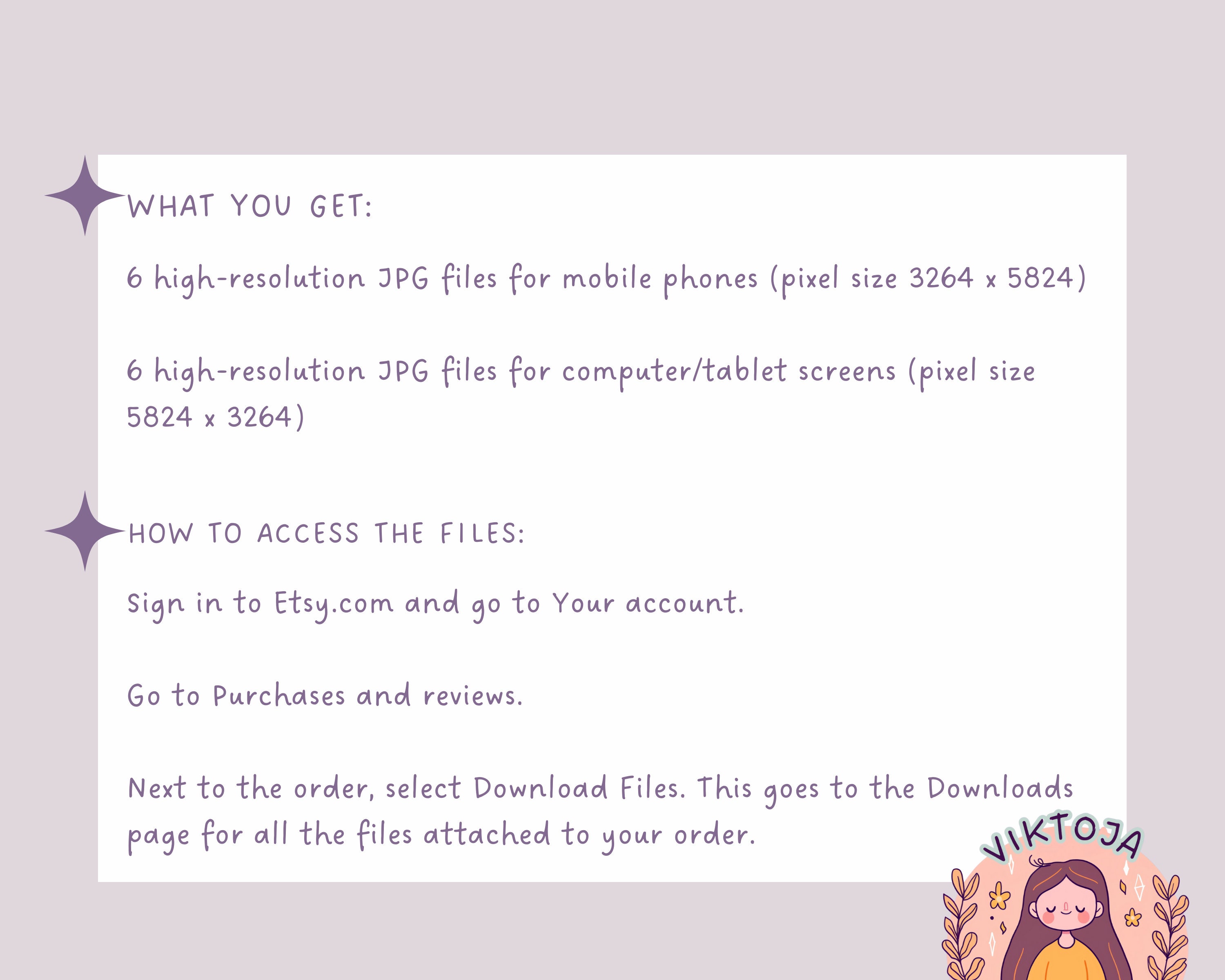 After purchase, you'll receive a PDF file with a link to download your wallpapers.