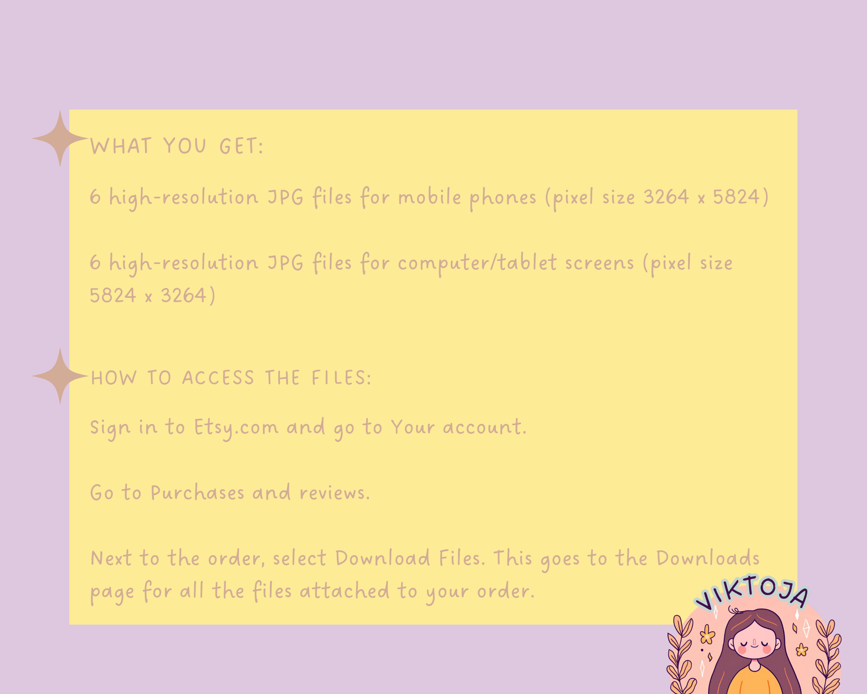 After purchase, you'll receive a PDF file with a link to download your wallpapers.