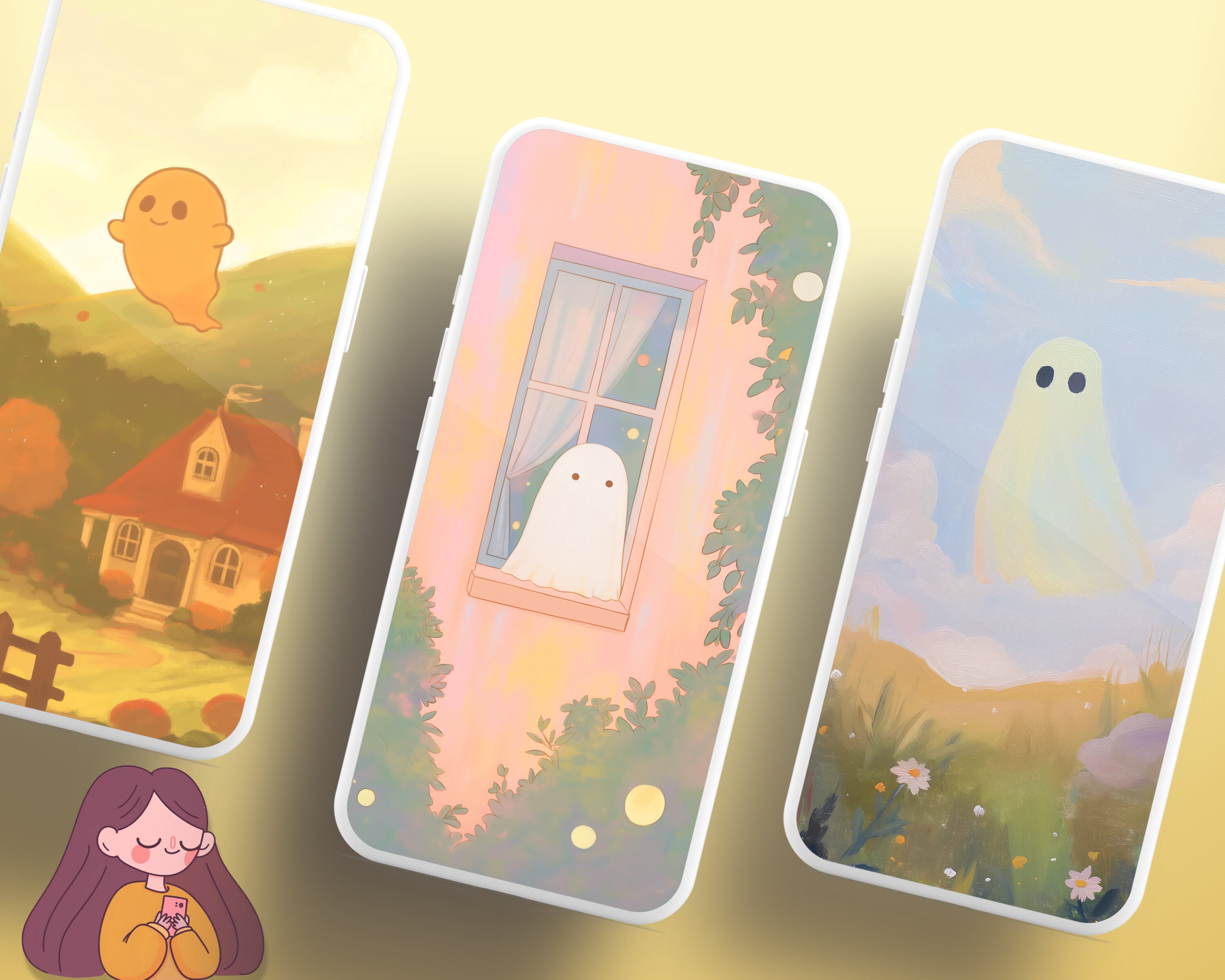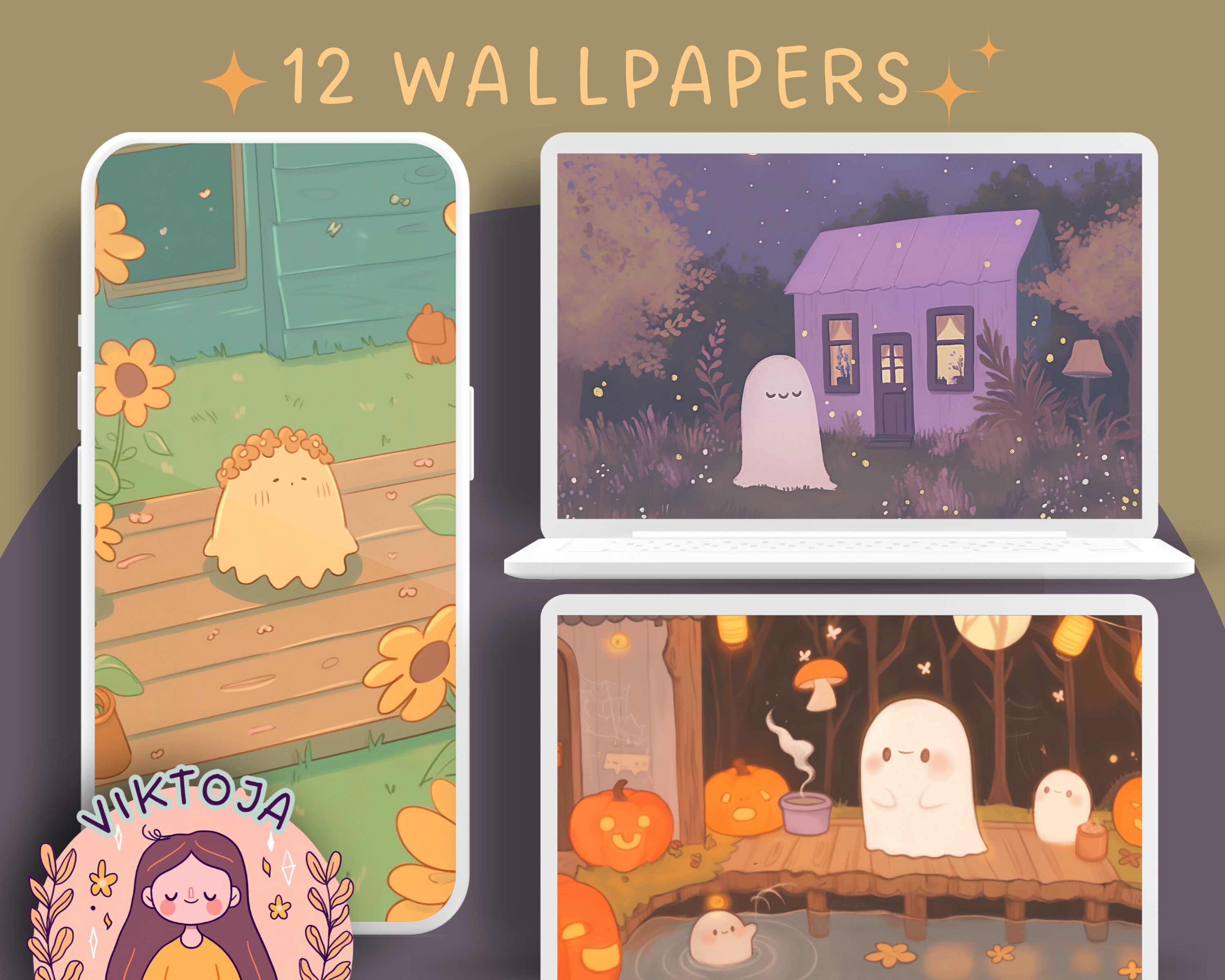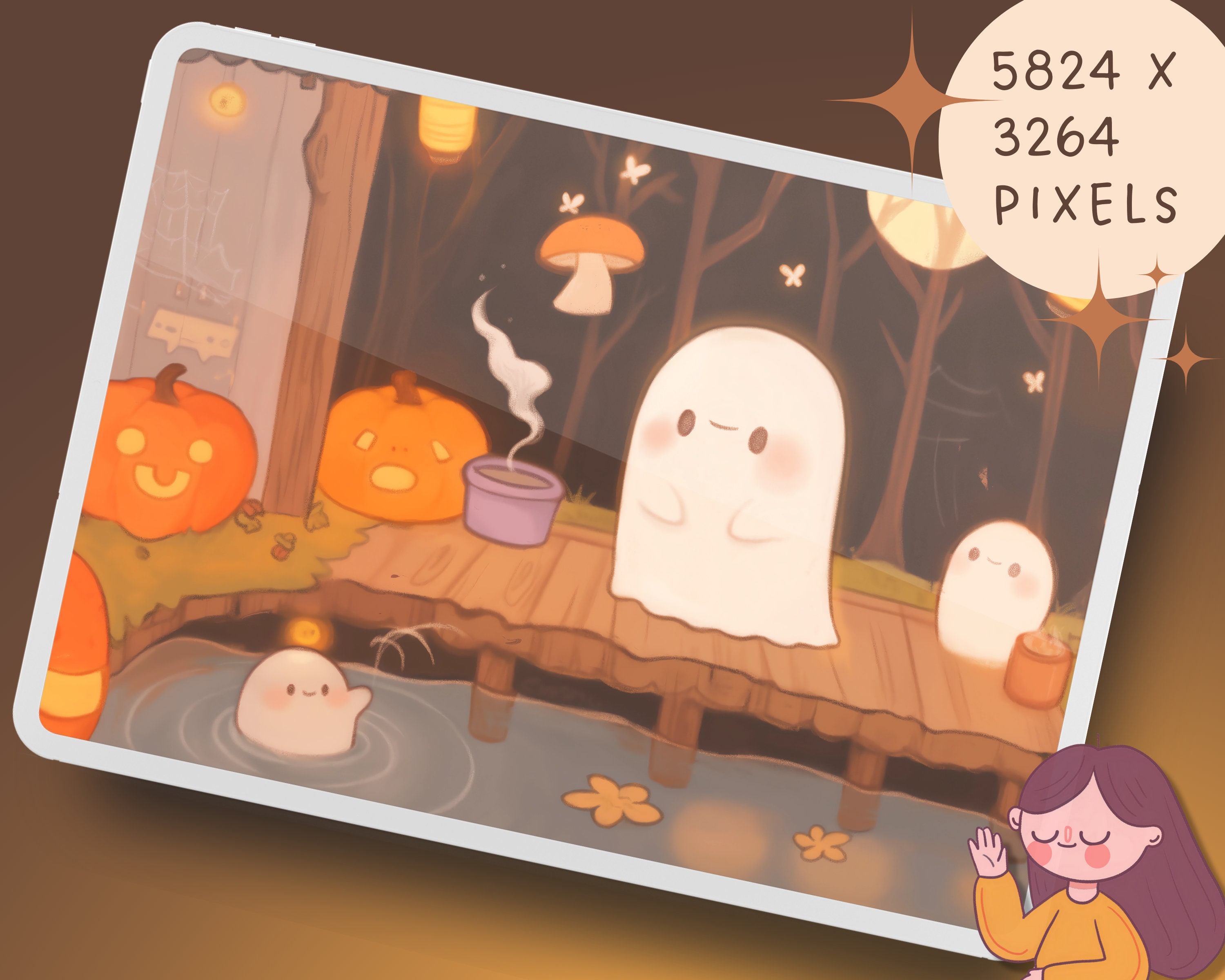 Ghost Halloween Wallpaper Set, Lofi (Digital Download
