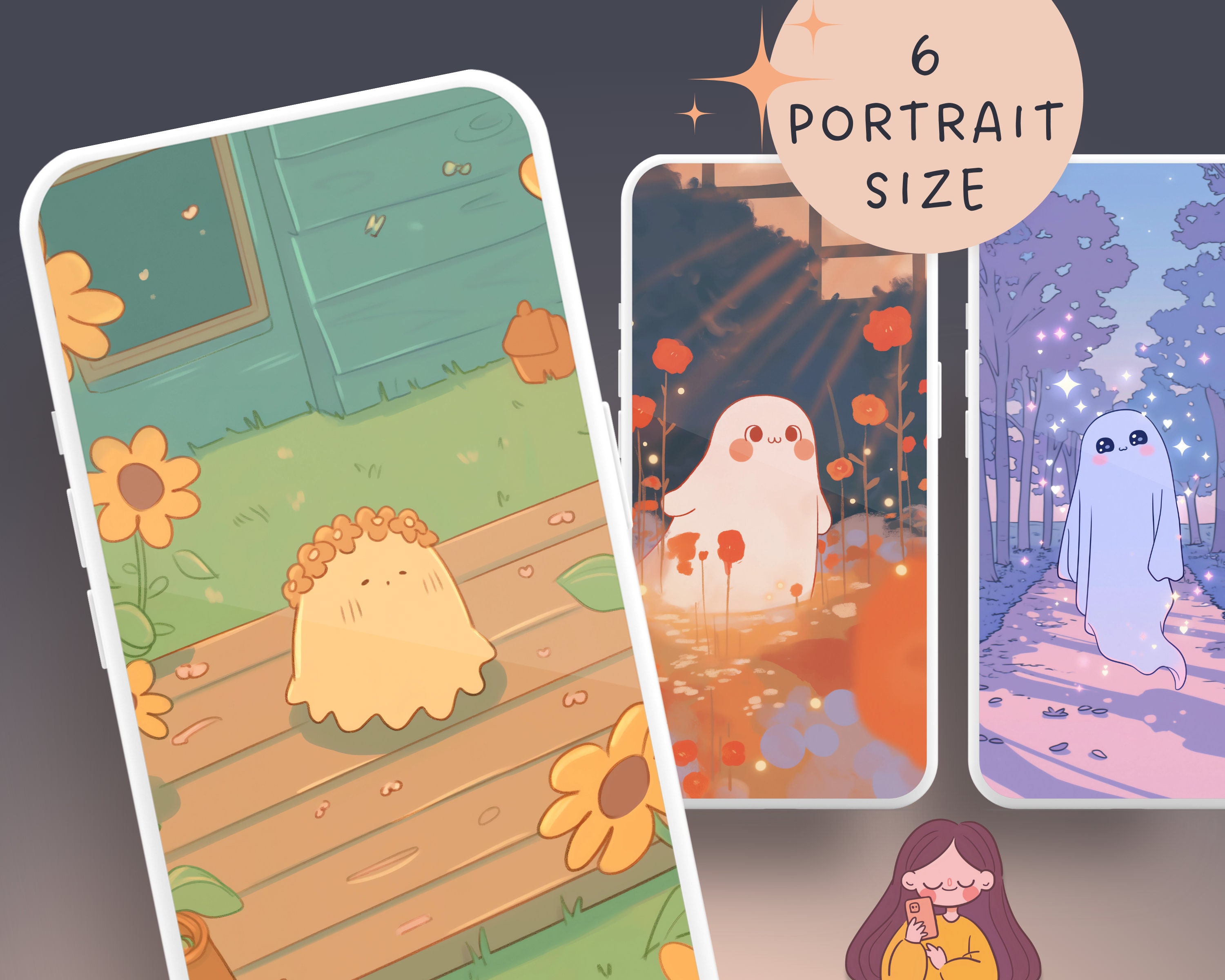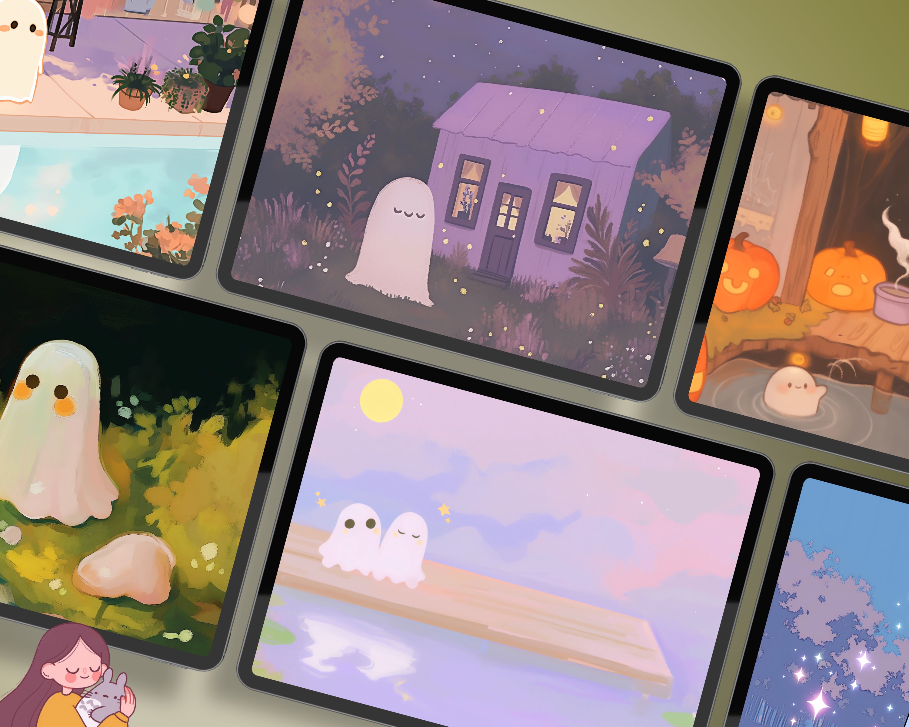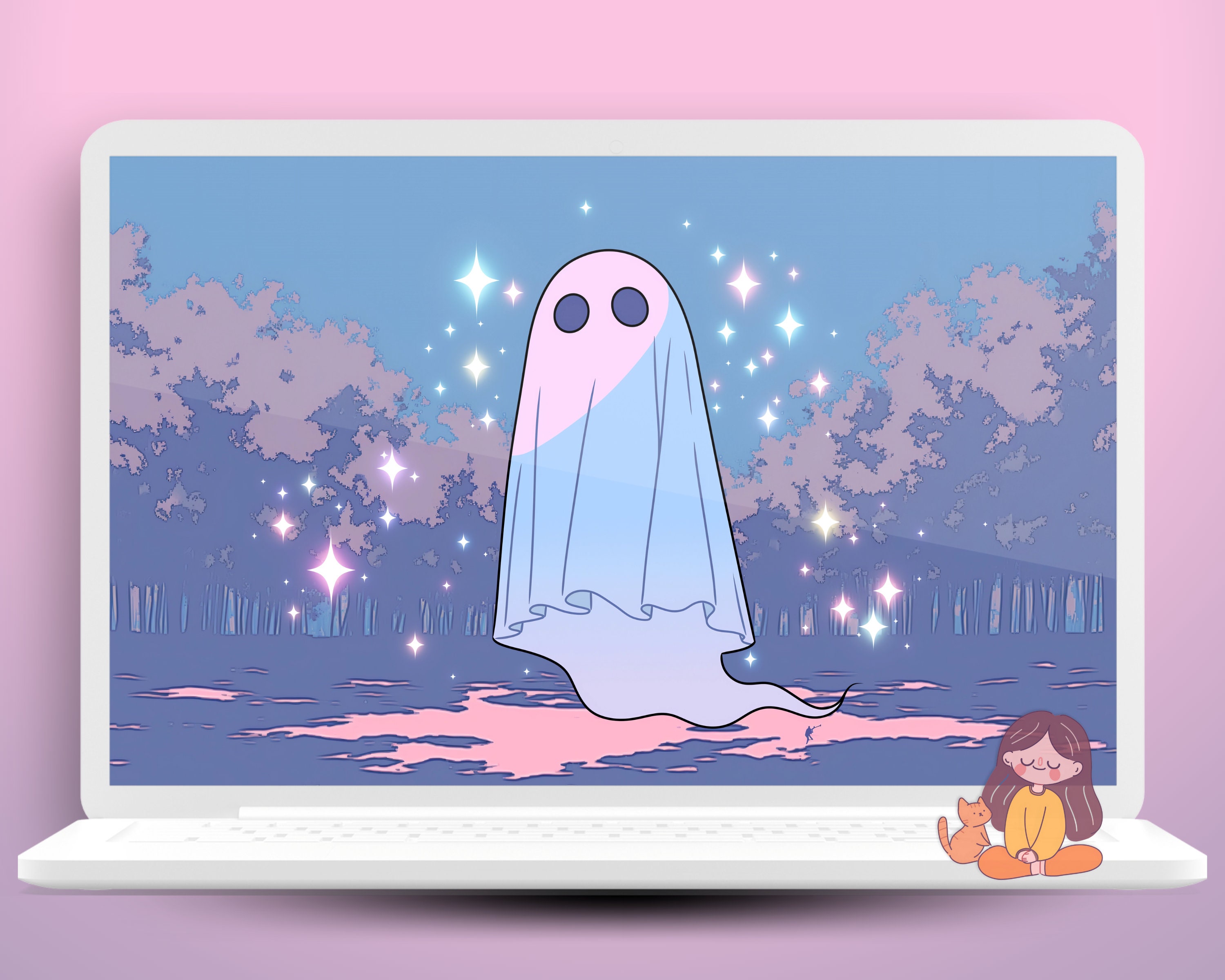 Ghost Halloween Wallpaper Set, Lofi (Digital Download