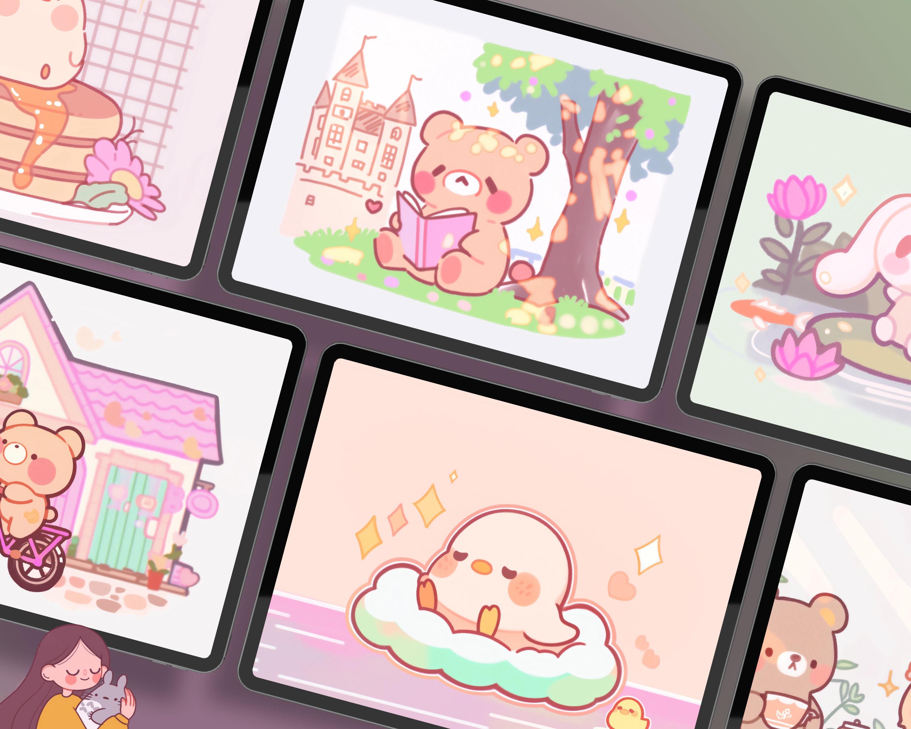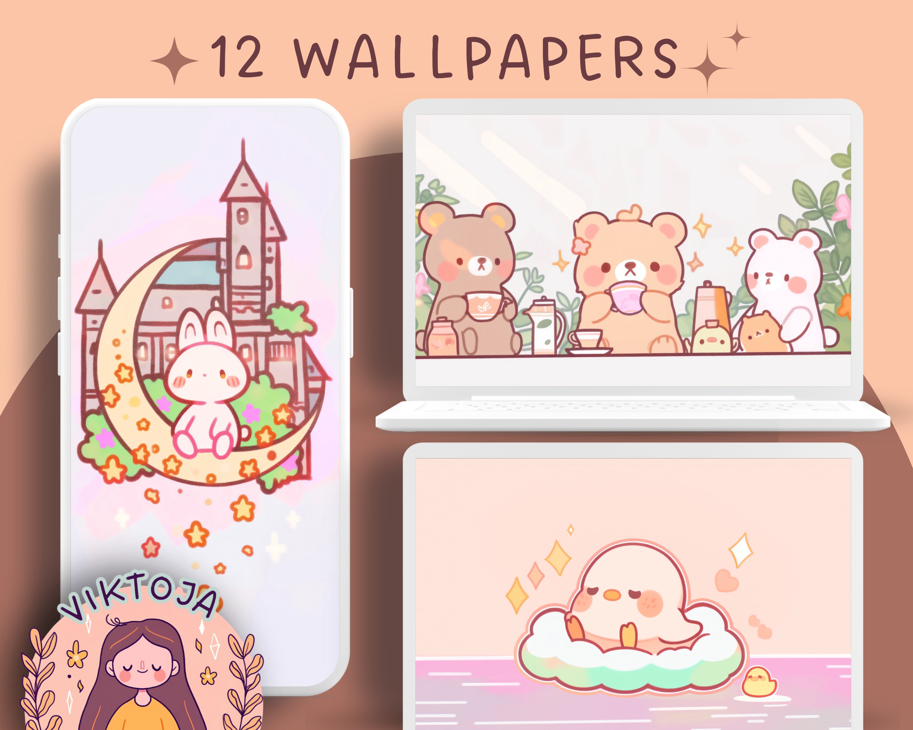 Kawaii Cuties Wallpaper: Cozy Desktop & Mobile Backgrounds (Digital Download)