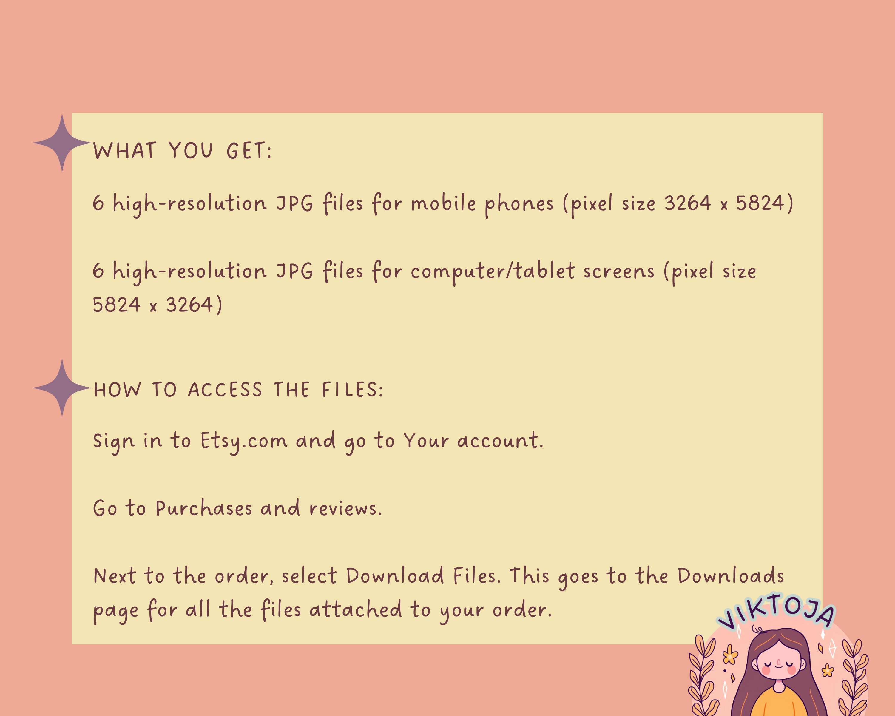 After purchase, you'll receive a PDF file with a link to download your wallpapers.