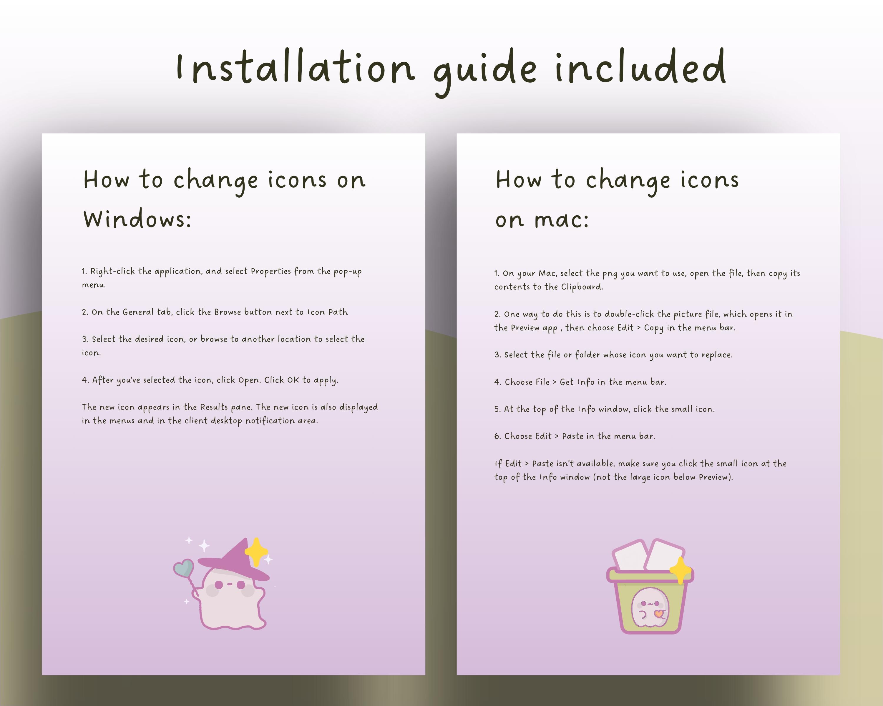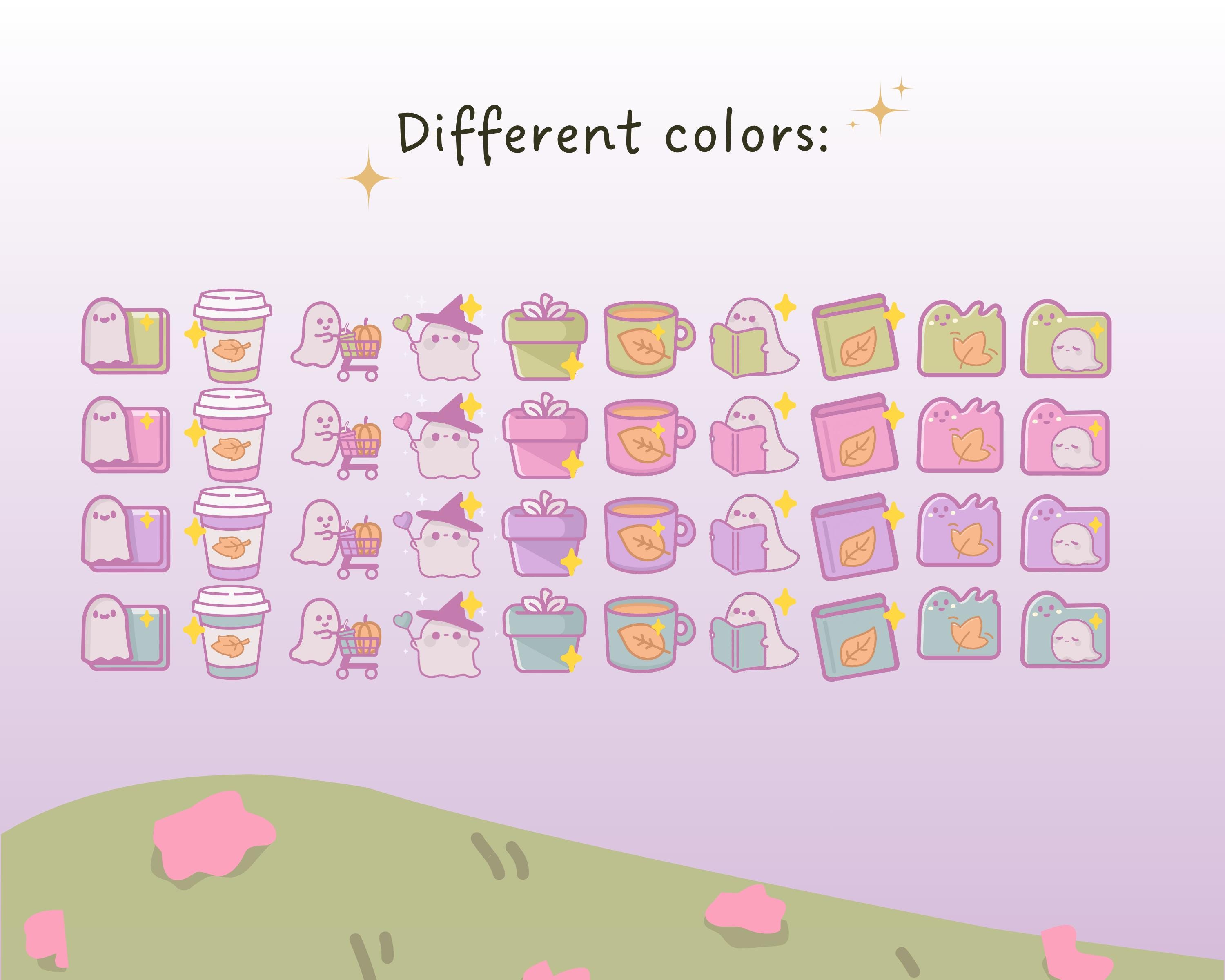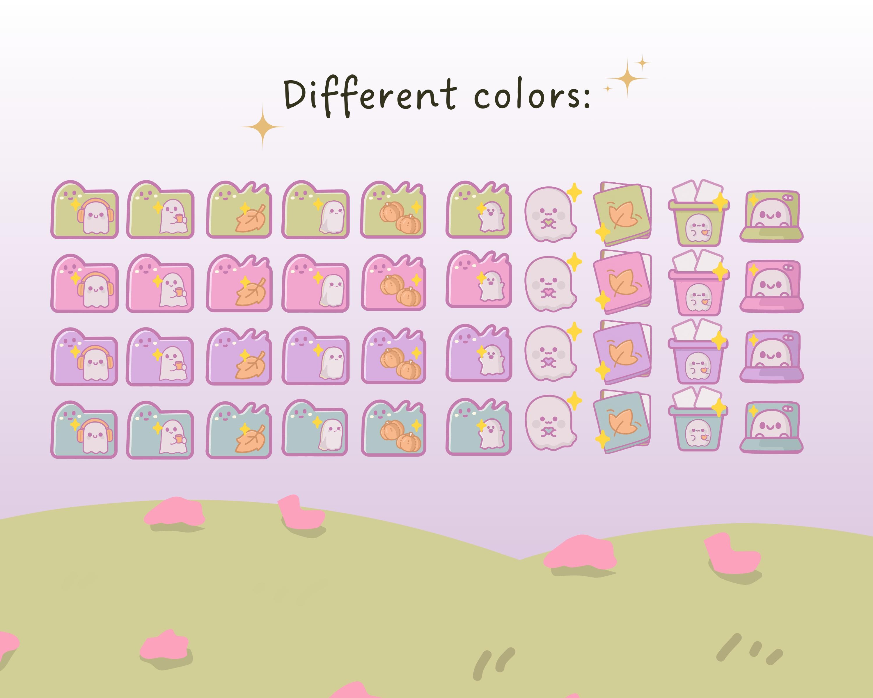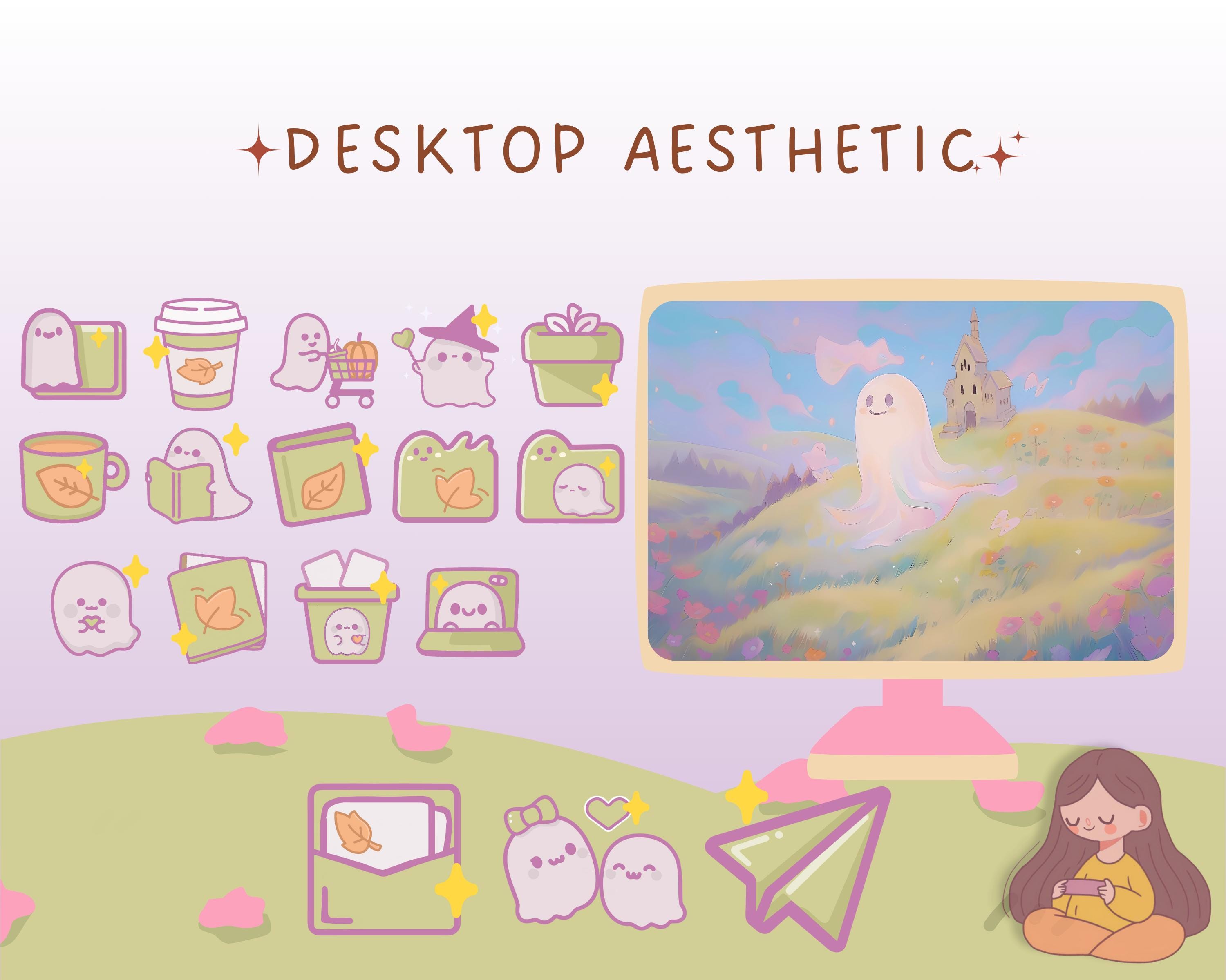 Pastel Ghost Desktop Wallpaper & Kawaii Icons (Digital Download)