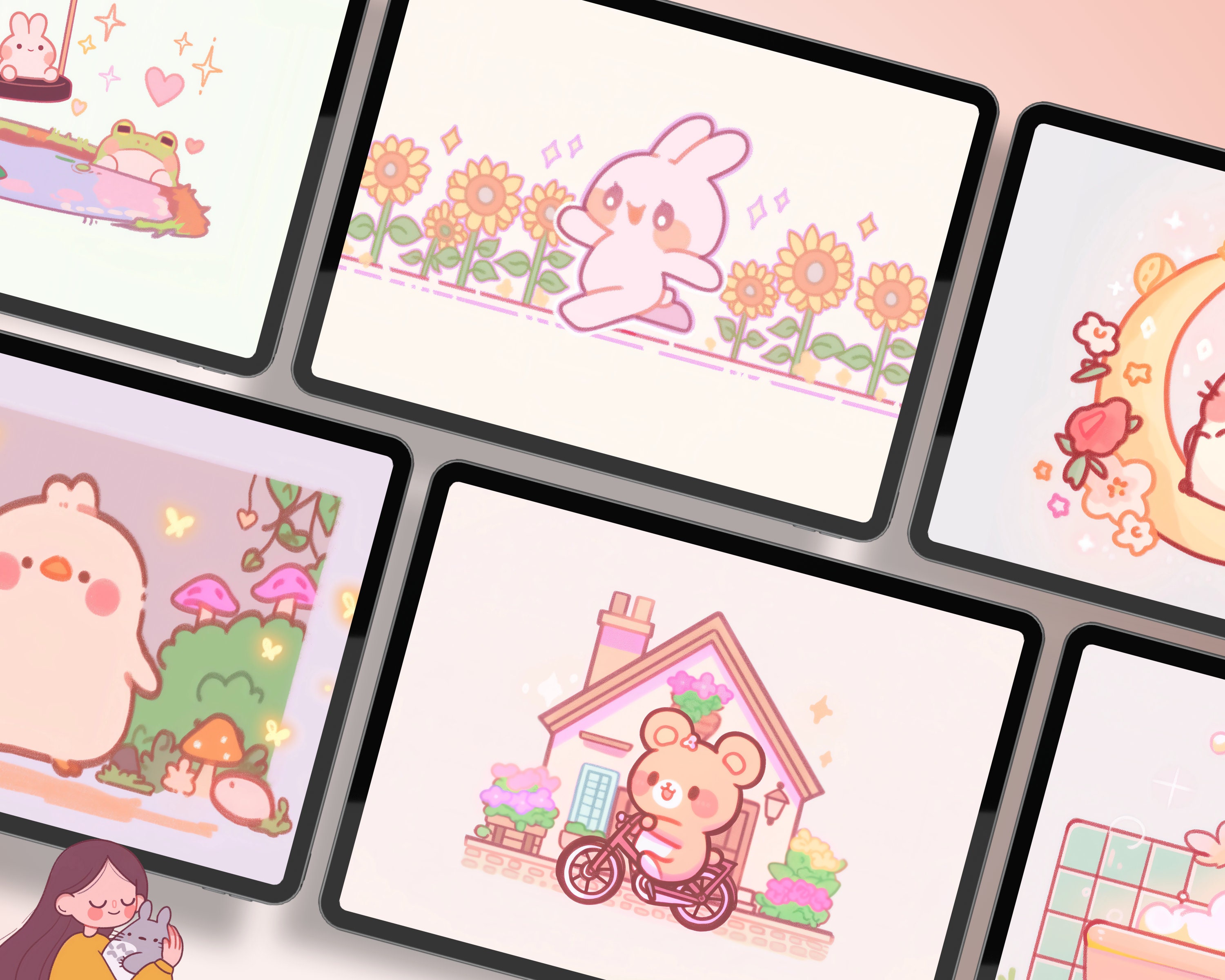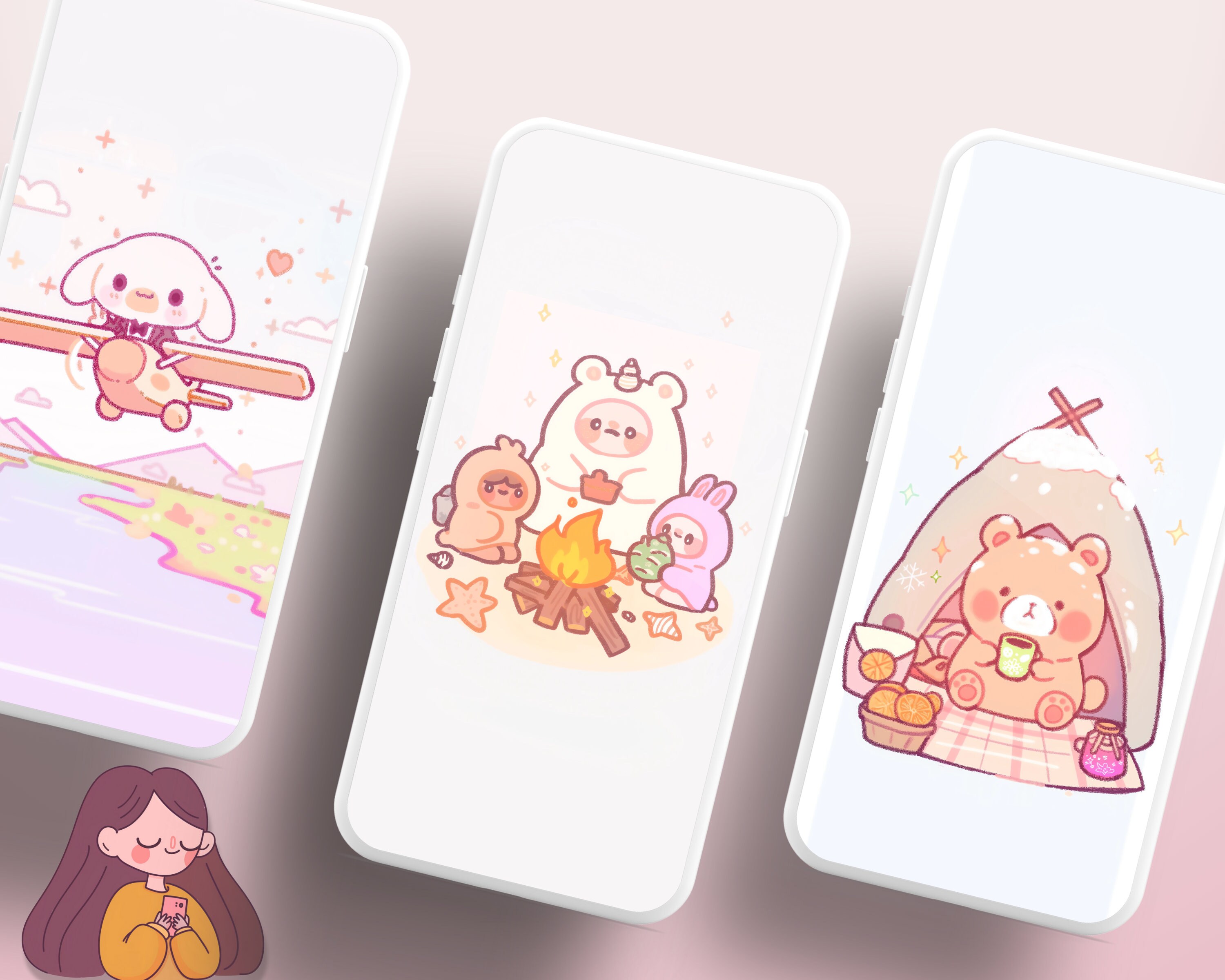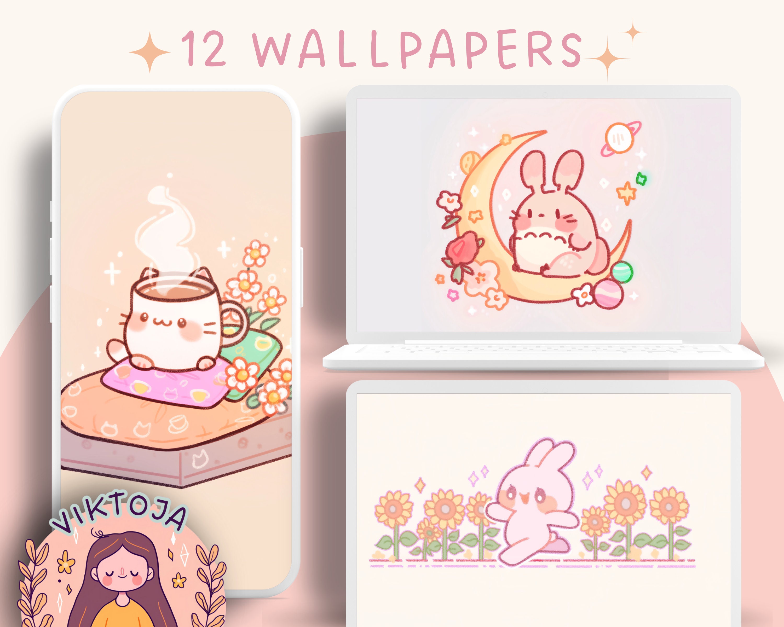 Kawaii Pastel Wallpaper Set – Desktop & Mobile Backgrounds (Digital Download)