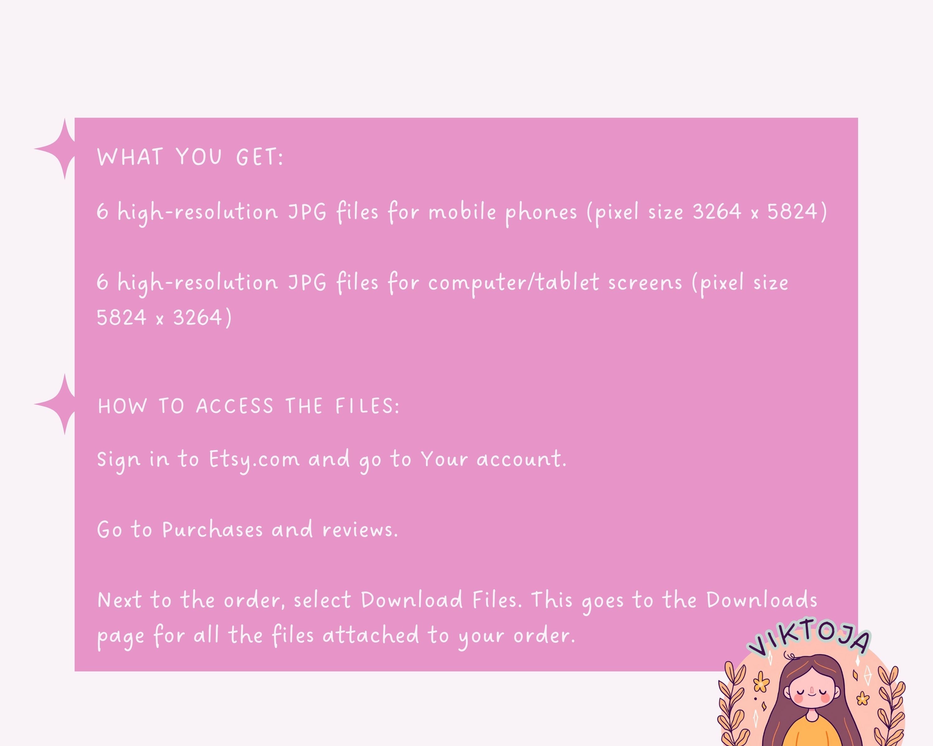 After purchase, you'll receive a PDF file with a link to download your wallpapers.