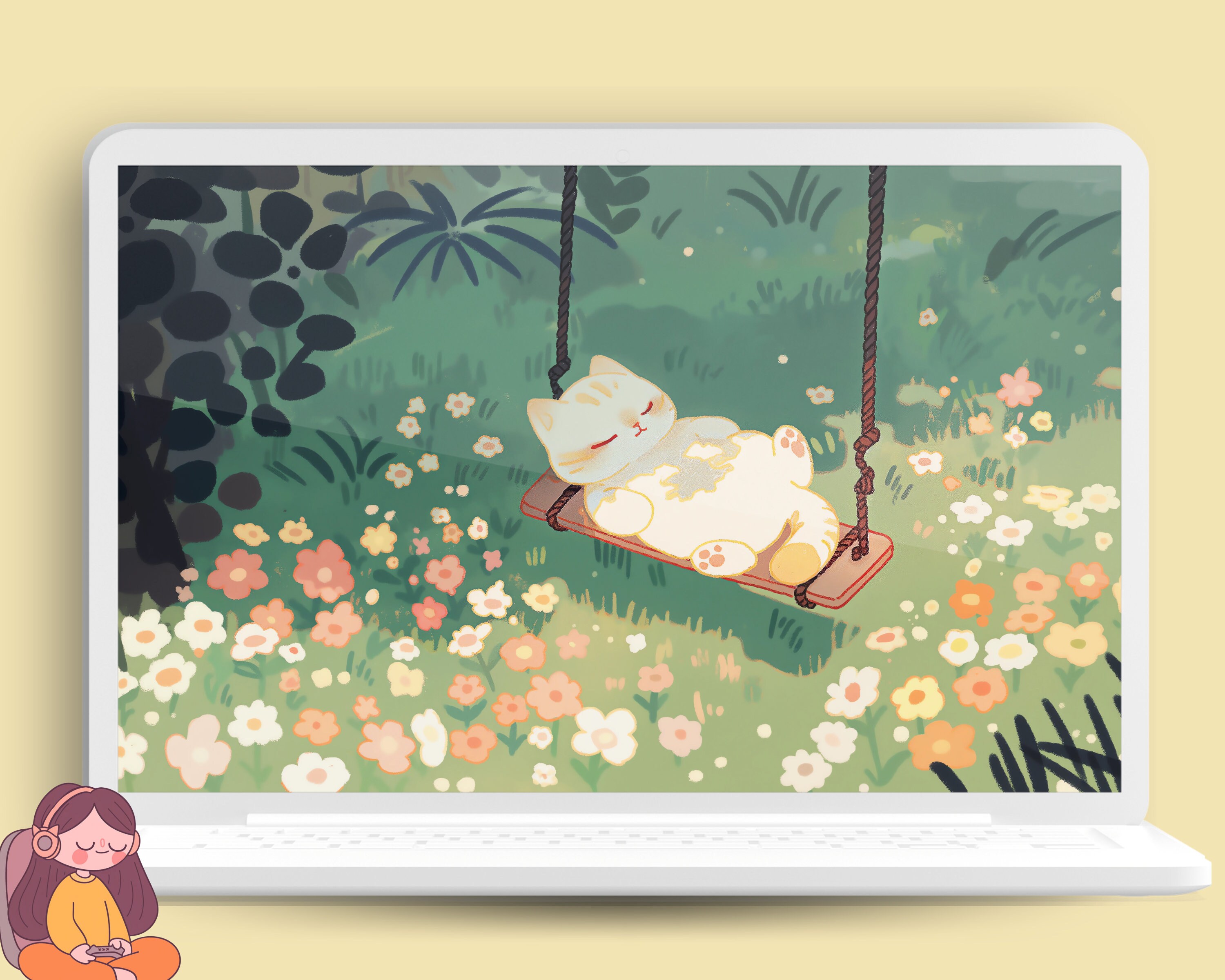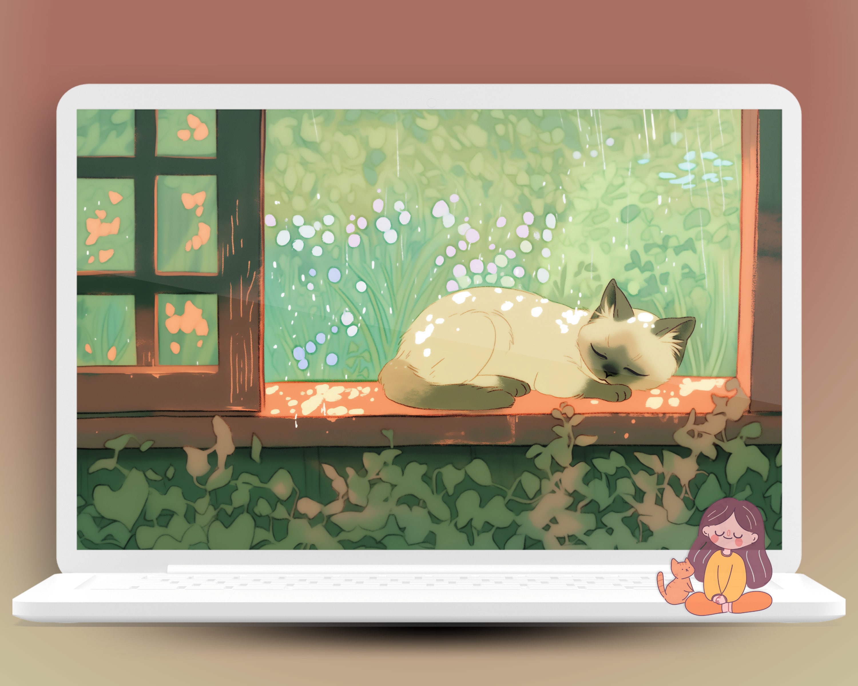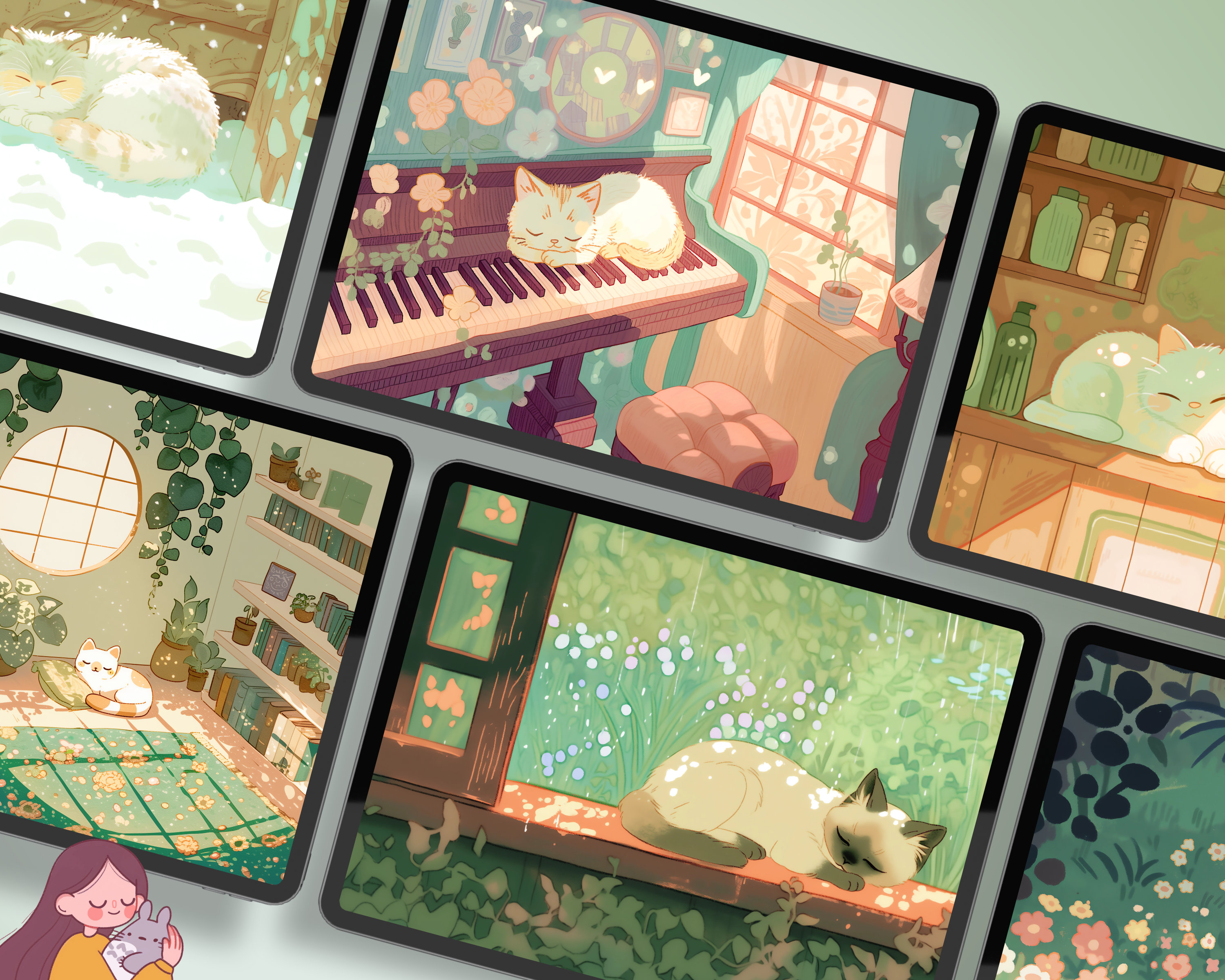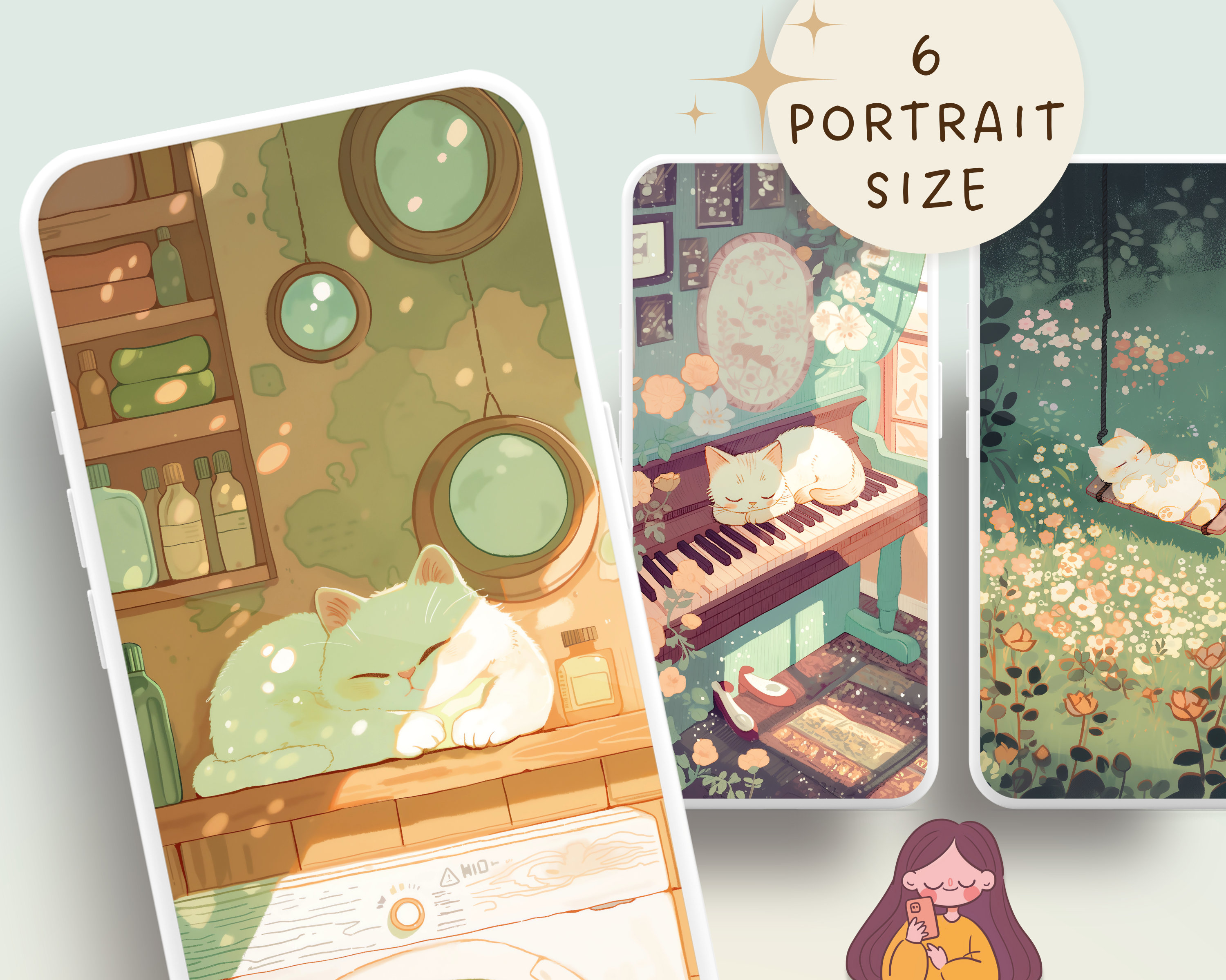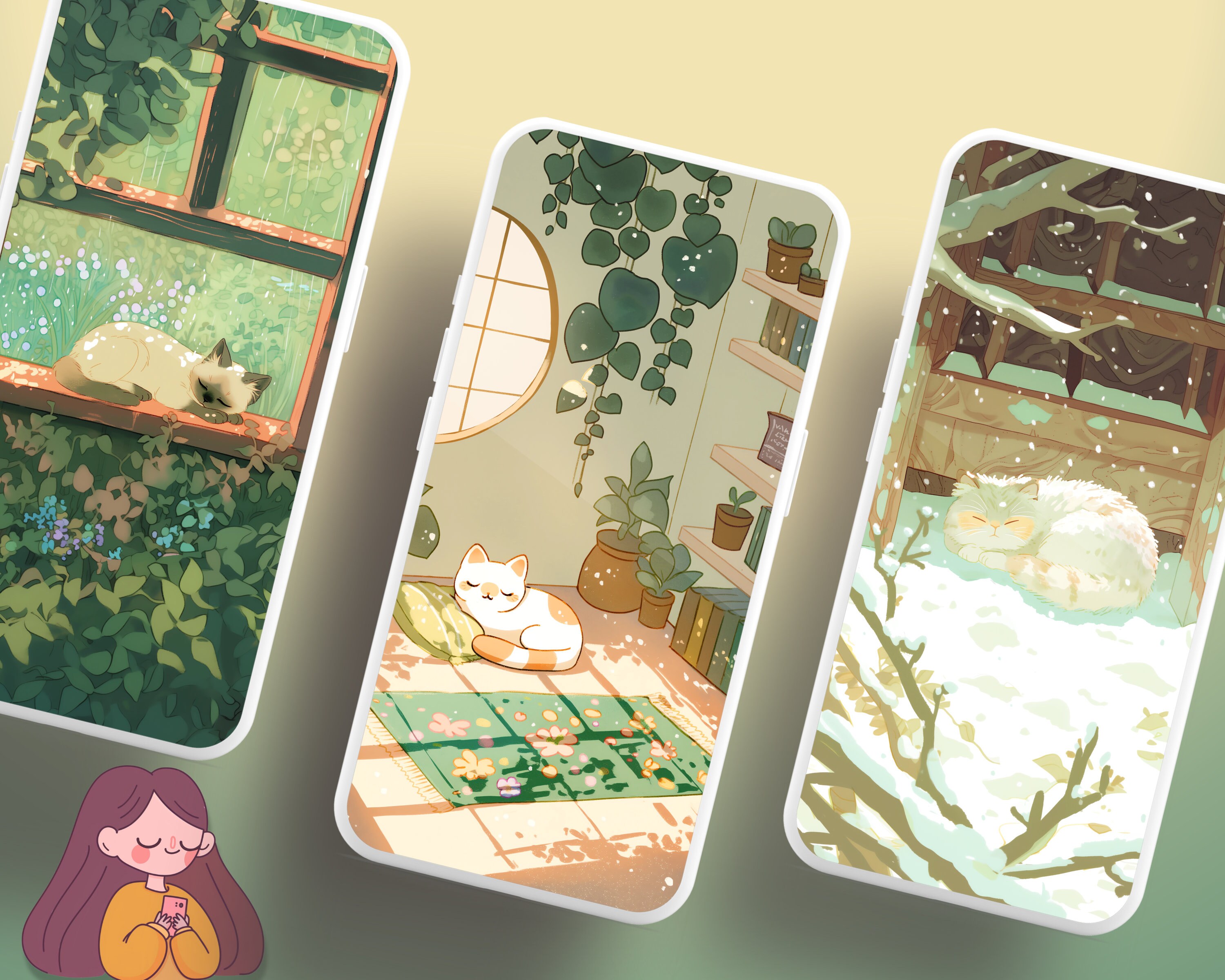 Cozy Cats Wallpaper Bundle: Moody Anime Style (Digital Download)