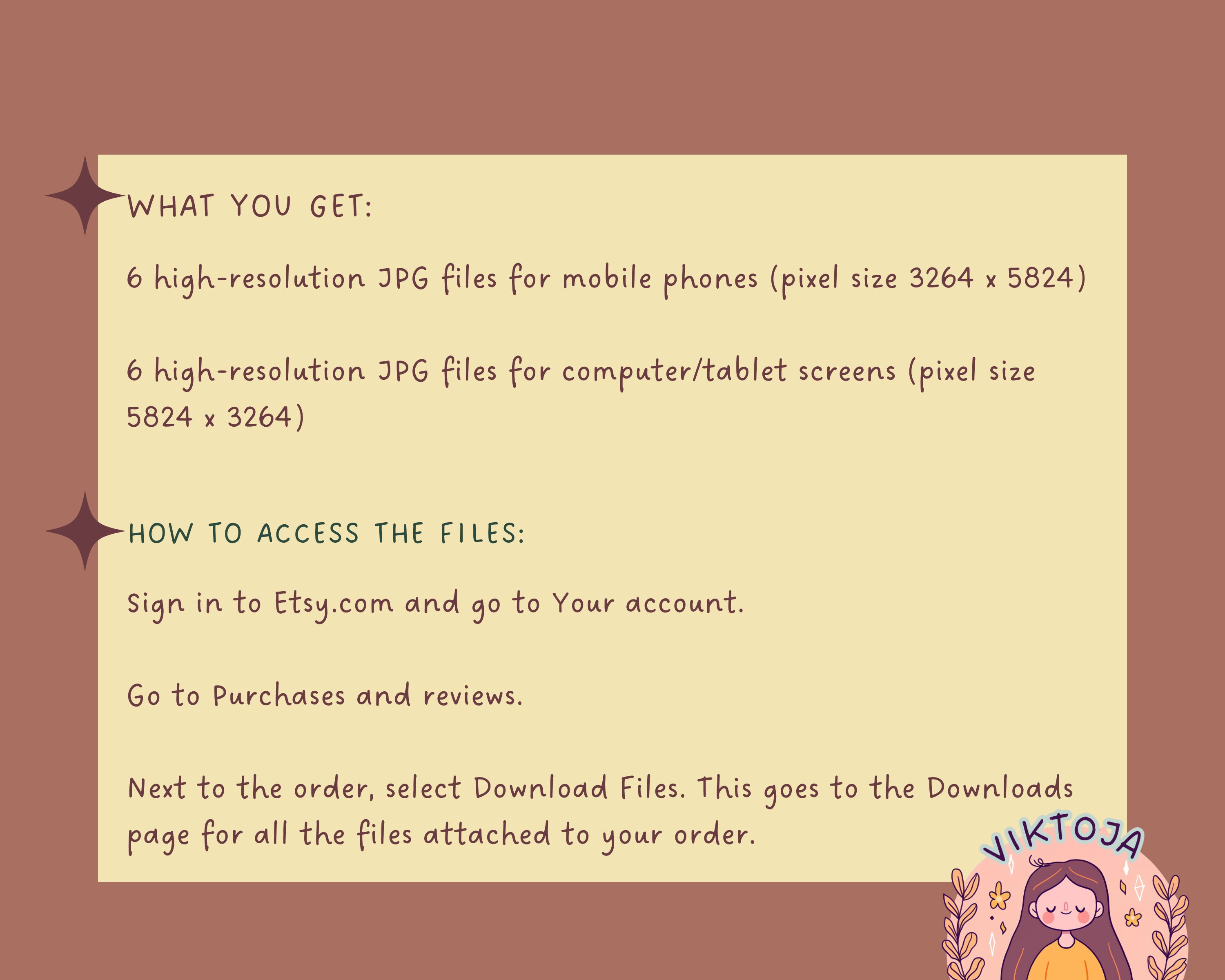 After purchase, you'll receive a PDF file with a link to download your wallpapers.