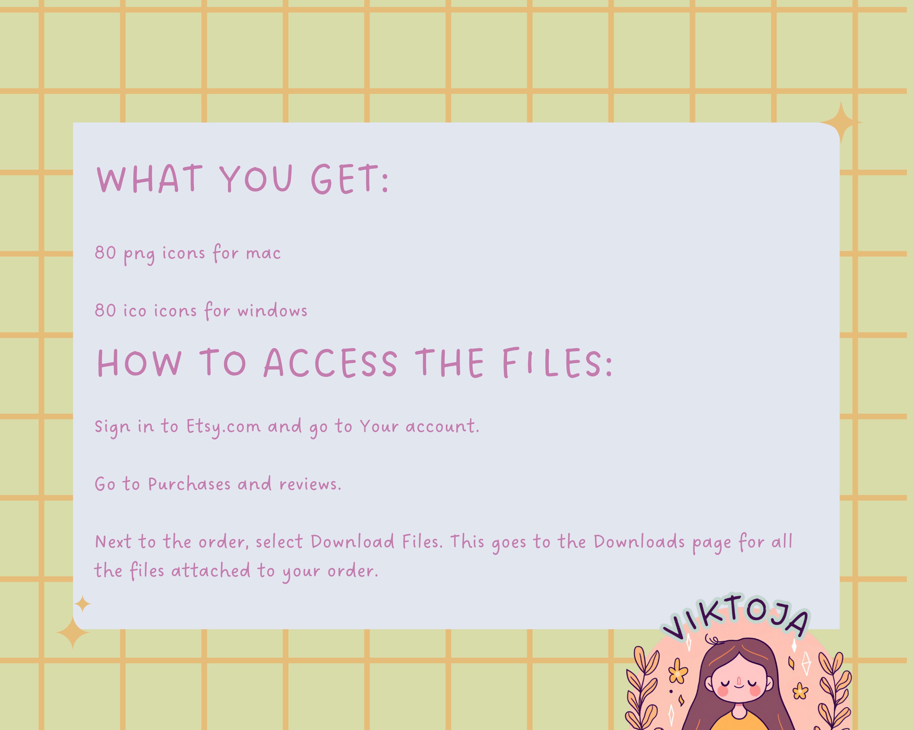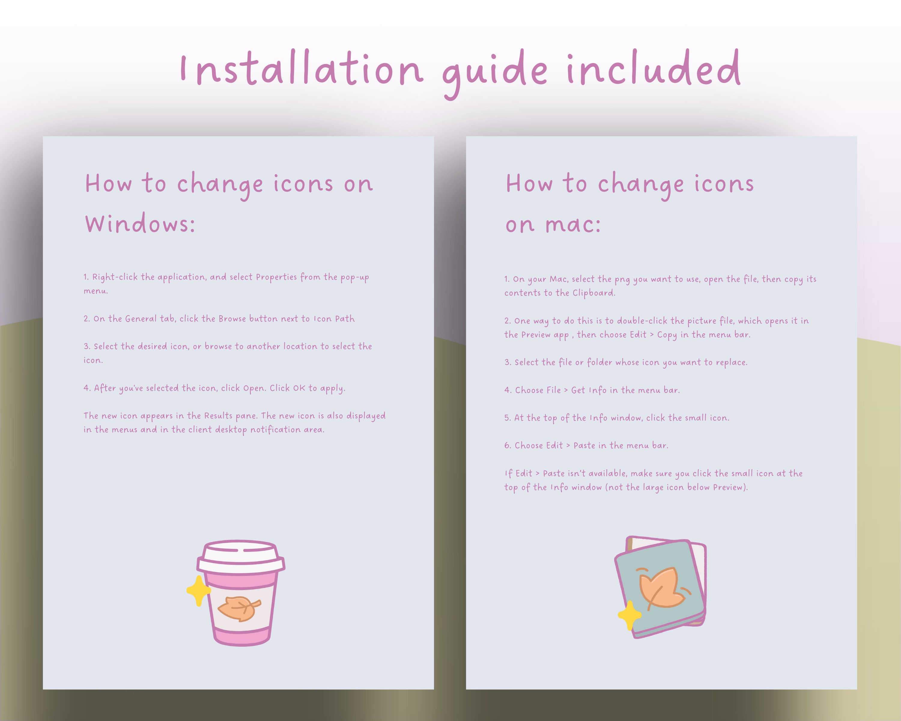 Personalize your icons, folders, and shortcuts with a cohesive theme and declutter your desktop using our cute icons. ๐ŸŒˆ๐Ÿ–Œ๏ธ