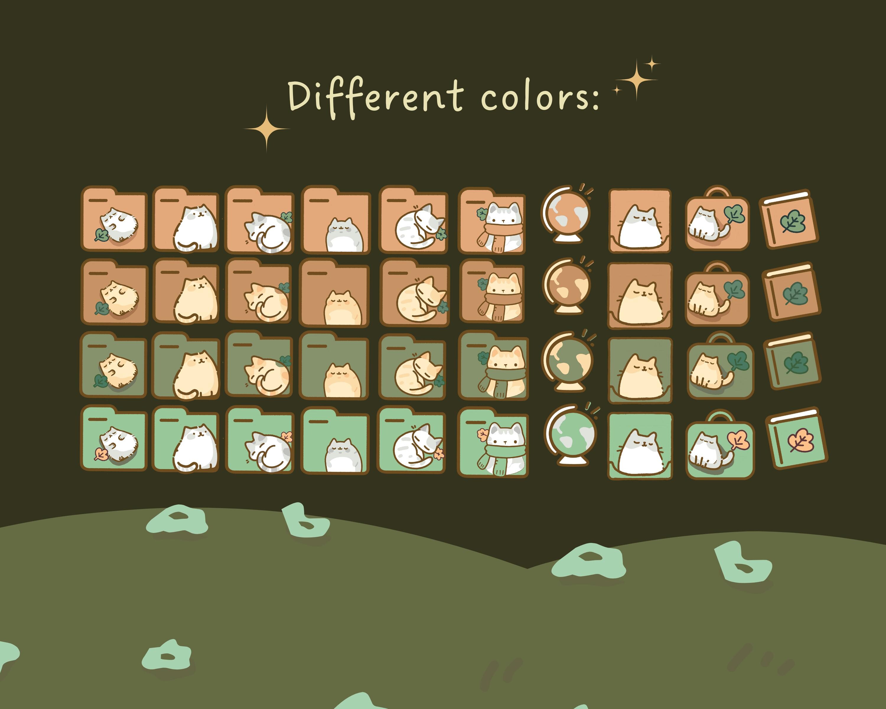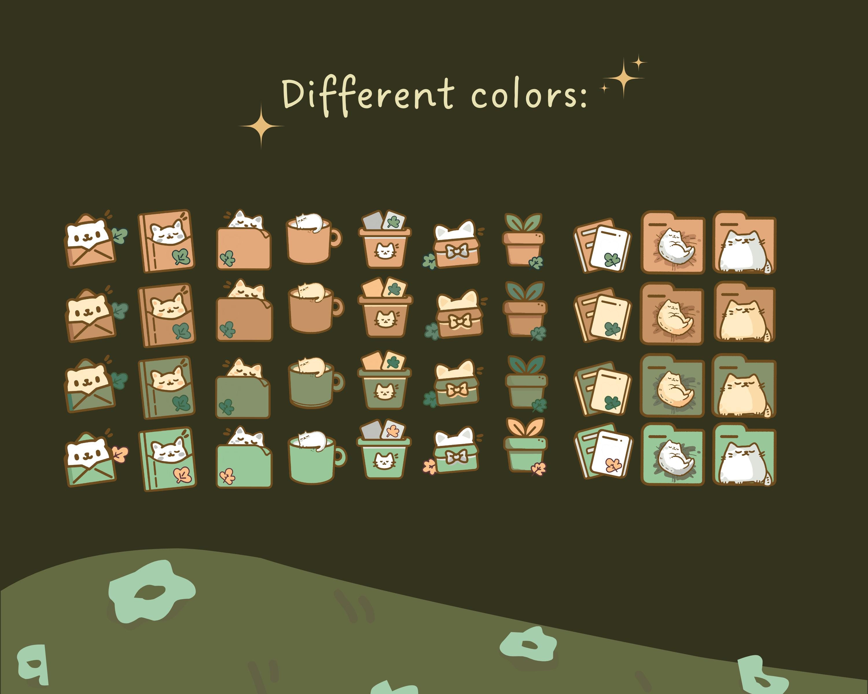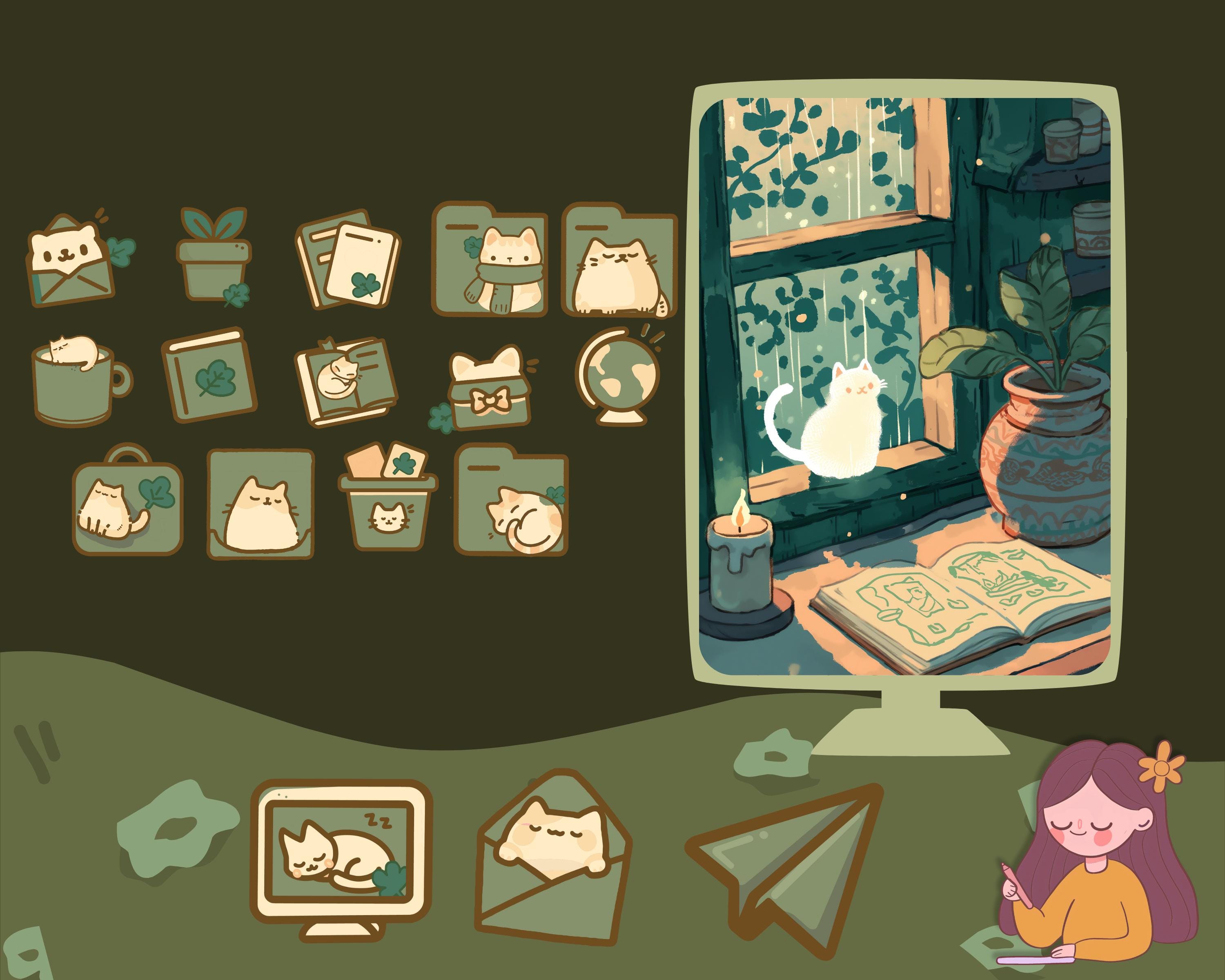 Cozy Cat Desktop Wallpaper Bundle: Boho Kawaii Icons (Digital Download)