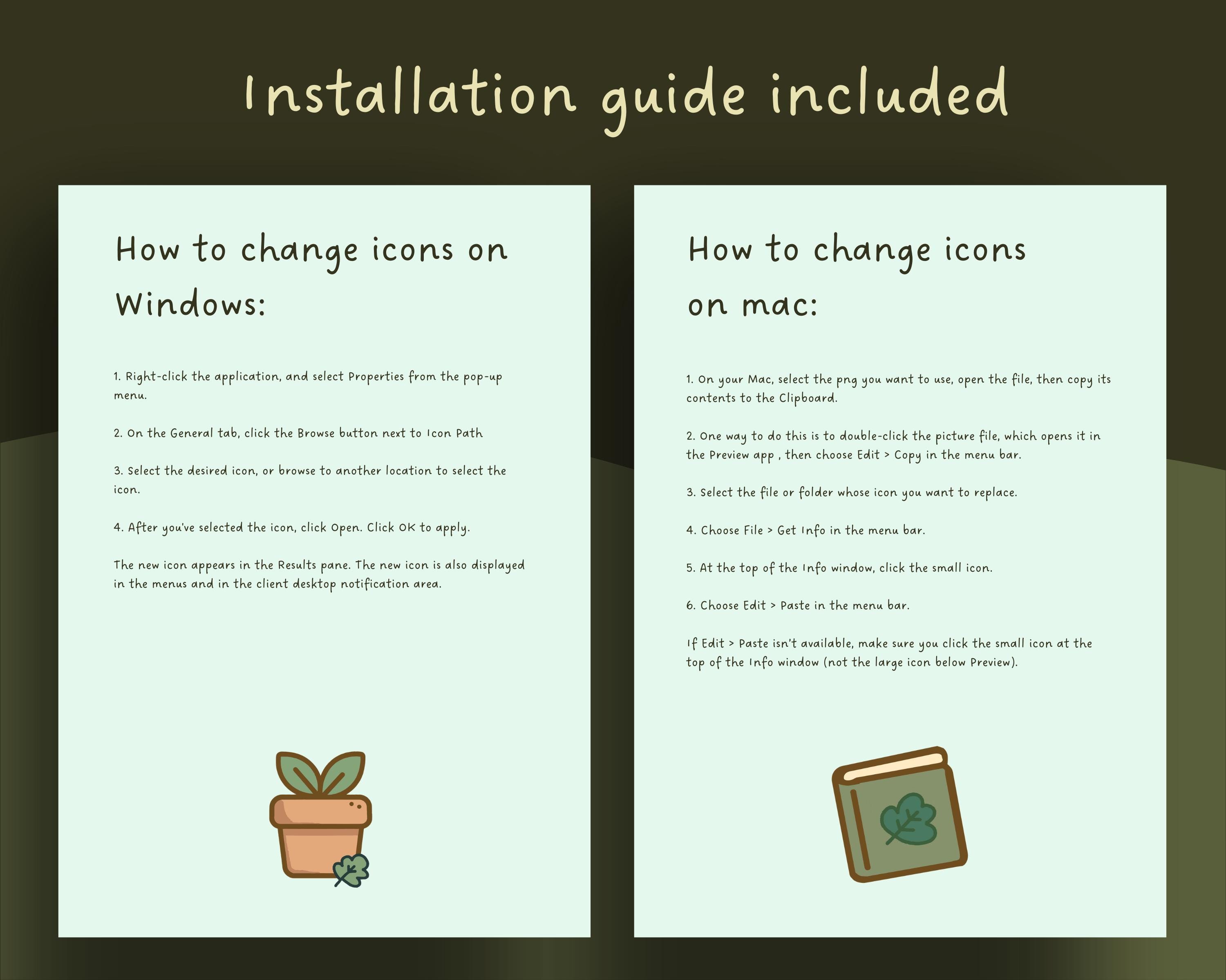 Attention, MAC users: If you're running the macOS Big Sur operating system, you might need .ICNS files to apply icon changes. While the .PNG files in this set generally work, if you encounter any issues, you can conveniently convert them to .ICNS using the provided website link, or shoot me a message, and I'll be happy to assist! πŸ”„πŸ”§