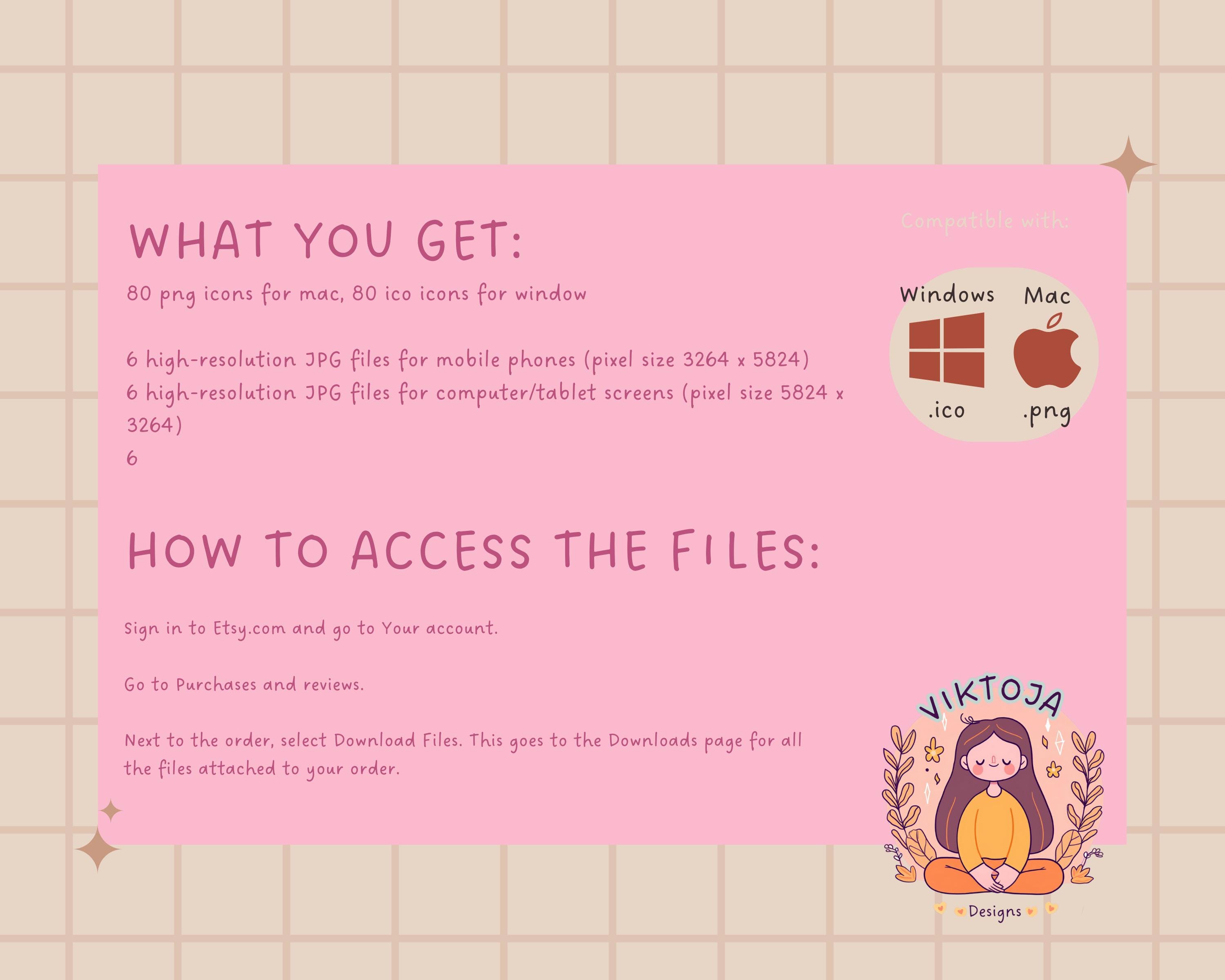 Personalize your icons, folders, and shortcuts with a cohesive theme and declutter your desktop using our desktop aesthetic. πŸŒˆπŸ–ŒοΈ