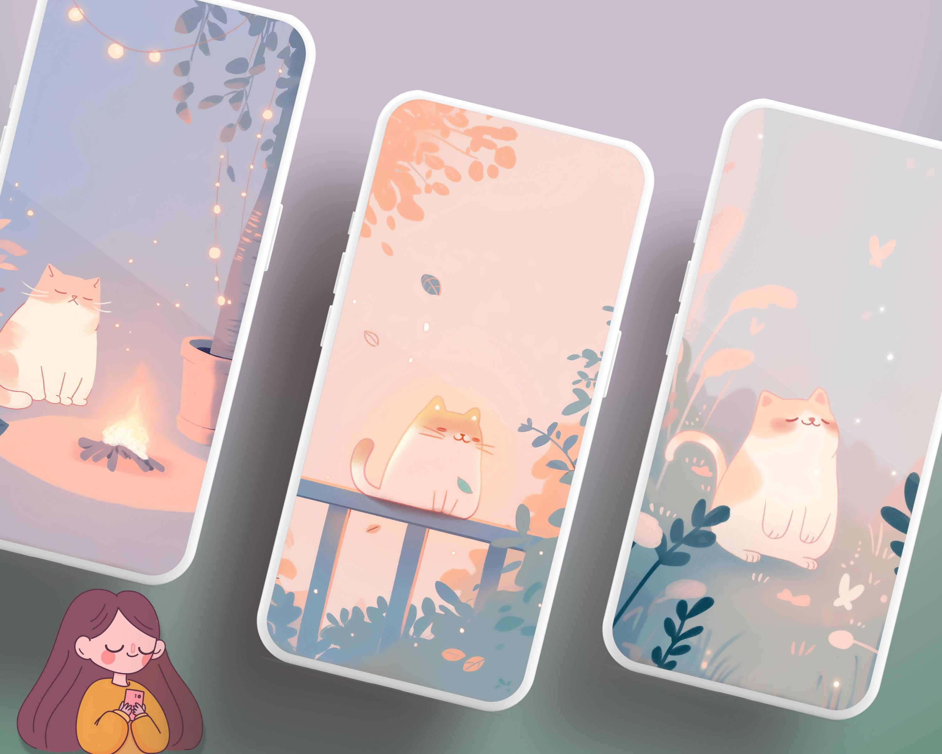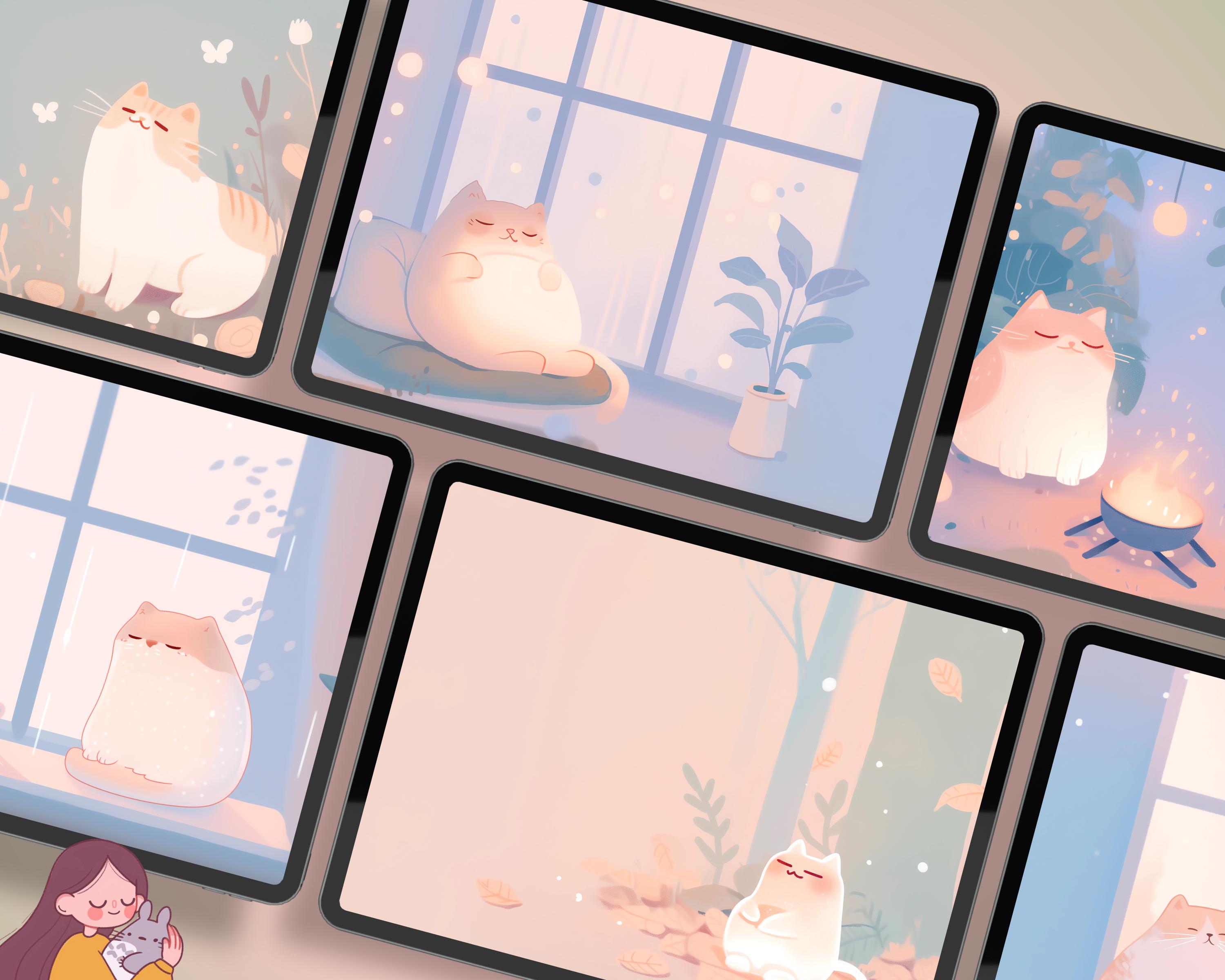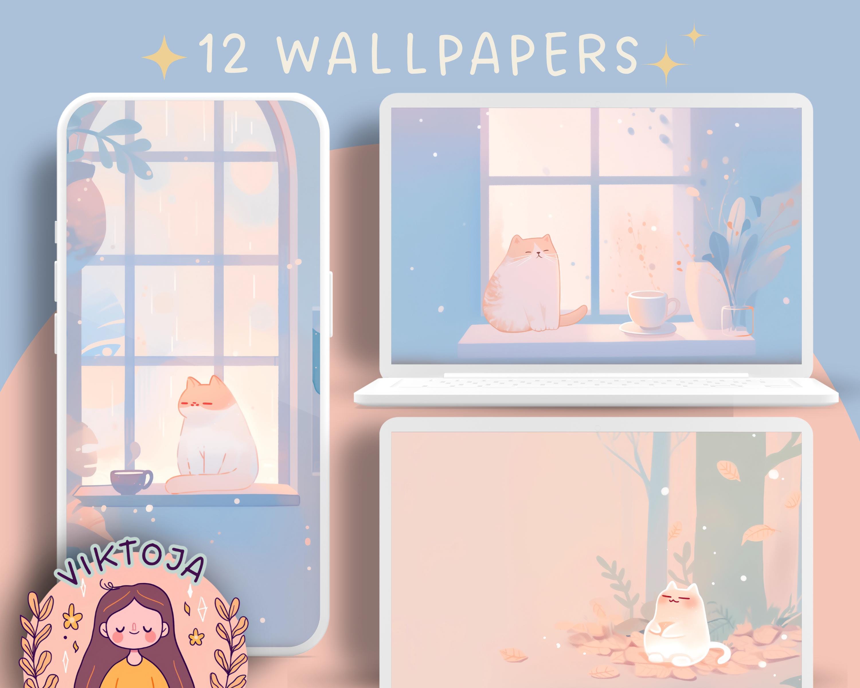 Cozy Cats Wallpaper Set: Pastel Autumn Desktop Backgrounds (Digital Download)