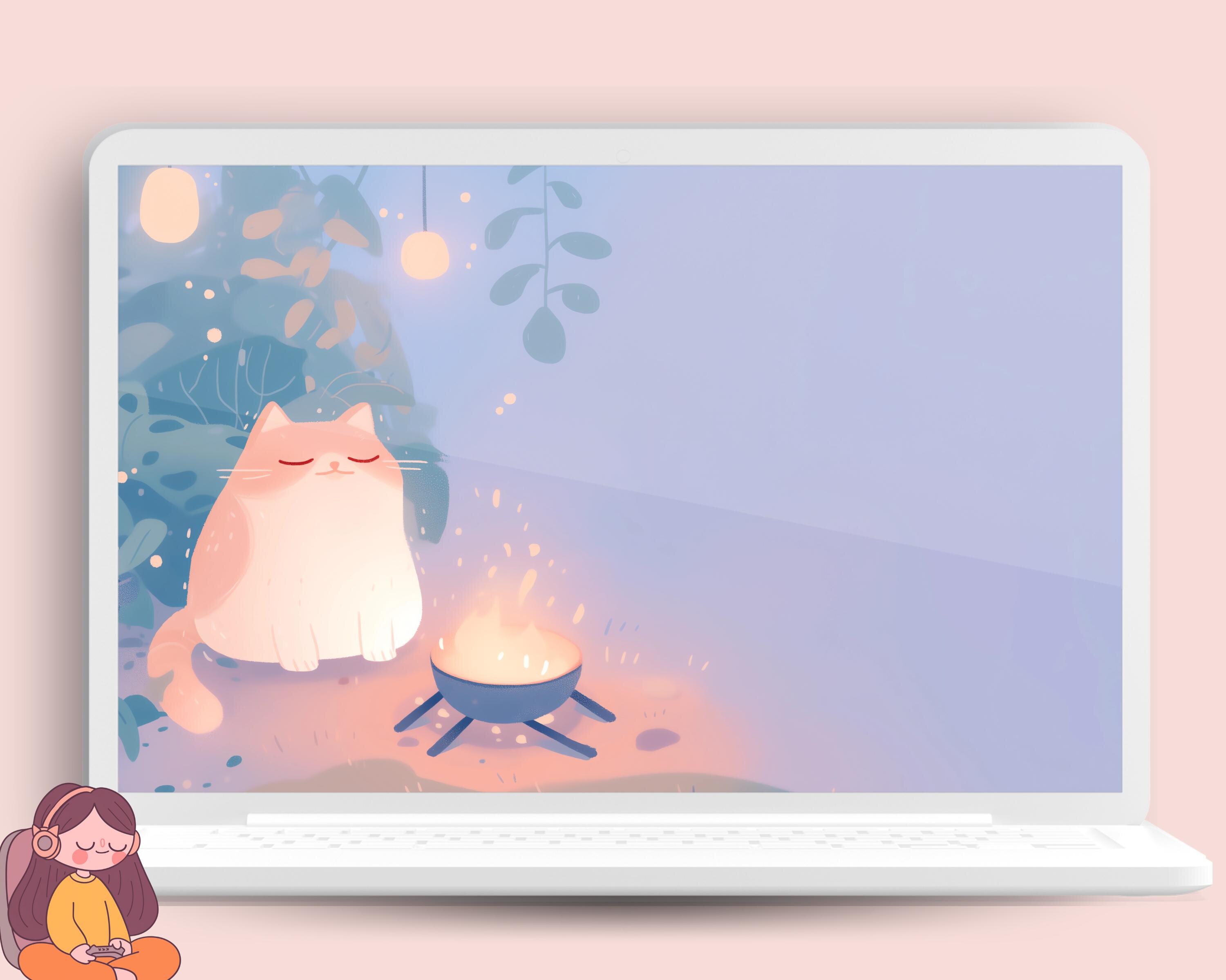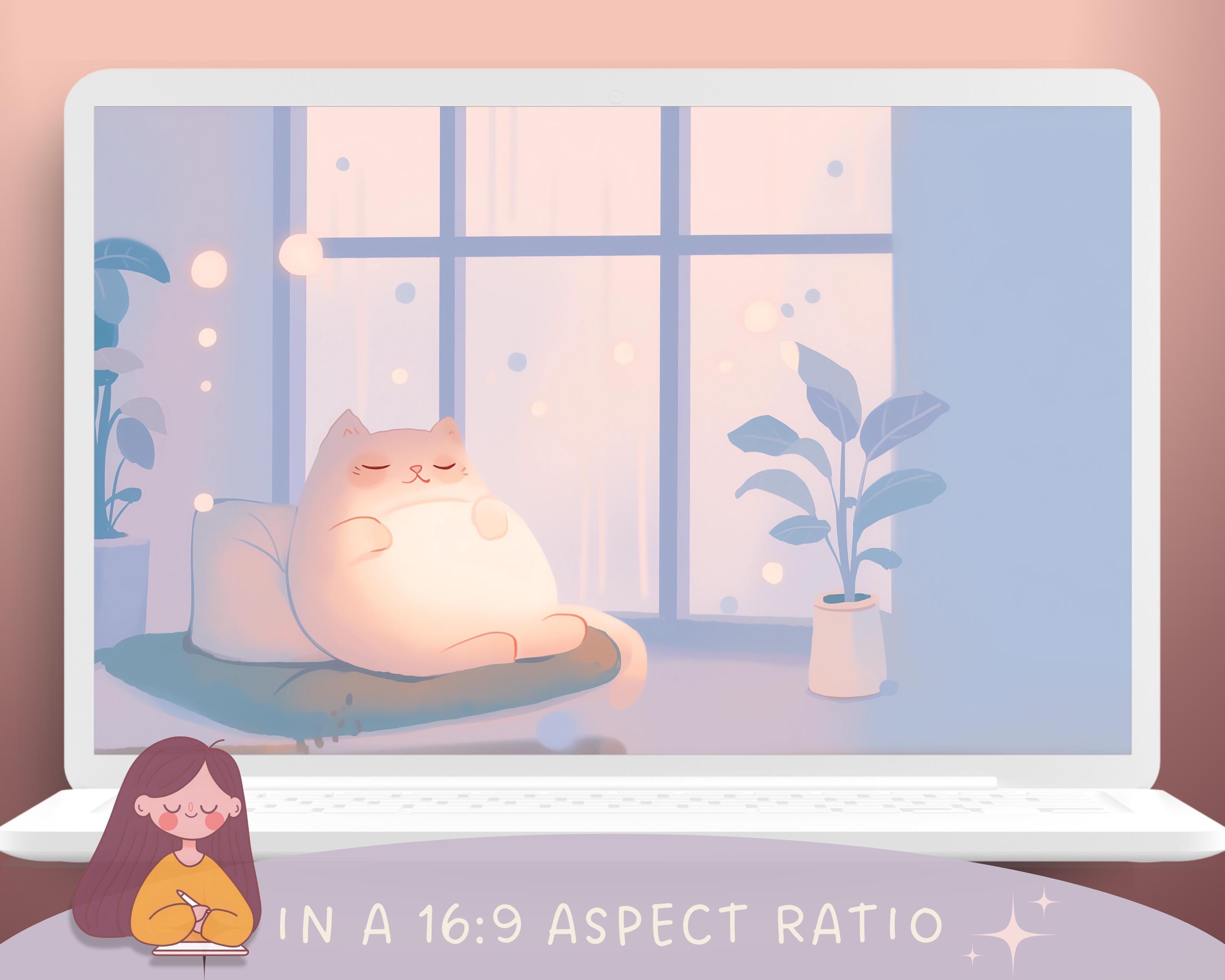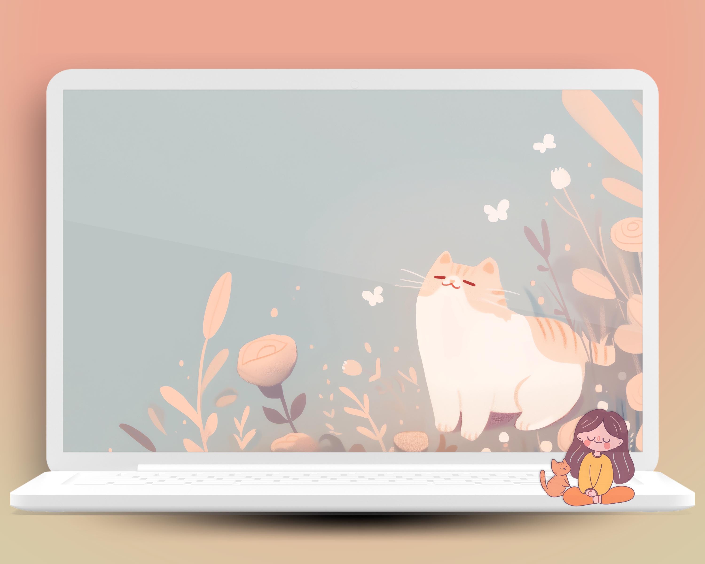 Cozy Cats Wallpaper Set: Pastel Autumn Desktop Backgrounds (Digital Download)
