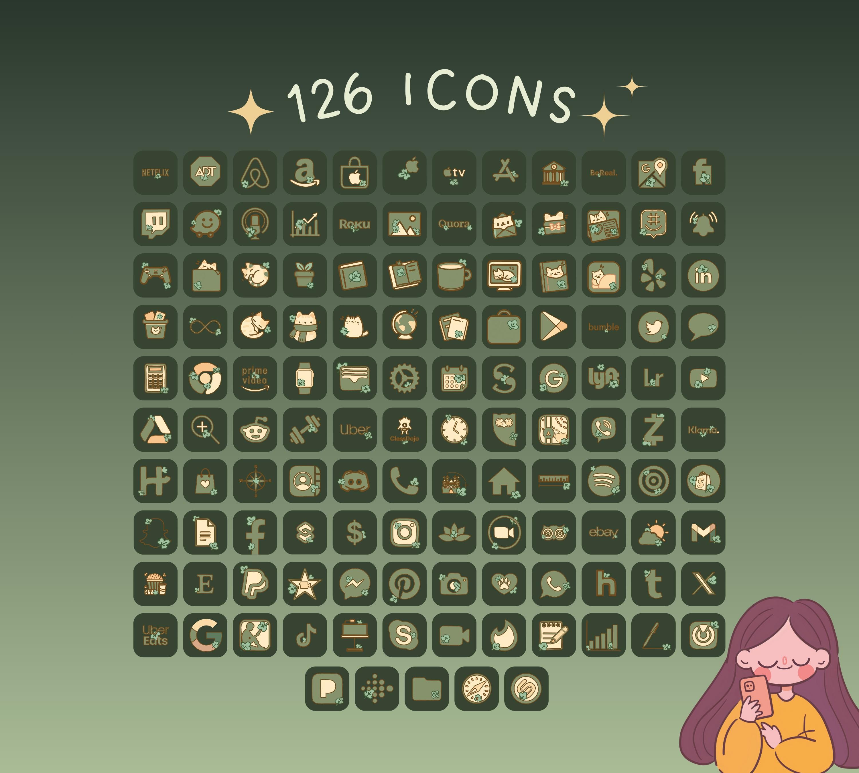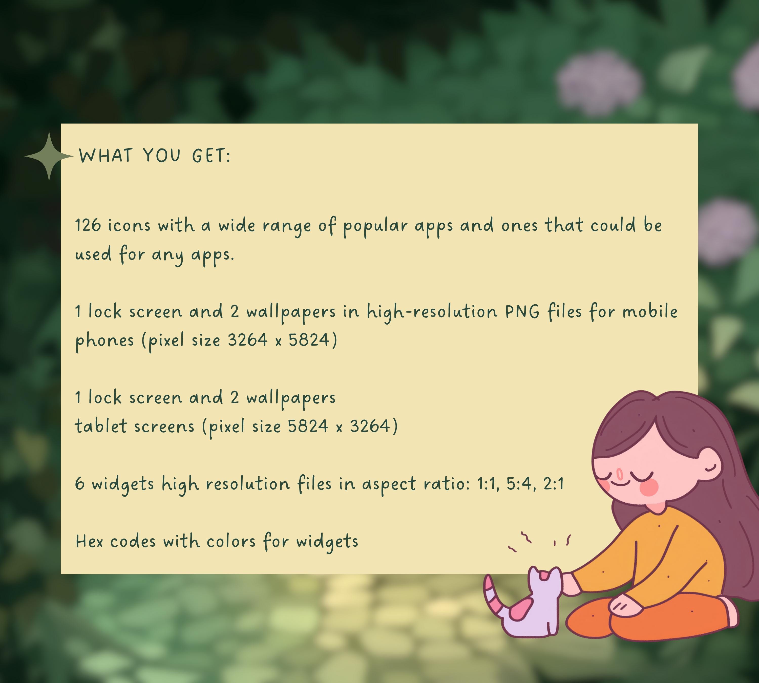 Give your device a fresh look with our awesome icon and wallpaper set for iOS, iPadOS, and Android! This digital download includes 126 stunning icons covering a range of popular apps that can be used to customize any app on your device. You'll get high-resolution PNG files designed for both mobile phones and tablets, so your screens will look fantastic no matter what device you’re using! 📱✨