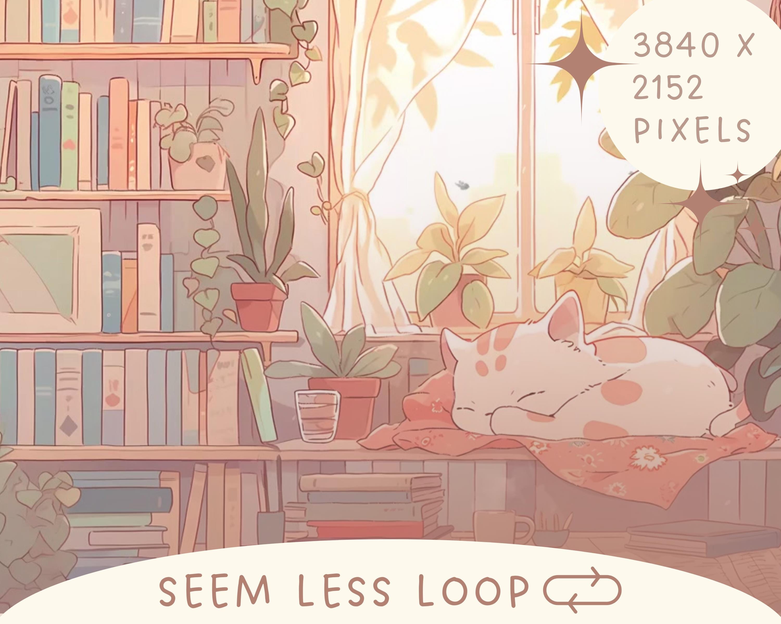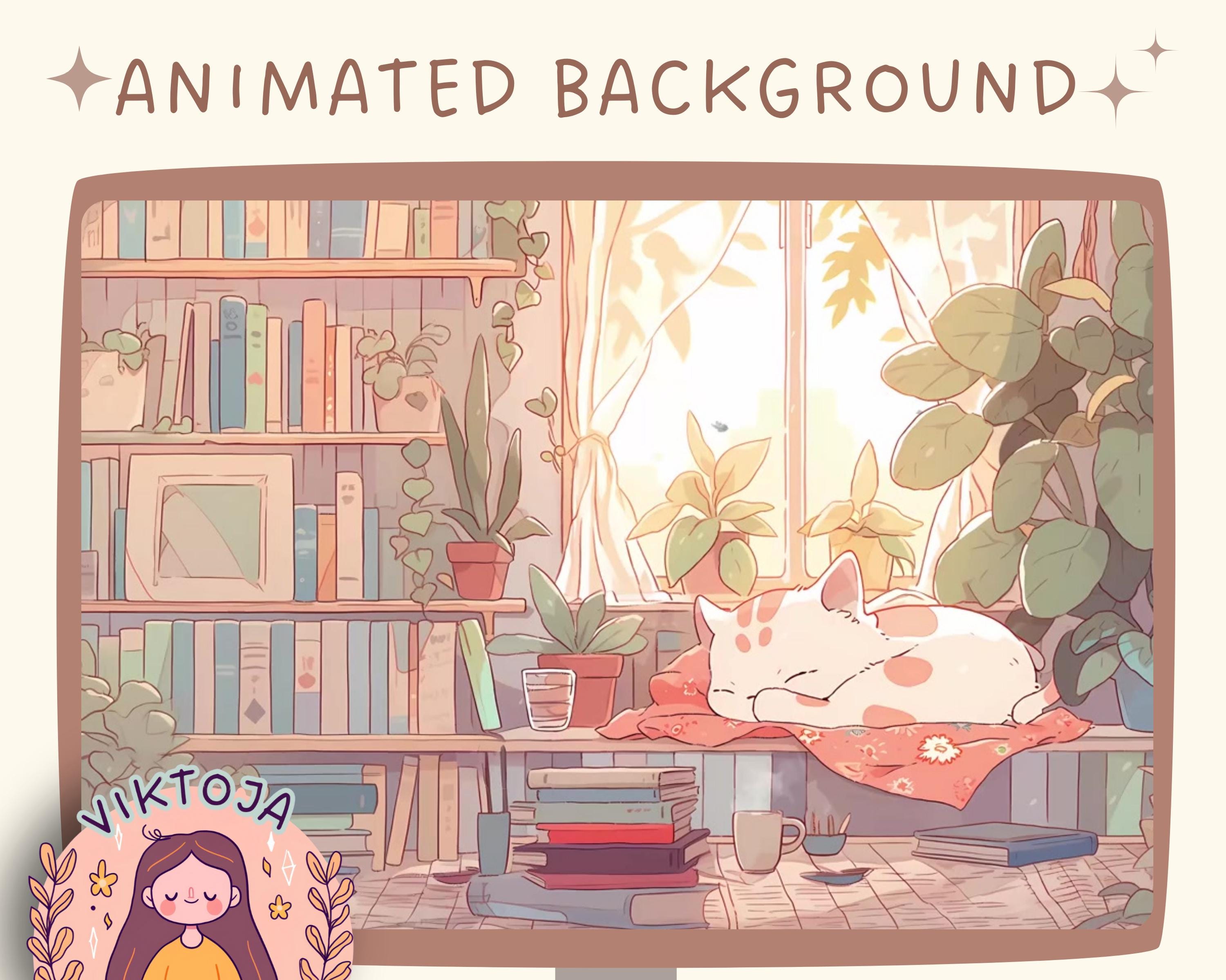 Cozy Lofi Cat Vtuber Animated Background: Twitch Stream Overlay (MP4)