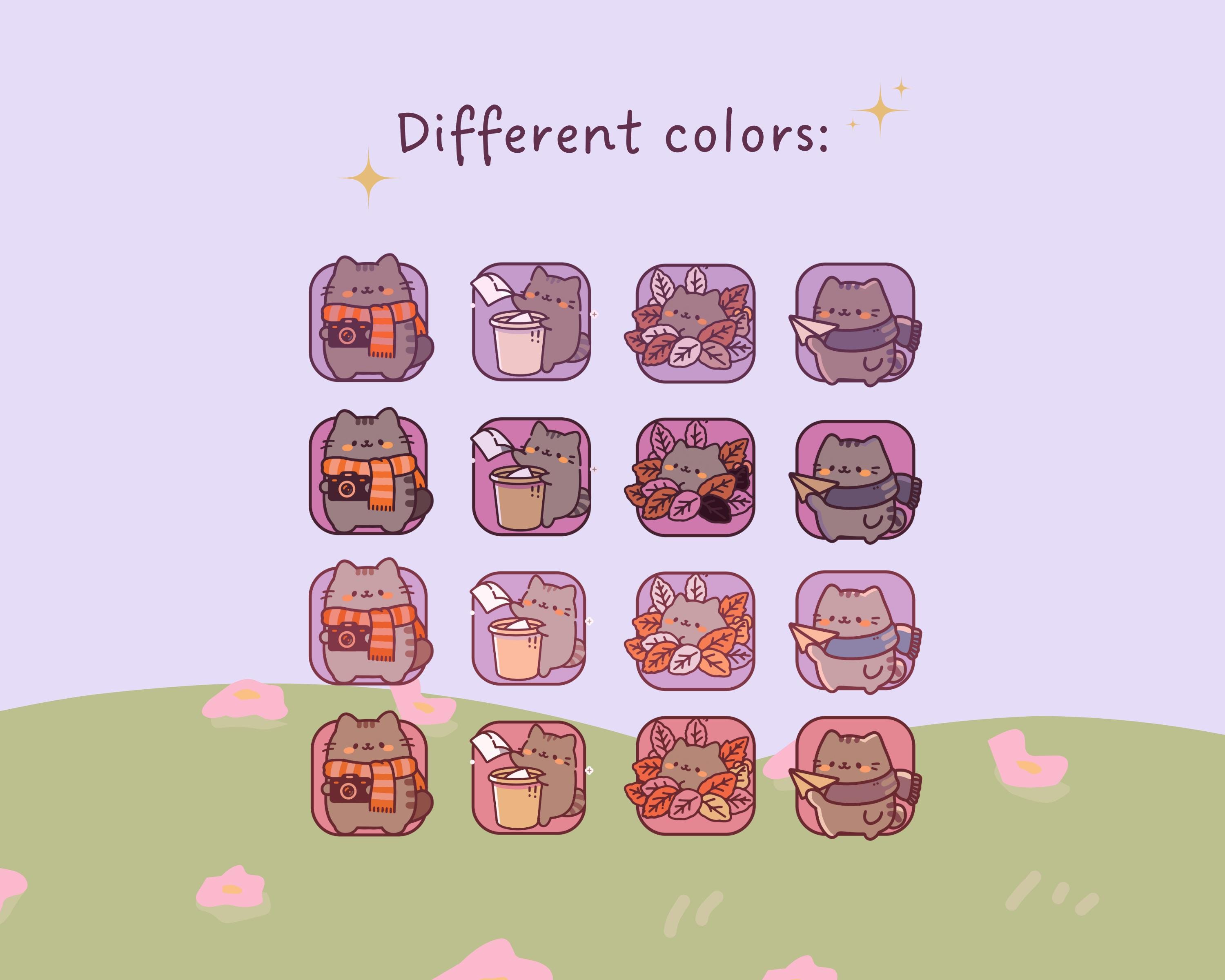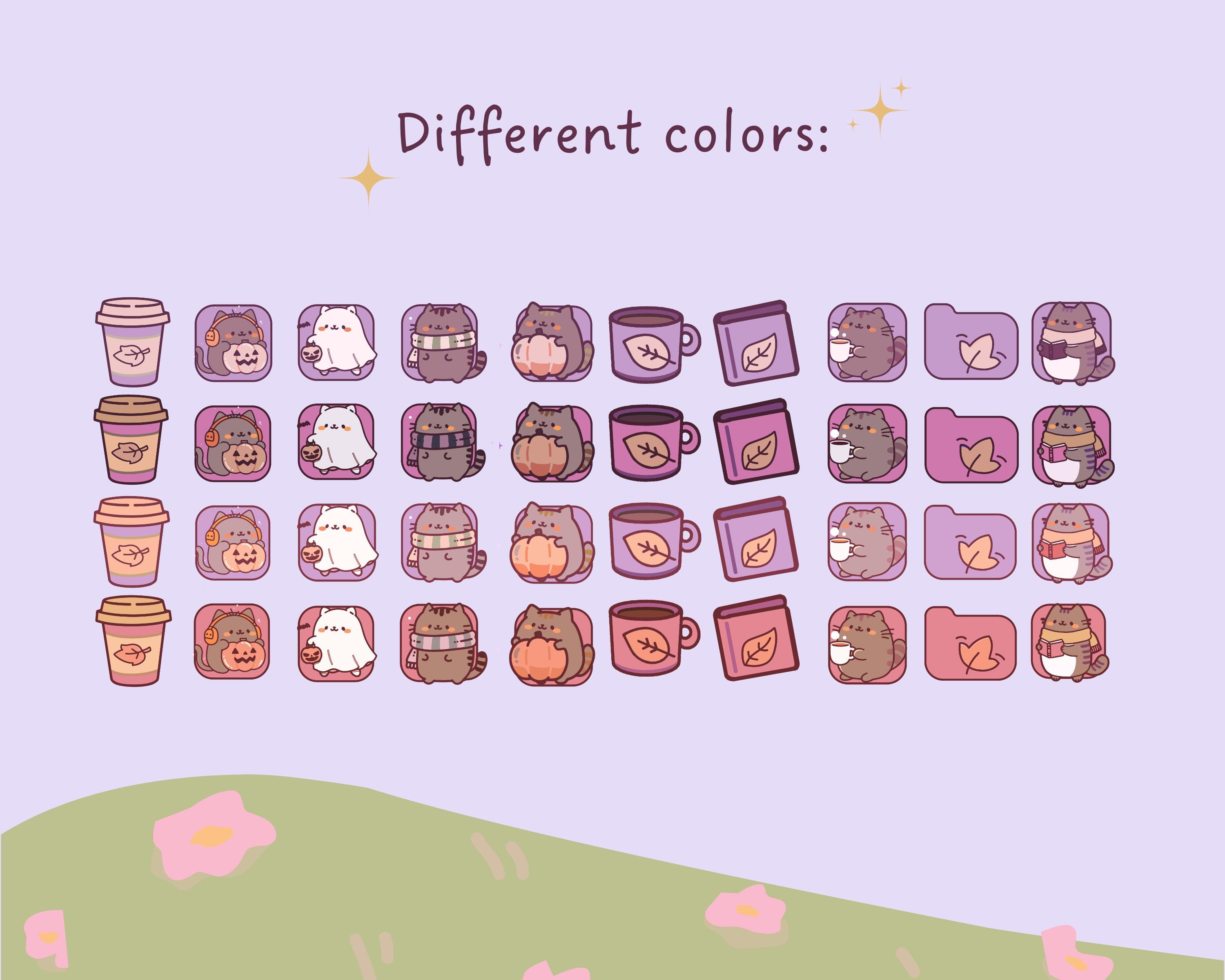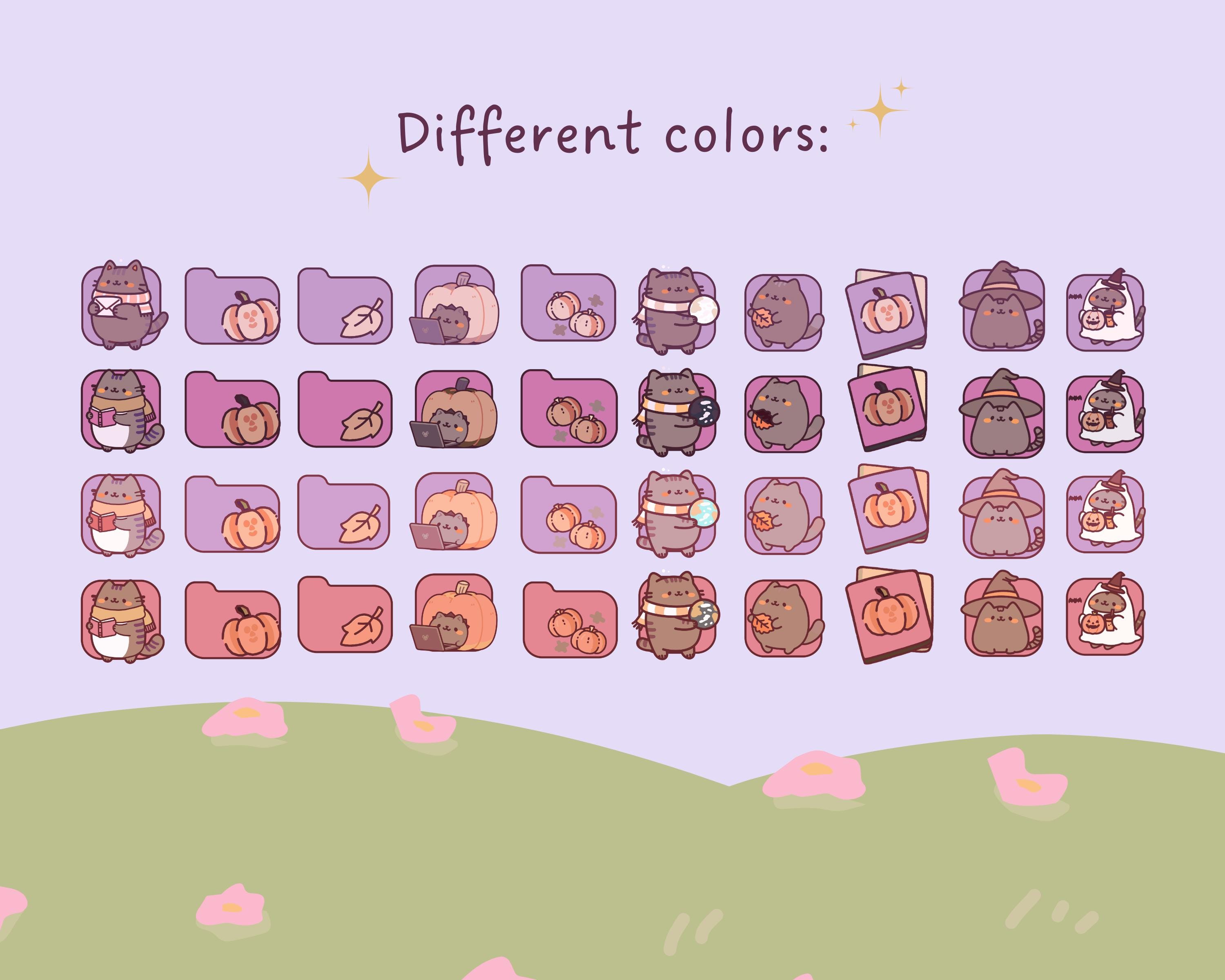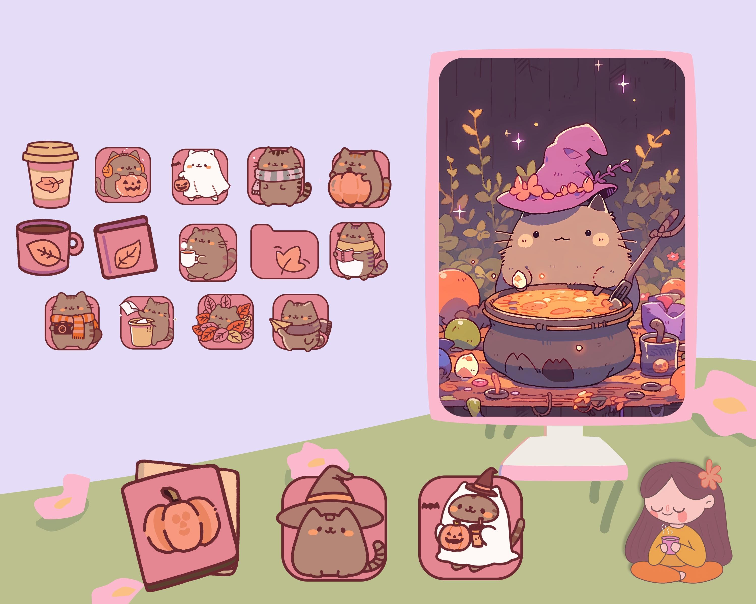 Pumpkin Cat Desktop Wallpaper & Icons, Kawaii Fall Theme (Digital Download)