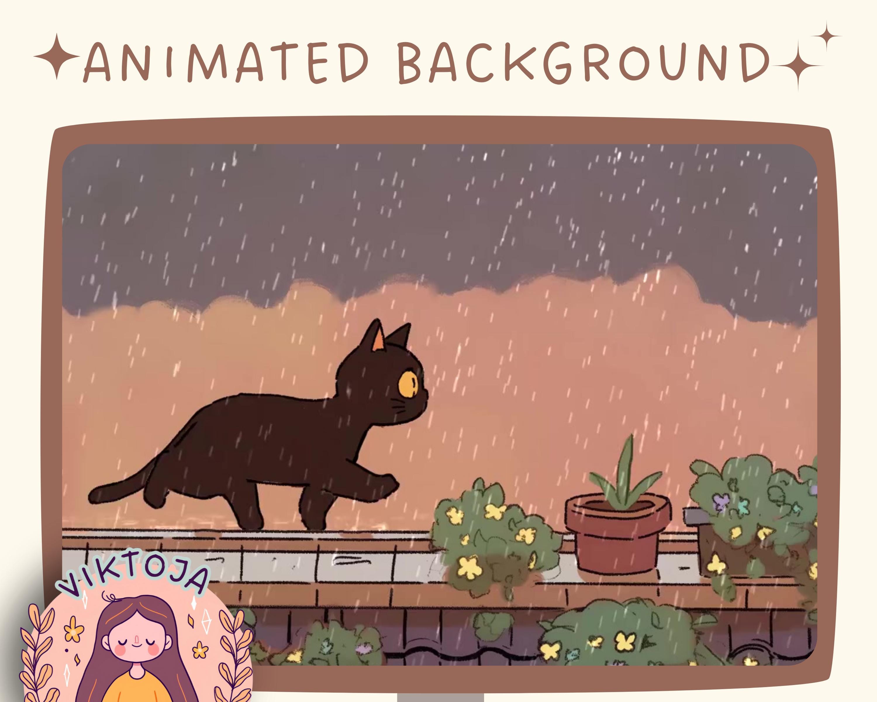 Cozy Lofi Cat Animated Vtuber Background: Twitch Stream Overlay (MP4)
