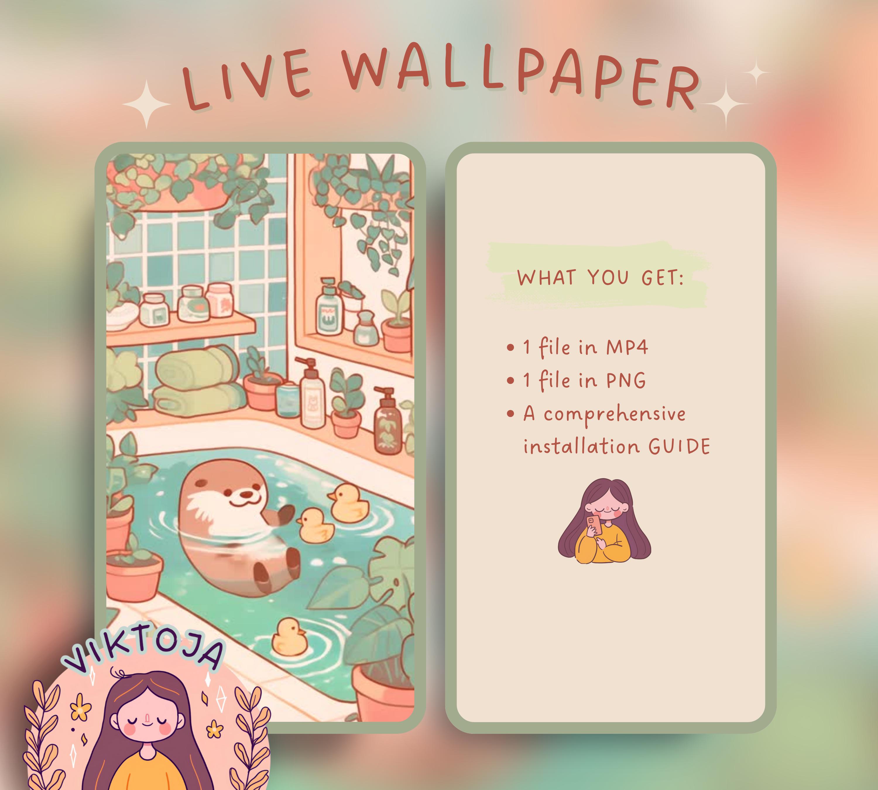 Kawaii Otter Live Wallpaper: Hygge Phone Background (MP4 & PNG)