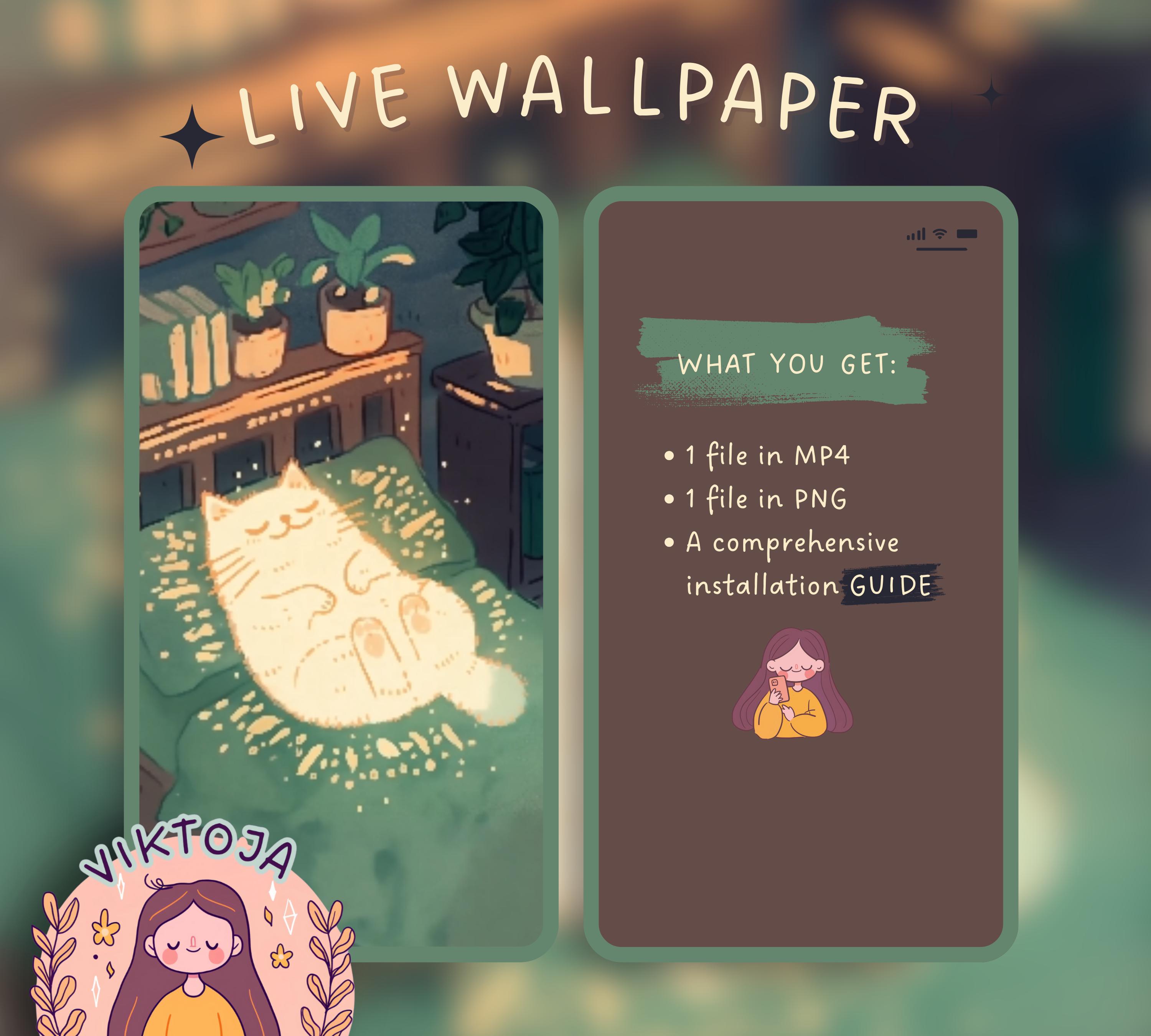 Resting Kitty Live Wallpaper: Kawaii Hygge iOS Android (MP4 & PNG)