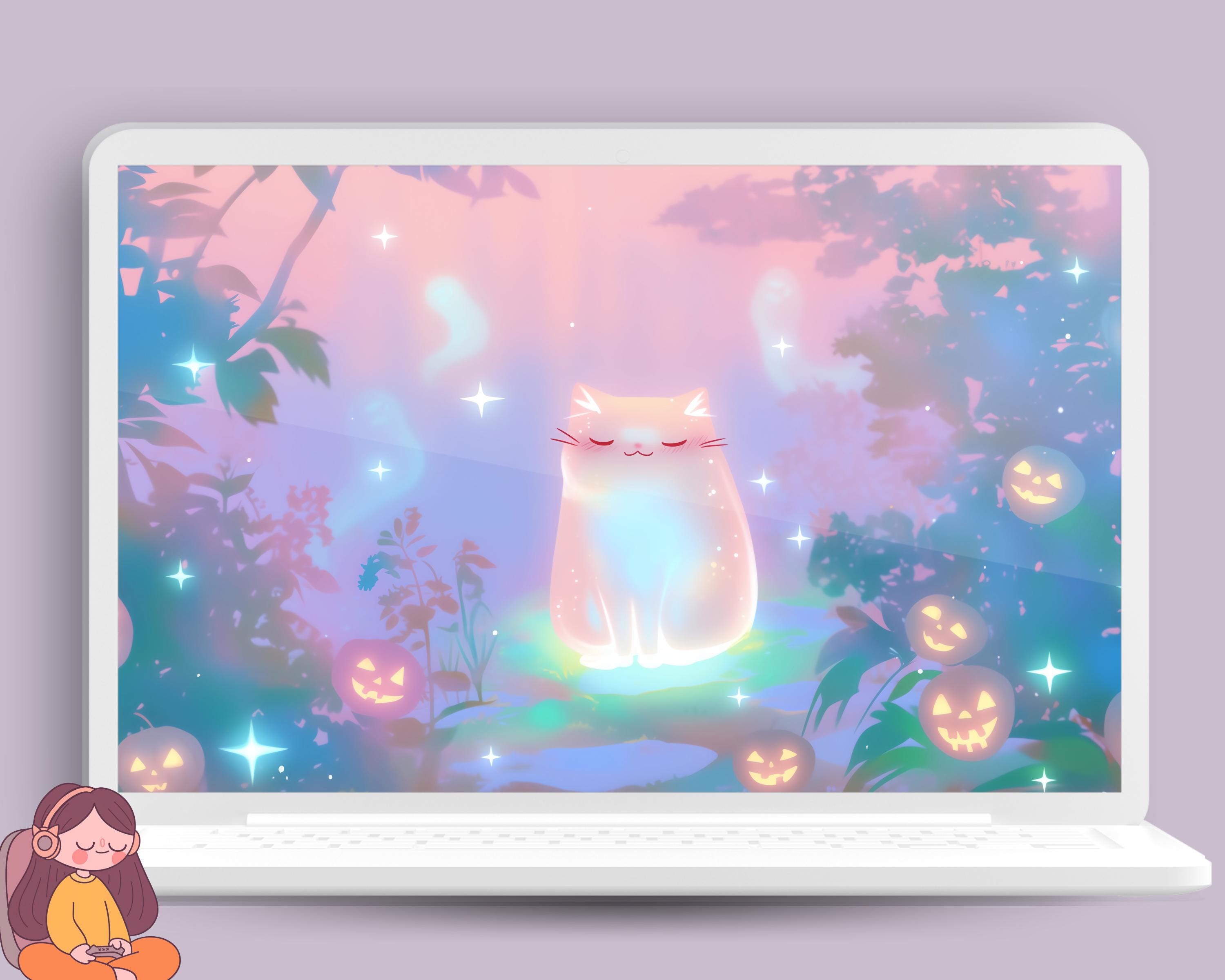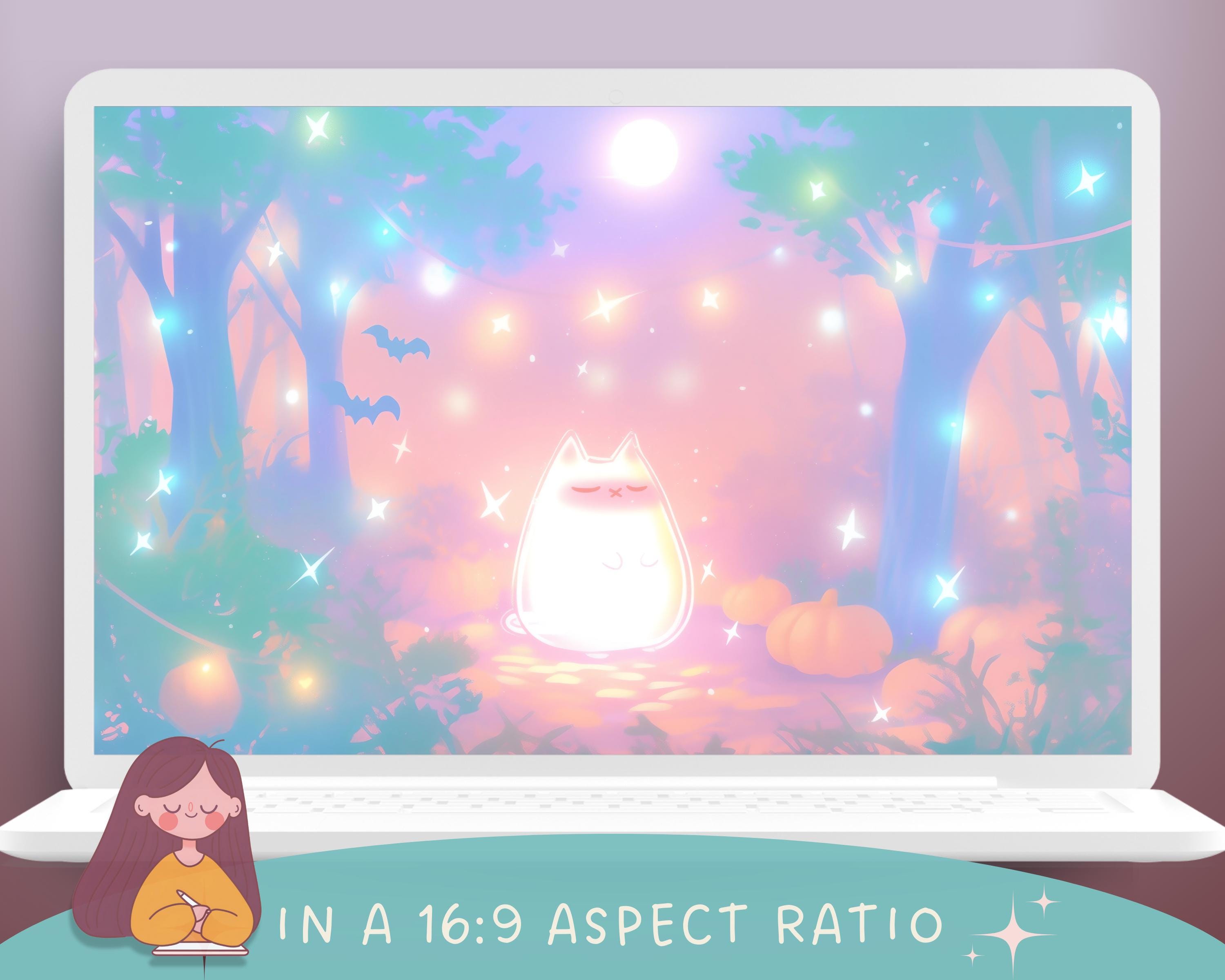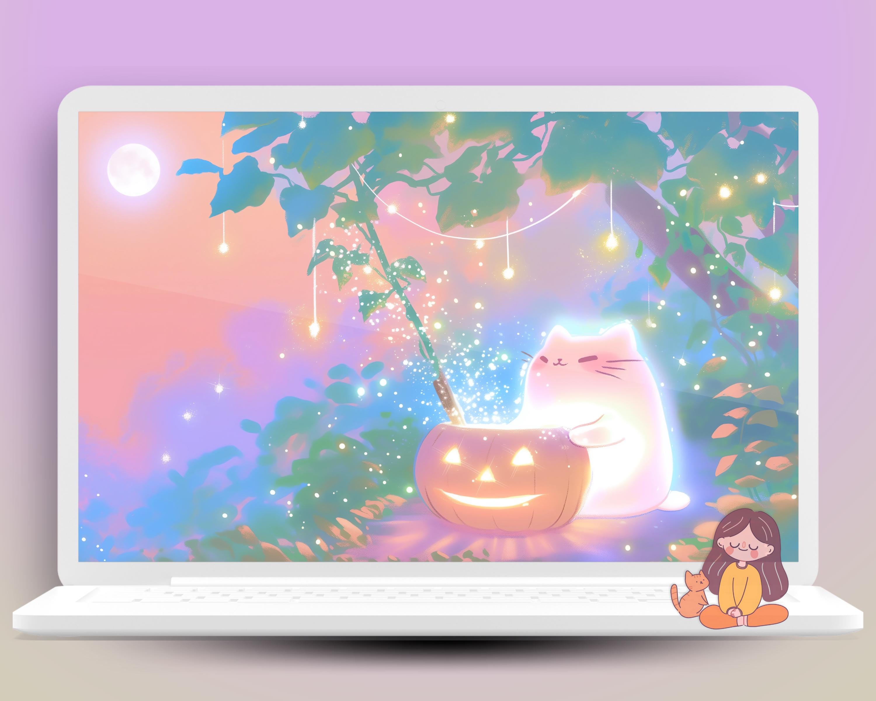 Halloween Cat Wallpaper: Kawaii Autumn Screensaver (Digital Download)