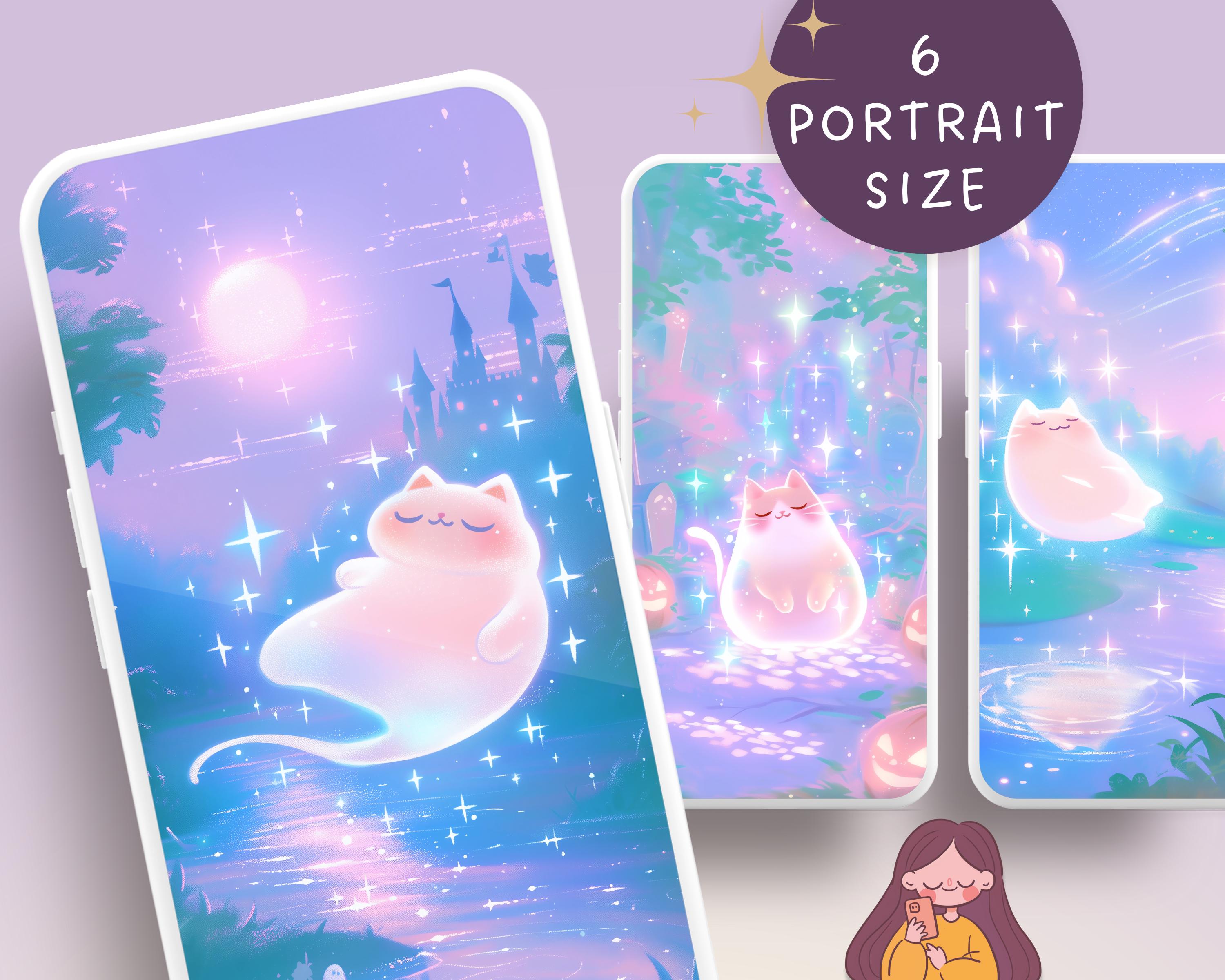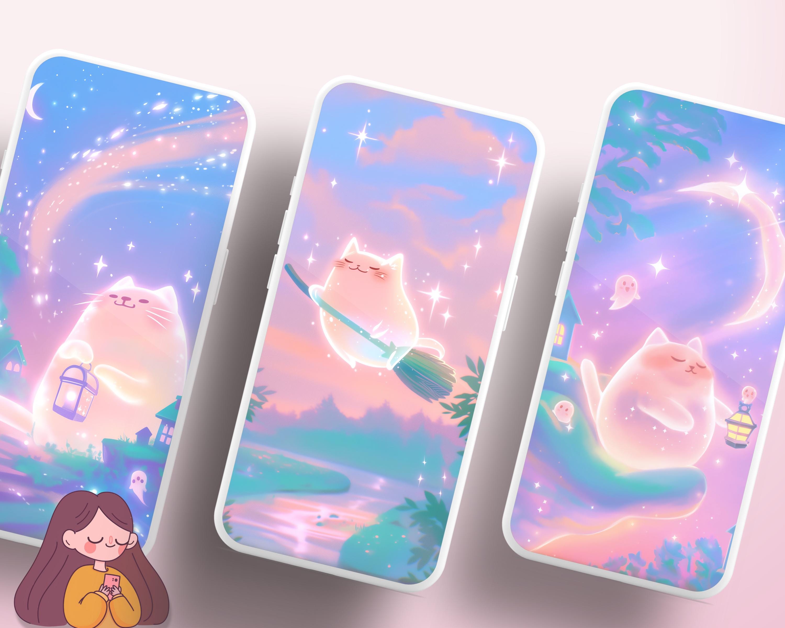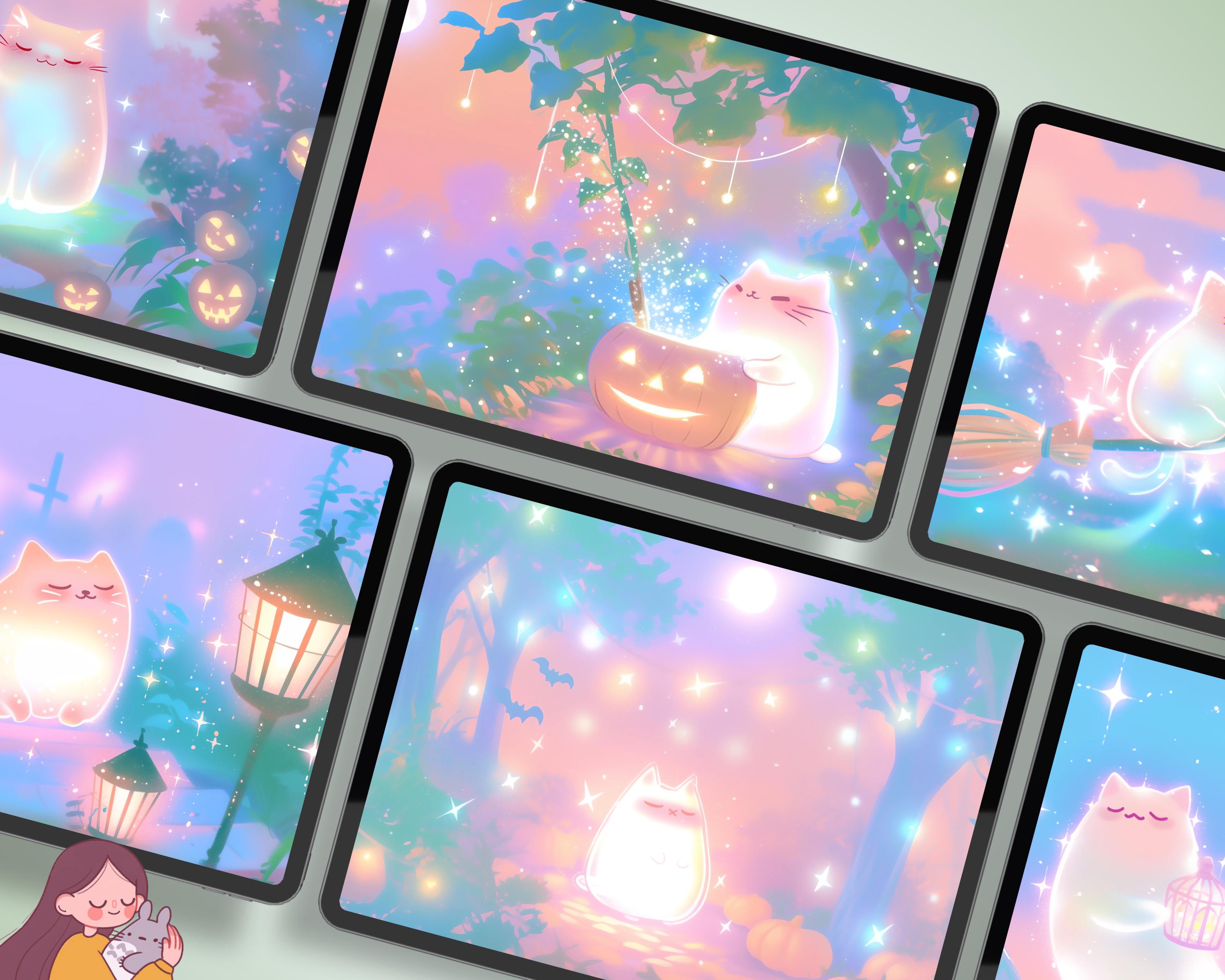 Halloween Cat Wallpaper: Kawaii Autumn Screensaver (Digital Download)