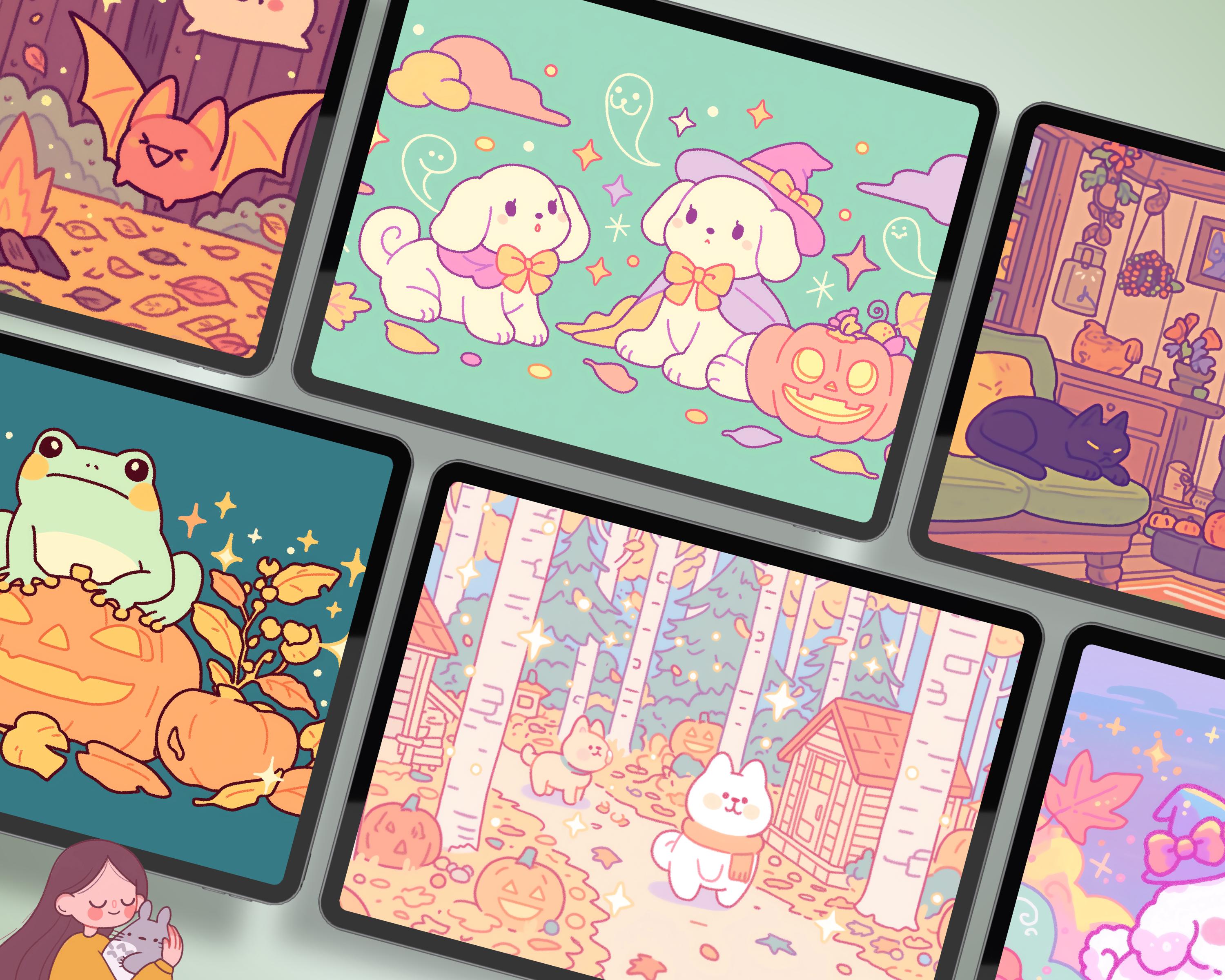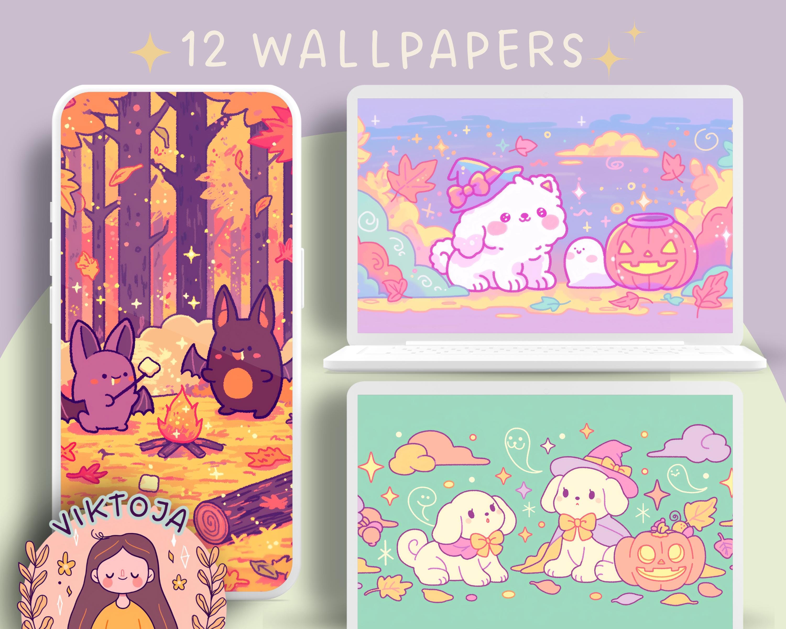 Bring a touch of magic to your devices with this set of 12 pumpkin cats wallpapers! These high-res JPG files will fit perfectly on your phone or computer/tablet screens.