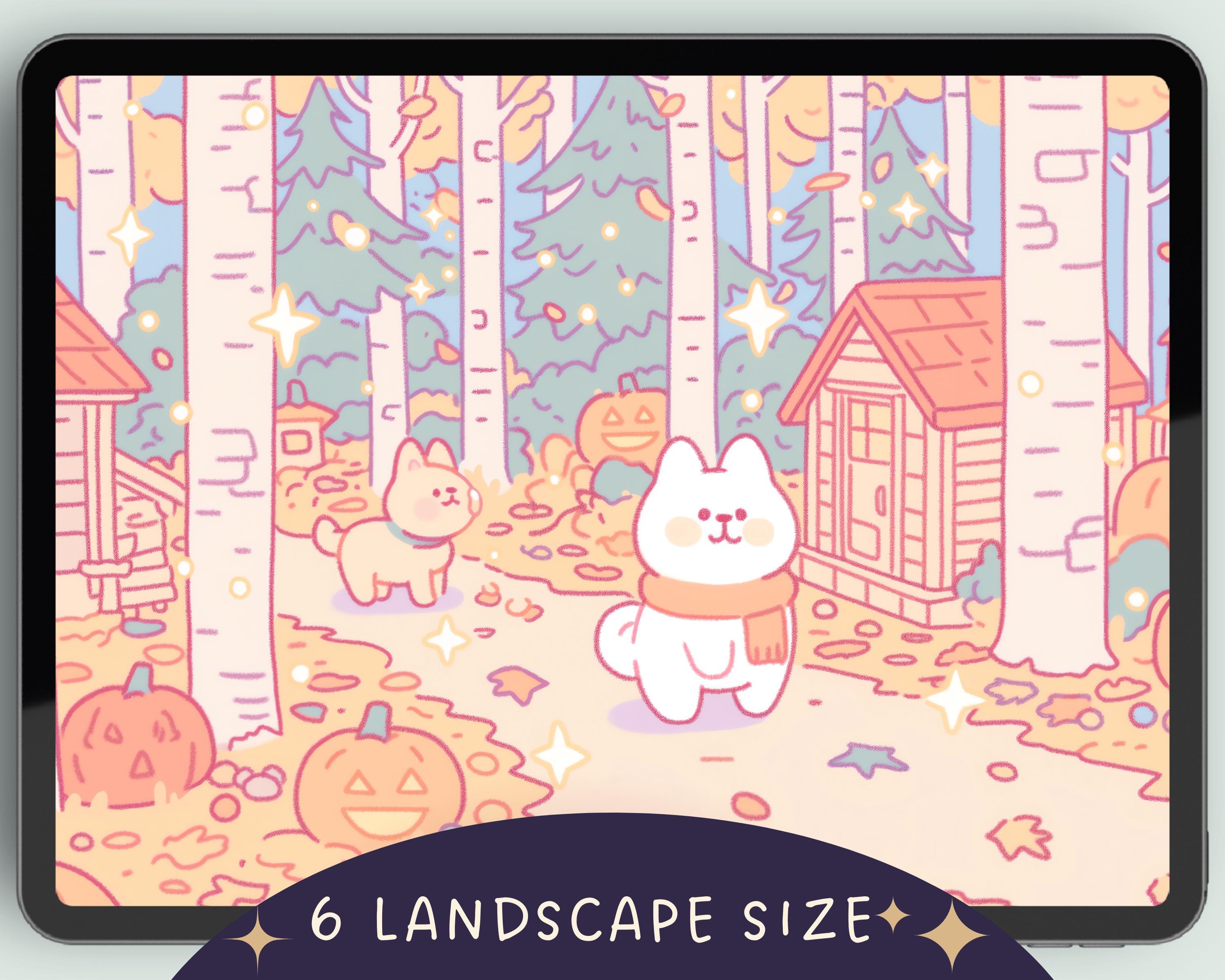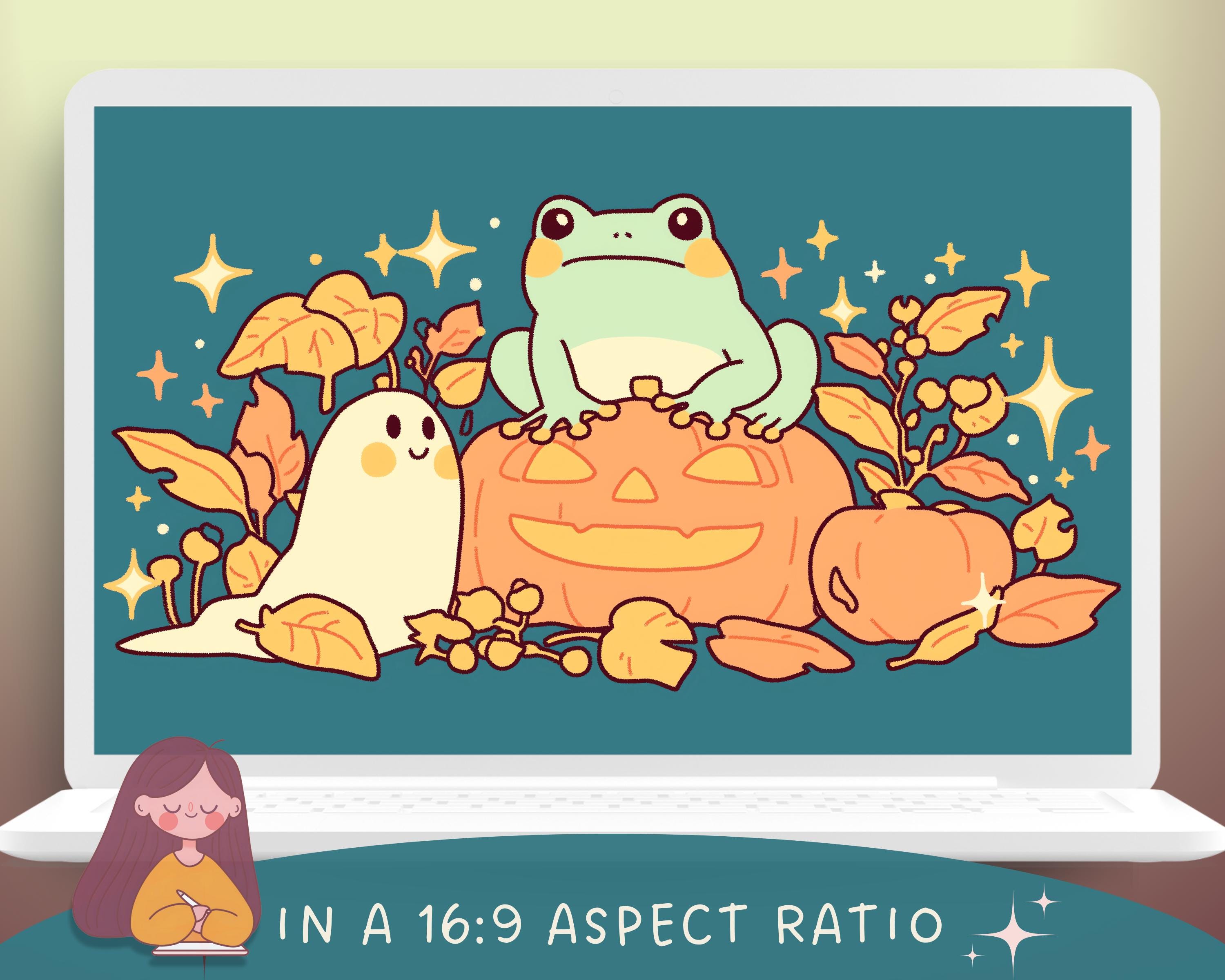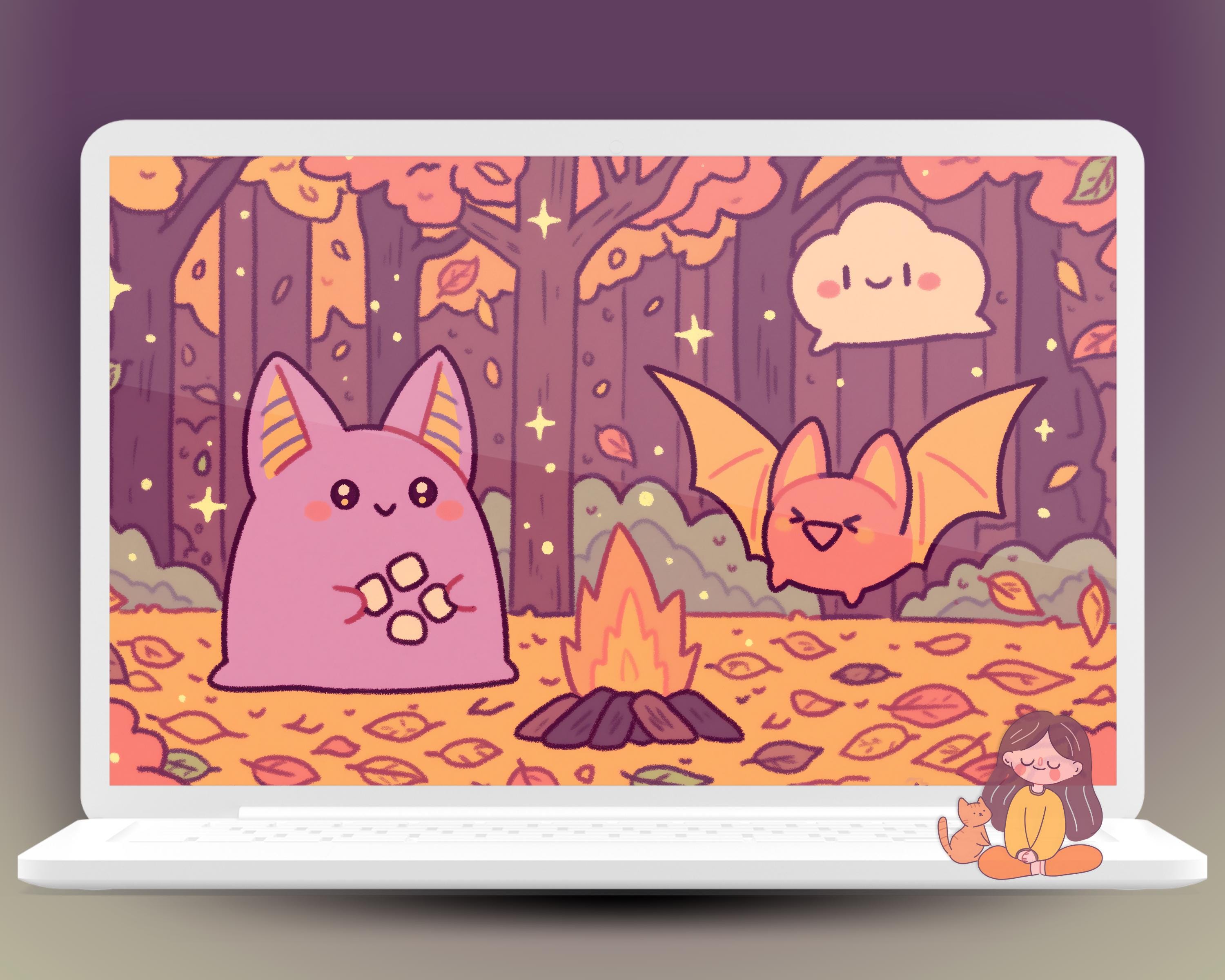 Kawaii Halloween Wallpaper: Pumpkin Cats, Fall Desktop Backgrounds (Digital Download)