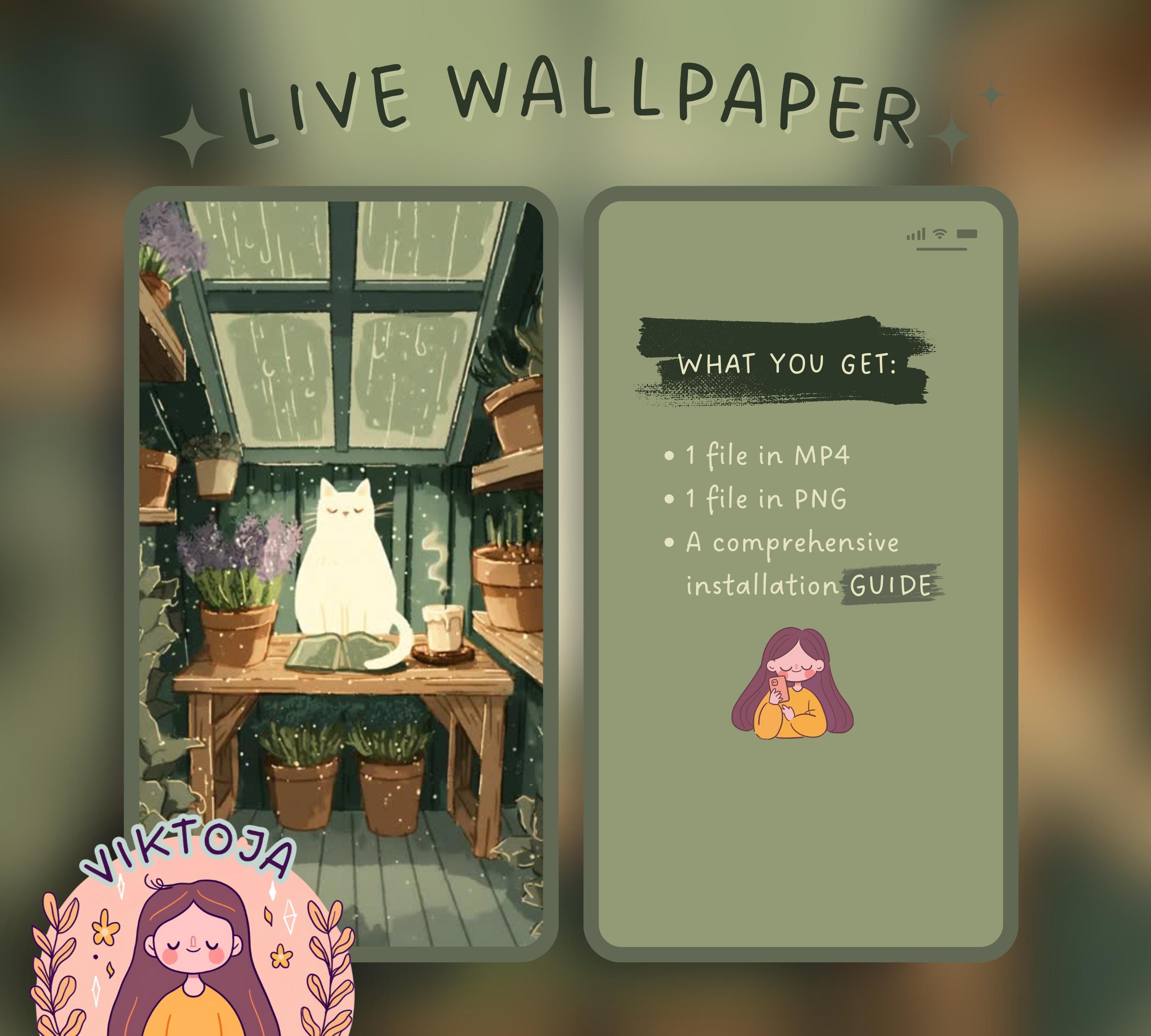 Cozy Rain Cat Live Wallpaper: Hygge iOS Android (MP4 & PNG)