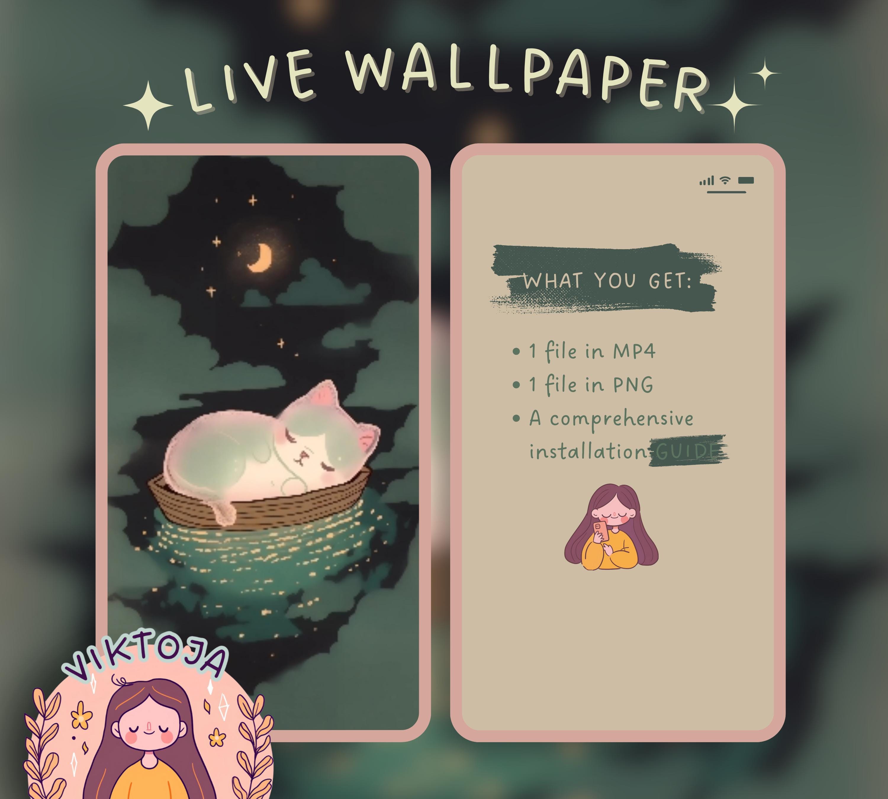 Sleeping Cat Boat Live Wallpaper: Kawaii Hygge iOS Android (MP4 & PNG)