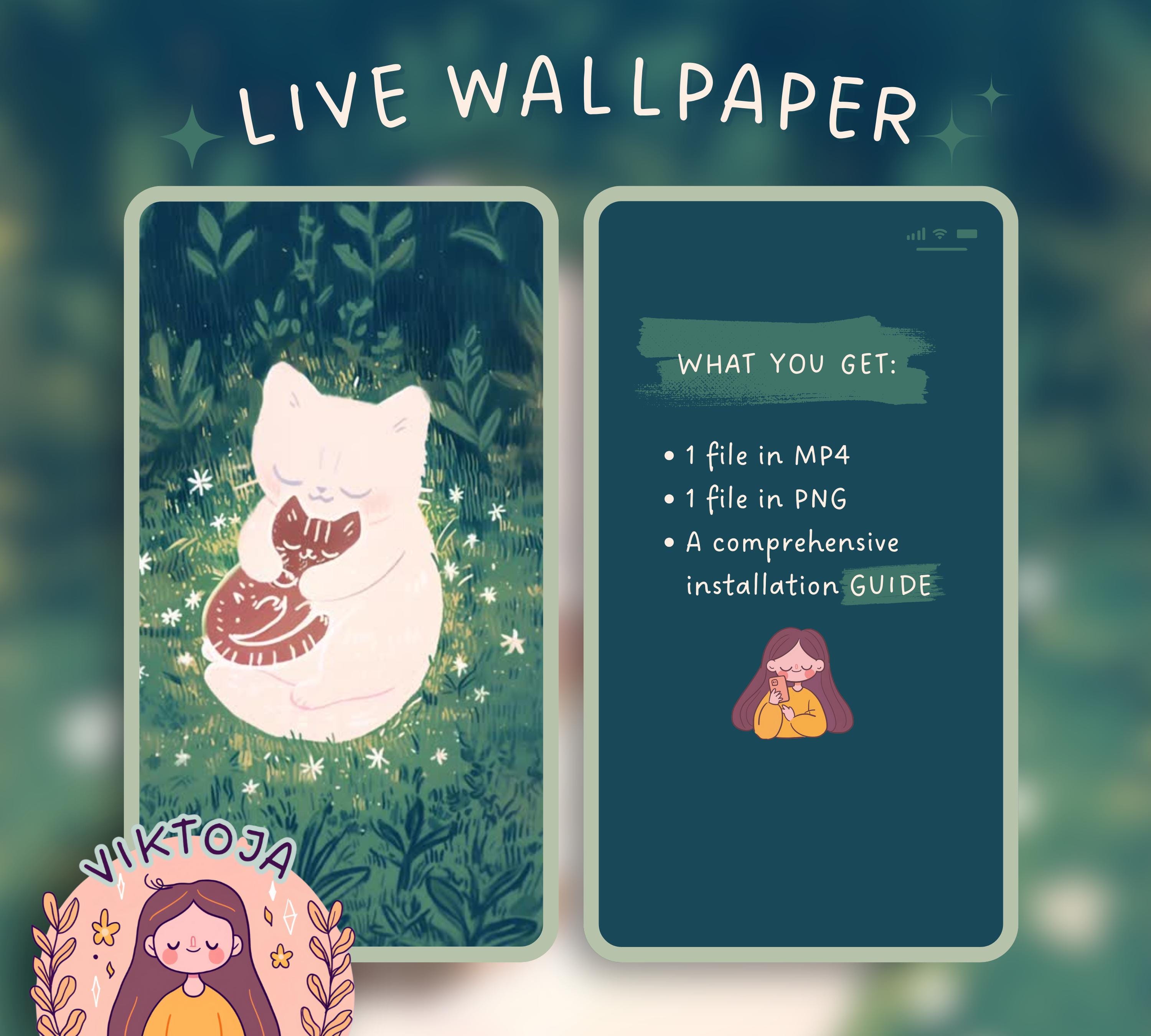 Hugging Kitty Live Wallpaper: Kawaii Hygge Phone Background (MP4 & PNG)